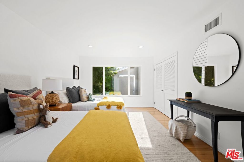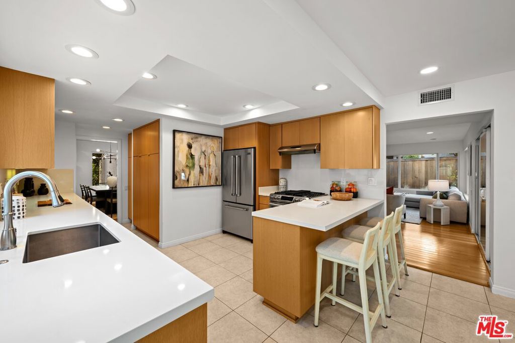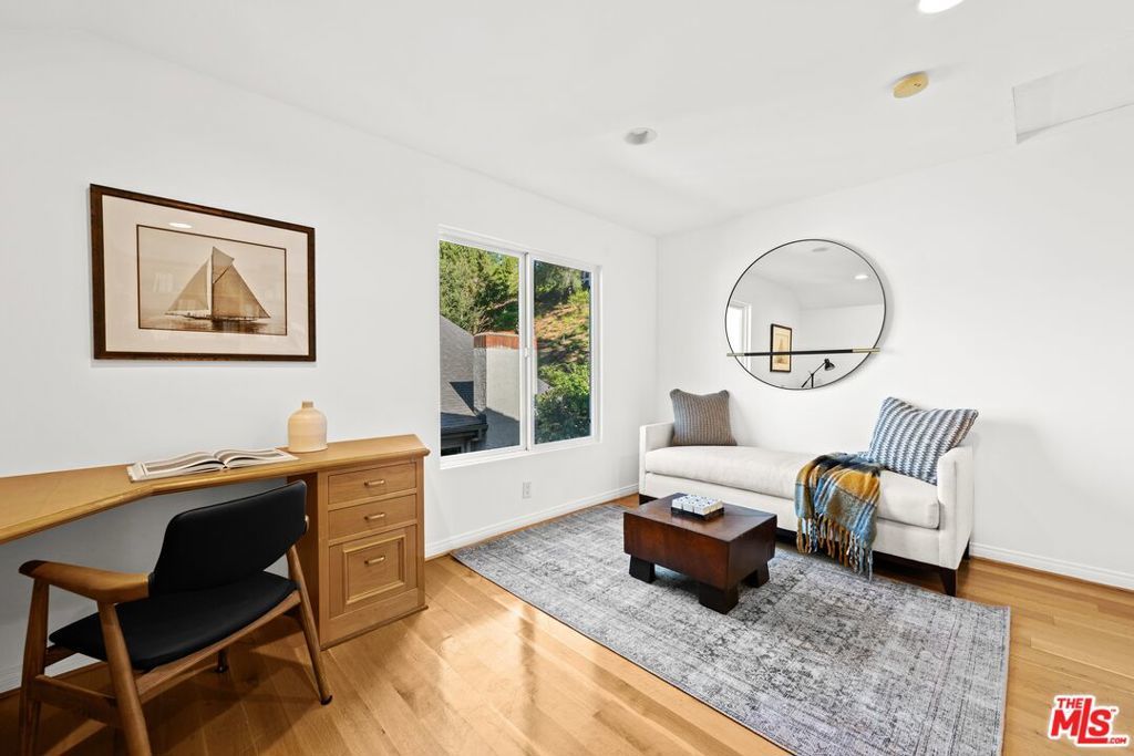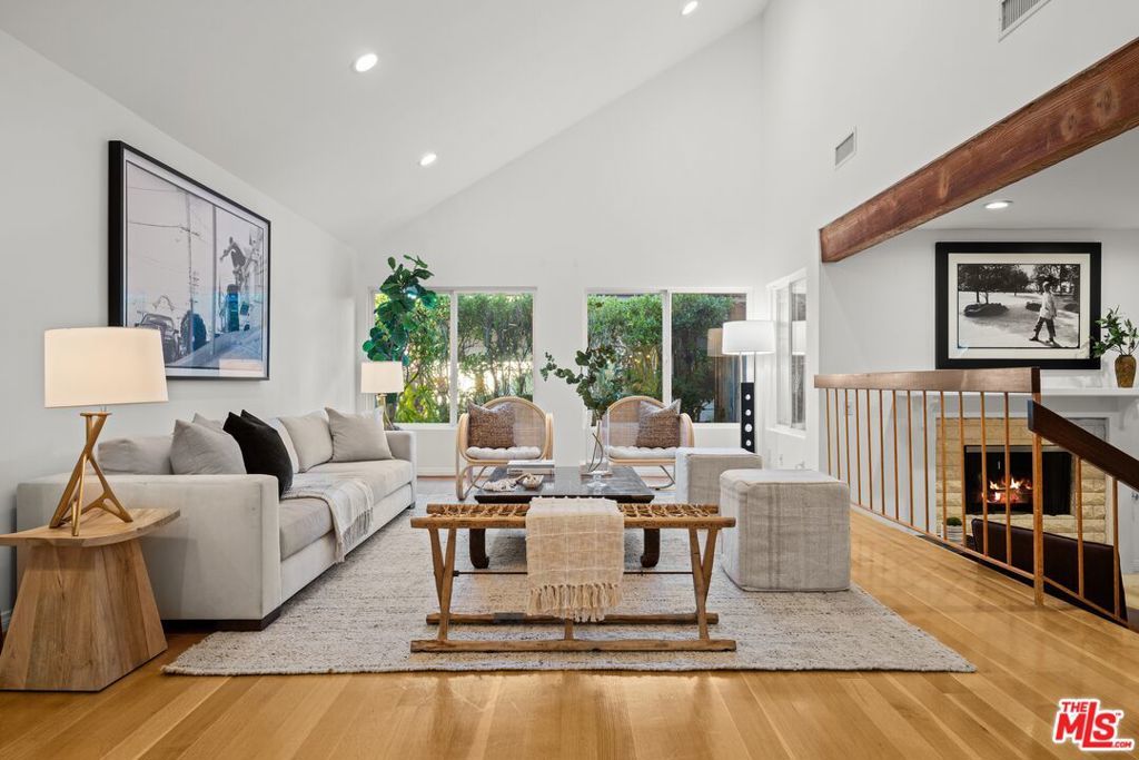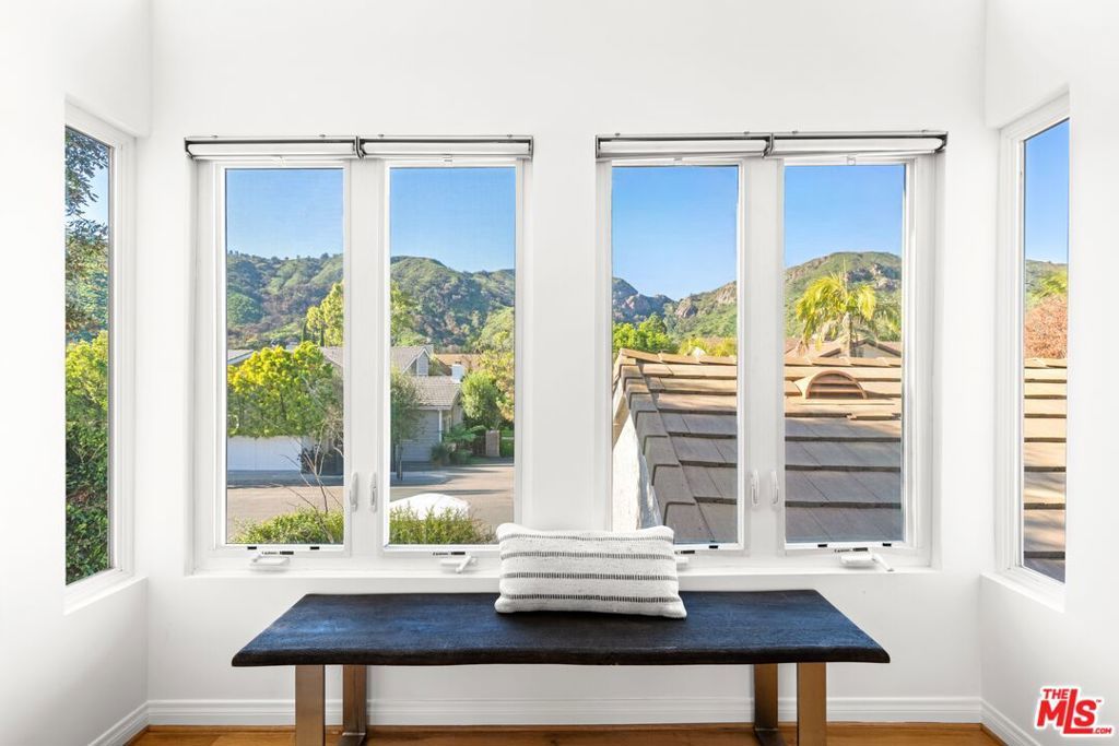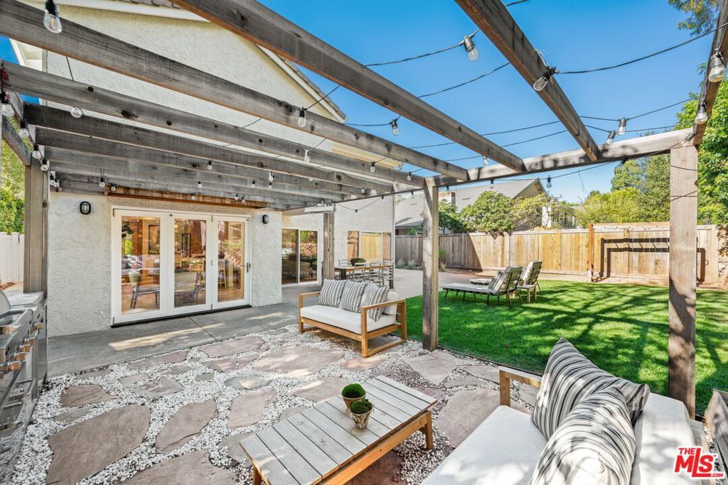 Welcome to an elevated way of life in Pacific Palisades, where coastal beauty meets the effortless sophistication of the Santa Ynez Mountain landscape. Set on a quiet cul-de-sac in the sought-after Palisades Highlands, this impeccably maintained two-level residence offers a rare opportunity to enjoy refined California living with complete peace of mind. Thoughtfully blending timeless comfort and modern elegance, the home spans approximately 2,885 square feet with four beautifully appointed bedrooms and three baths. Upon entry, soaring ceilings and abundant natural light define the expansive living spaces. The formal living room impresses with vaulted ceilings, a gas fireplace, and a wet bar -- creating a welcoming setting for both intimate evenings and elegant entertaining. An adjacent dining room provides the perfect backdrop for memorable gatherings. Further in, a separate family room flows seamlessly to the backyard through sliding glass doors, offering effortless indoor-outdoor living. An artfully curated wood staircase anchors the home's architectural presence, while special moments throughout -- including the bar area and fireplace -- add warmth and character. At the heart of the home, the remodeled kitchen showcases custom wood cabinetry, stone countertops, premium appliances, a pantry, and a charming garden window. A casual breakfast area opens to a pergola-covered flagstone patio with a built-in BBQ, ideal for relaxed entertaining and alfresco dining. Upstairs, all four bedrooms are thoughtfully arranged to create a private, serene living experience. The primary suite is a true sanctuary, featuring beamed vaulted ceilings, dramatic picture windows framing the Santa Ynez Mountain range, and exceptional storage with a walk-in closet plus two additional closets. The spa-inspired ensuite bath offers dual vanities, a deep soaking tub, and a glass-enclosed tile shower. The additional bedrooms are impressively spacious and versatile -- one currently styled as a refined home office with a built-in desk -- while the others provide generous, sunlit retreats for family, guests, or personal wellness spaces. These bedrooms are supported by a beautifully appointed full bath with a double-sink vanity and tub/shower combination, designed for comfort and ease. Every element of the home has been curated to support a gracious, elevated lifestyle. Exceptional storage is woven throughout, complemented by modern enhancements including dual-zoned heating and air conditioning, and a new sewer line. The upgraded spacious 3-car garage features new springs and a new opener and offers direct entry for added convenience. Outdoors, a lush hillside backdrop with no rear neighbors ensures privacy. The backyard features a grassy lawn and fruit trees, open patios for lounging or dining, and a built-in BBQ and beverage refrigerator perfect for year-round enjoyment. Adding to the lifestyle appeal is a membership to the nearby Santa Ynez Recreation Center, offering a beautiful Santa Ynez Recreation Center which features a 75 foot lap pool, children's pool and jacuzzi, three lighted tennis courts, pickle ball courts, a playground and play structure, a clubhouse with full kitchen, gym, a large screen entertainment system, 7-foot Imperial eliminator pool table, ping pong table, and foosball table, a pool house with four showers and vibrant landscaped community spaces. With hiking and biking trails just moments away and Palisades Village only minutes from home, this residence captures the essence of Pacific Palisades living. A home designed not just to live in -- but to truly cherish!