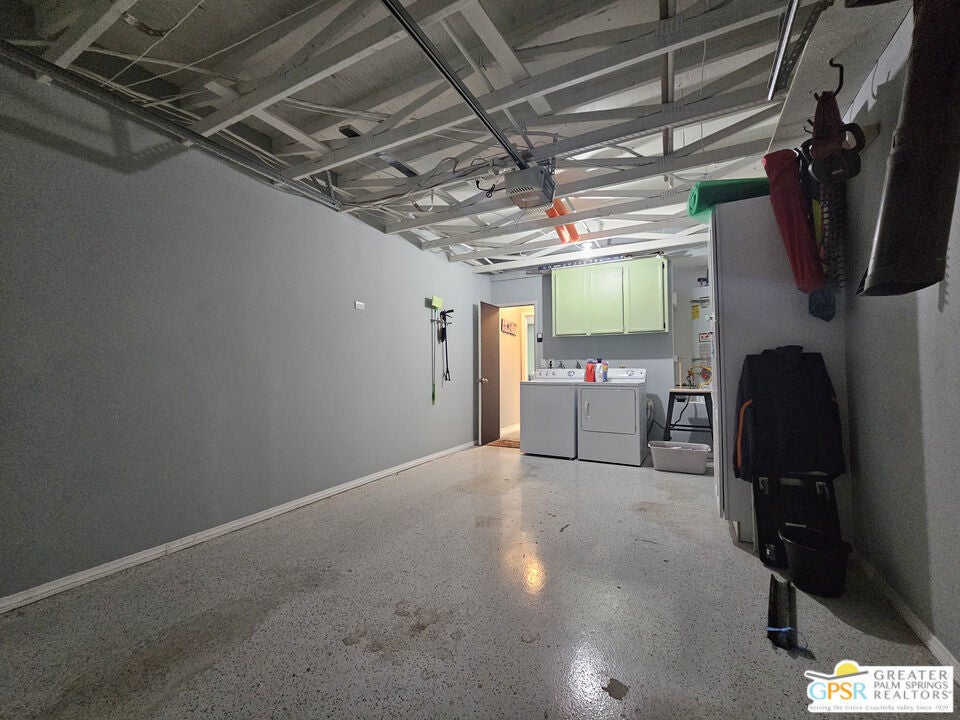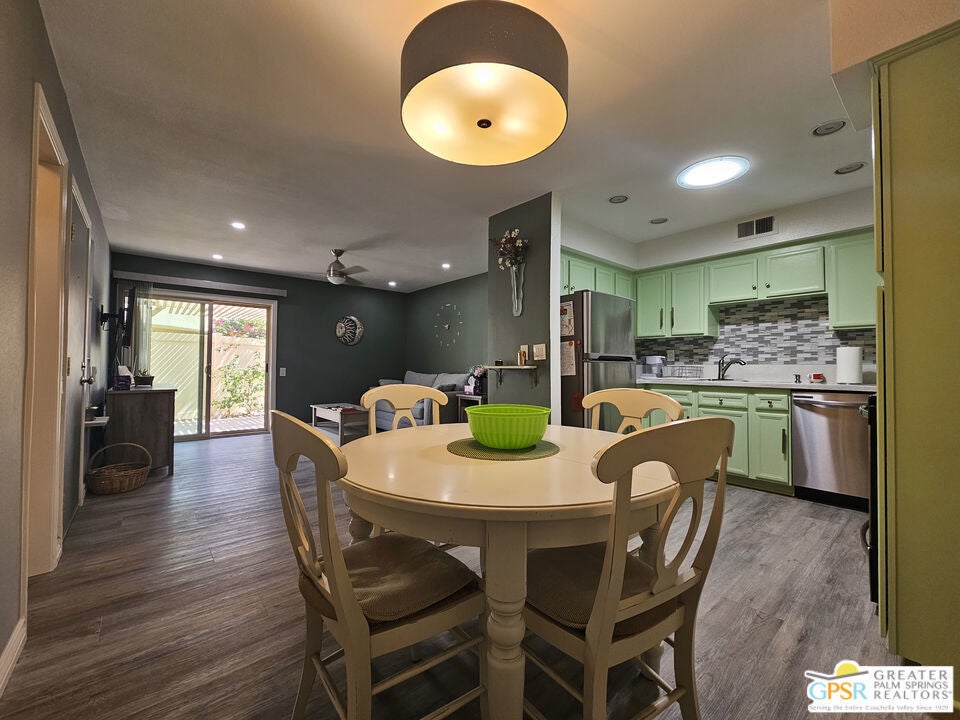 Beautifully furnished condo featuring its own private in-ground spa with stunning mountain views. The backyard offers two covered patios, newer spa equipment, and fresh vinyl fencing for added privacy. Inside, enjoy an updated kitchen, remodeled bath with added half bath, waterproof vinyl flooring, and three newer double-pane sliding doors that bring in great natural light. One bedroom is set up as a home office with direct access to the yard and spa, plus a built-in refrigerator. Additional highlights include three TVs, custom closet shelving, and an attached one-car garage with remote.Located in a beautifully maintained gated community with recently repainted exteriors, 8 pools, 8 spas, tennis courts, basketball courts, and incredible mountain views throughout. Just minutes from downtown Palm Springs.
