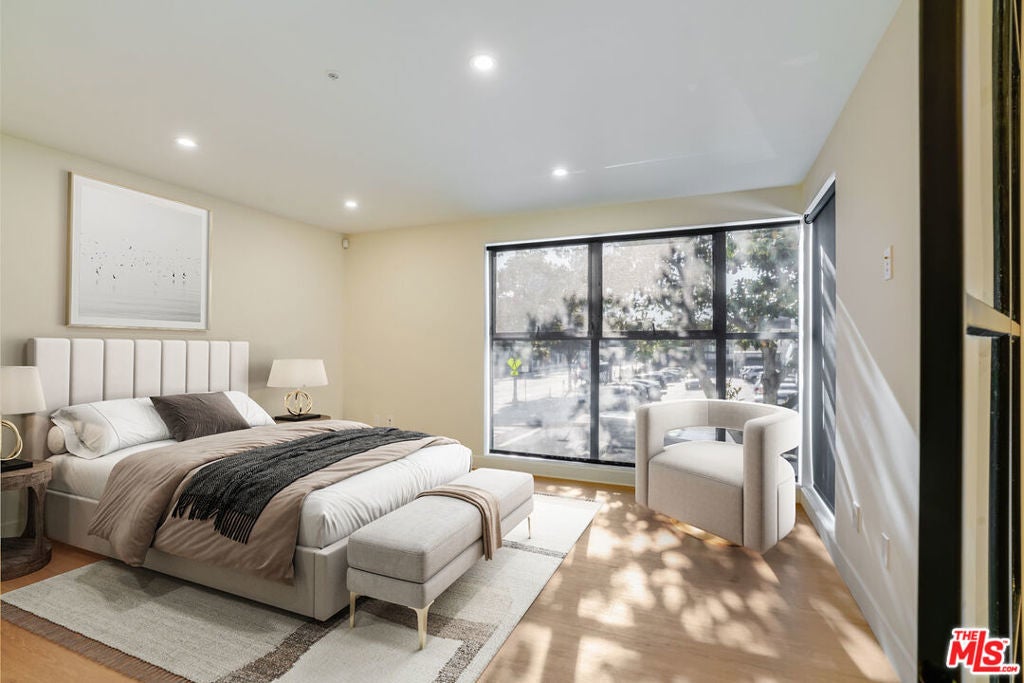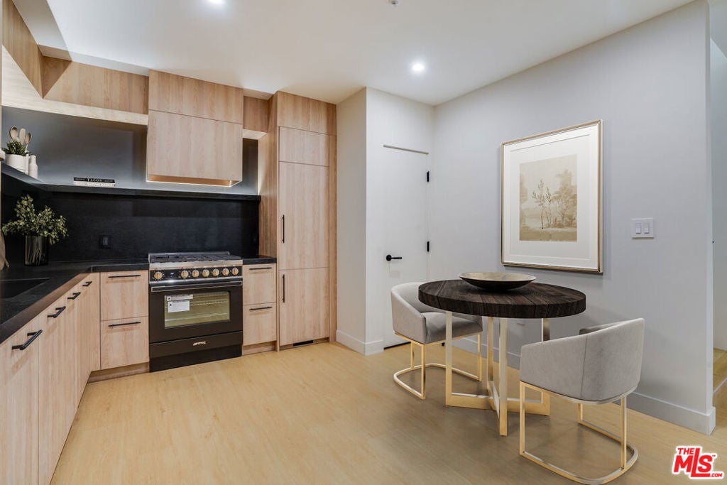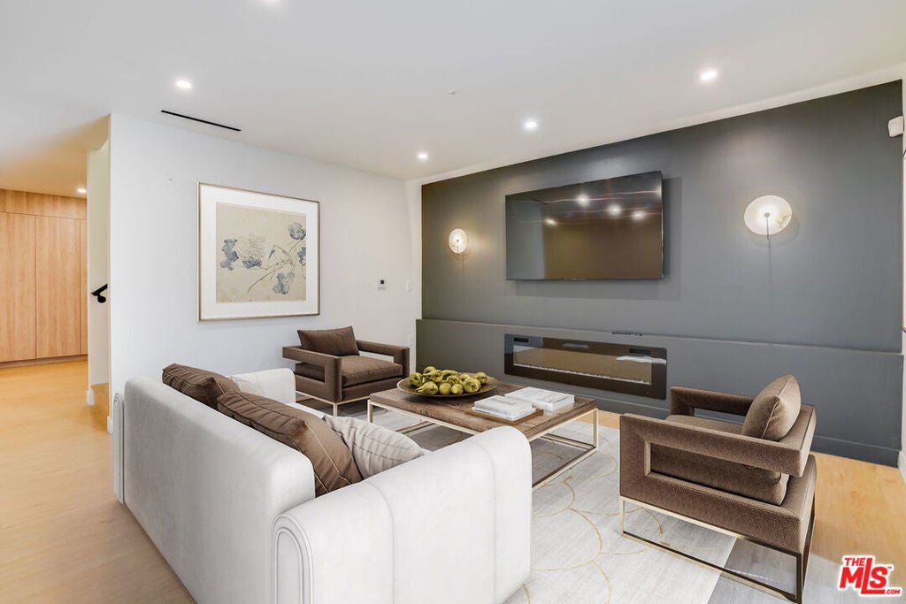 This sleek and stylish, quintessential live-work style apartment located in the heart of Santa Monica in Silicon Beach is centrally located to cafes, restaurants, shops and more. The spacious 2-story apartment feels more like a home than apartment. Enjoy all the luxuries and comforts in this meticulously transformed space with top of the line finishes throughout. The unit is private, and has a cozy outdoor patio sitting area. You enter upon a large living area with a modern fireplace, mounted flatscreen TV flanked by large picture windows. The spacious dining area can also be used for an office or additional seating area. The modern and remodeled chef's kitchen features a high-end Smeg refrigerator, and Smeg stove perfect for cooking up large dinners or just looking good. Plenty of storage in the custom 3-pantry system and oak shelving. The kitchen has space for a breakfast table or more. The downstairs features a stunning bathroom with matte black tiles accentuated by the oak vanity and cabinet. Beautiful light colored wood-like floors and recessed lights can be seen throughout the space. Up the stairs, you will find plenty of storage in the modern custom closet system as well as an open area perfect for a workstation or sitting area. The gorgeous master bath features a tub/shower and floating vanity with a large round mirror. The large primary bedroom is accessed through sleek French-style doors just off the open area and has large picture windows with remote control roller shades. Privacy is not an issue here with remote control window treatments throughout the apartment home. Washer/dryer in unit & 1 parking space available in the private & gated garage for additional charge. A must see whether you are looking for a stylish apartment or a live-work office space. Easy to show.