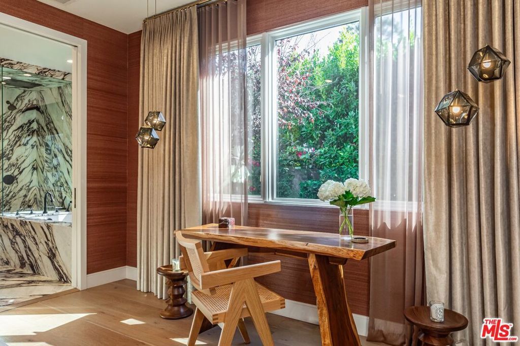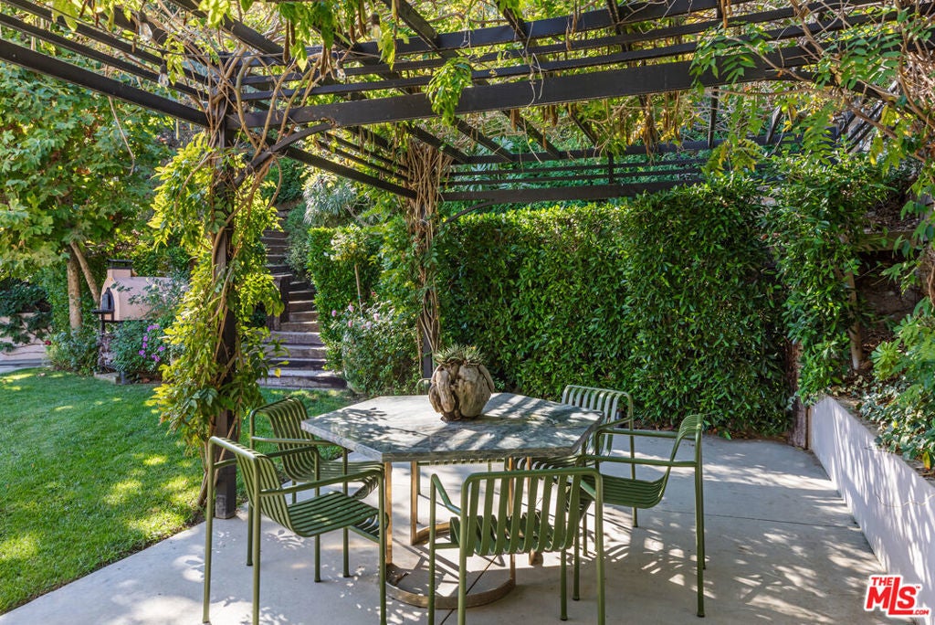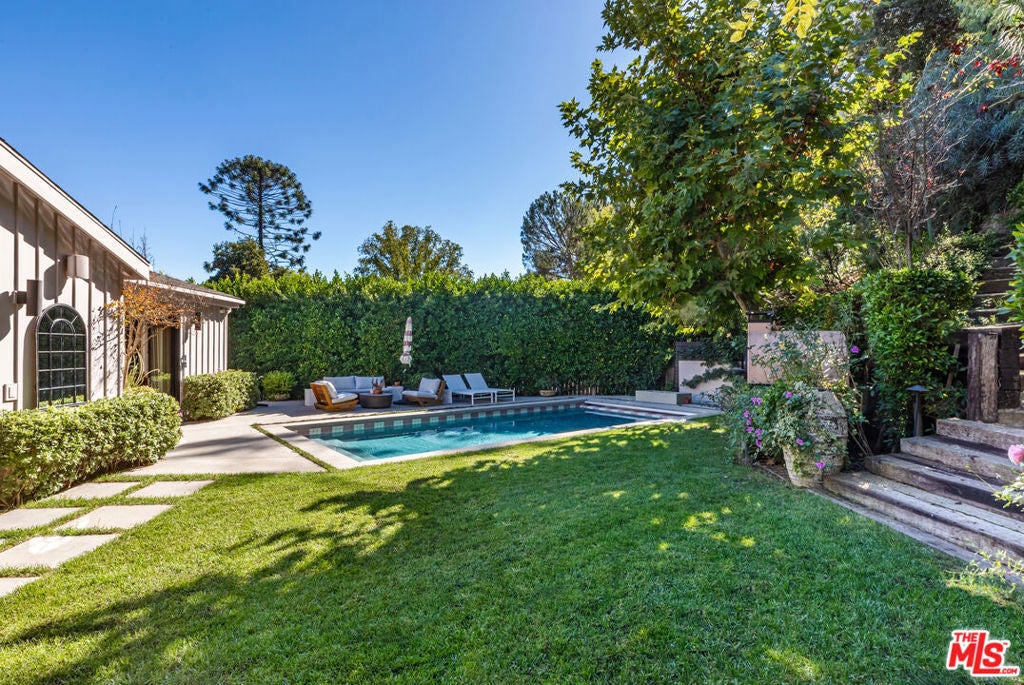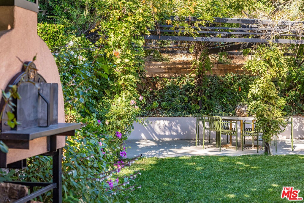 Step inside Wonderland on Wonderland, a storybook retreat and true hidden gem tucked away in one of Laurel Canyon's most coveted and tightly held enclaves. Framed by mature sycamores, cascading greenery, and blooming white roses, this chic designer residence feels like its own private world from the moment you arrive, with a sense of calm and peaceful energy that carries throughout the property.Upon entry, custom hand-painted Porter Teleo wallpaper creates a striking first impression. Designed by Parlor Interiors and featured on the cover of California Home + Design, the home seamlessly blends elevated California style with timeless warmth. Vaulted, beamed ceilings and abundant natural light enhance the airy, welcoming atmosphere.The great room is the heart of the home, anchored by a dramatic custom green fireplace, warm oak floors, and a full wall of Fleetwood glass doors that open to the backyard, creating effortless indoor-outdoor living.Set on approximately half an acre, the grounds were beautifully landscaped by Brent Green of Green Art Landscape Design, offering a secluded hillside garden oasis complete with a sparkling tiled pool, wisteria-draped pergola, sculpted hedges, and a wood-burning pizza oven, ideal for entertaining or everyday enjoyment.Located within one of Los Angeles' top-ranked public school districts and just moments from Wonderland Avenue Elementary, the home is well suited for families seeking privacy, a functional layout, and a strong sense of community. Finished with high-end materials and bespoke details throughout, the property strikes a rare balance of charm, character, and modern livability.Privately nestled yet minutes from the Sunset Strip and the best of the Hollywood Hills, this is a rare opportunity to own a truly special home in Laurel Canyon.