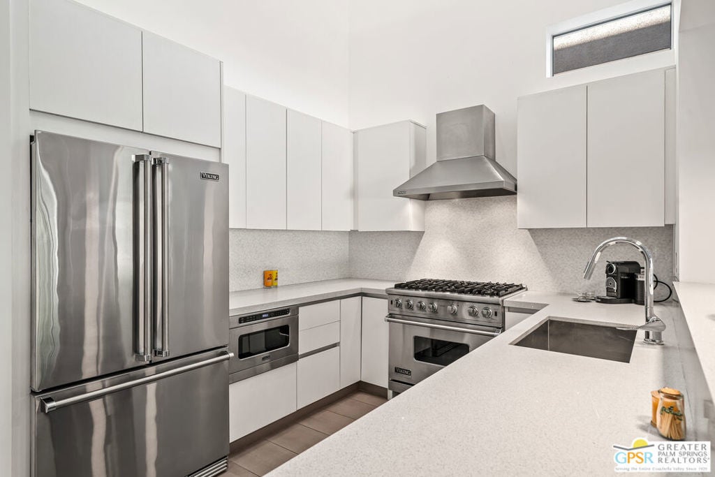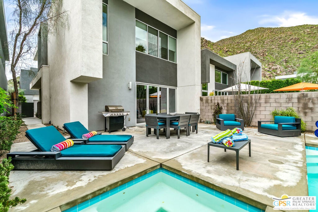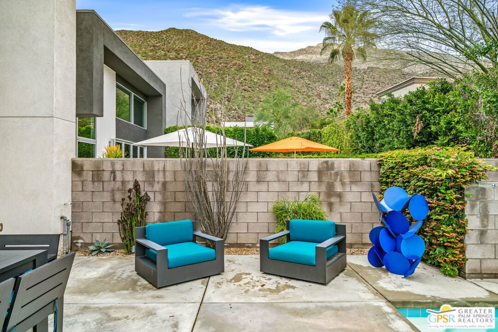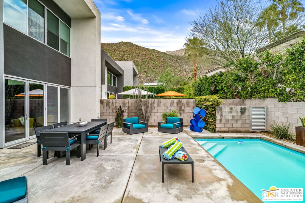 YOU DESERVE A HOLIDAY GIFT. THIS IS IT. Tucked into the exclusive "Dakota" enclave, this RARELY AVAILABLE, handsome home. South Palm Springs location and positioned at the foot of the mountains. FEE LAND for long term value in ownership and LOW HOA dues. A yard that balances space for entertaining with ease of maintenance, accessible through accordion doors providing seamless indoor/outdoor flow! Two generously sized bedroom suites plus a loft. A dream cook's kitchen complete with Viking appliances. Stunning, modern finishes throughout. This location enjoys the buzz of the city AND the serenity of nature. Don't hesitate or someone else will snag your dream home.