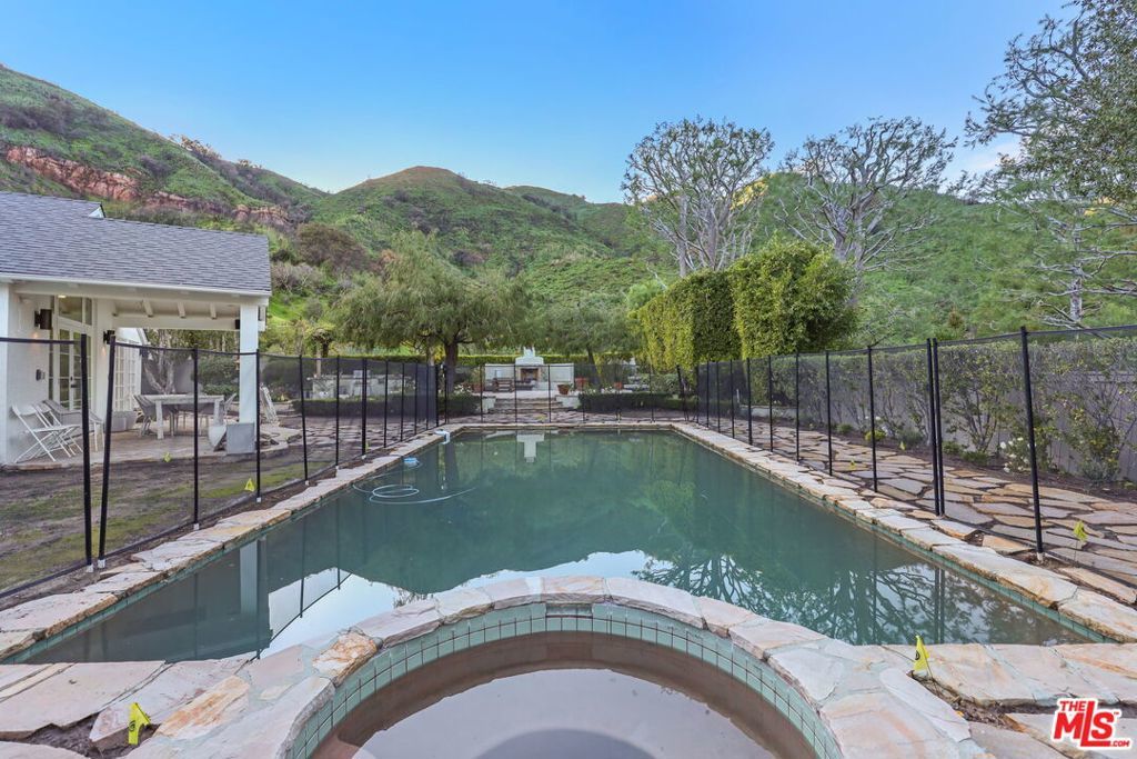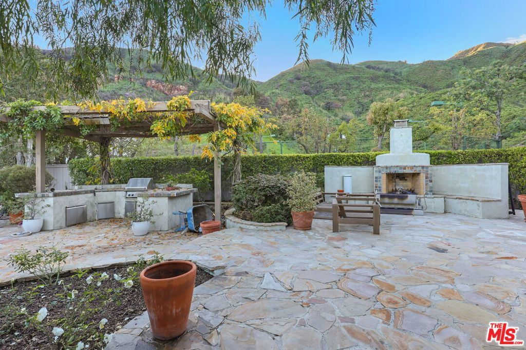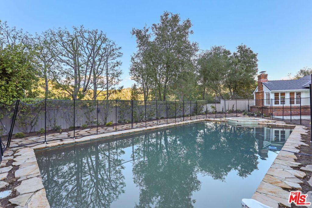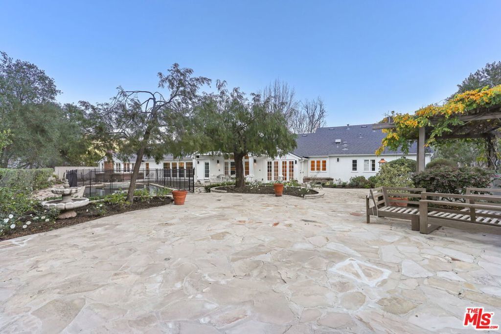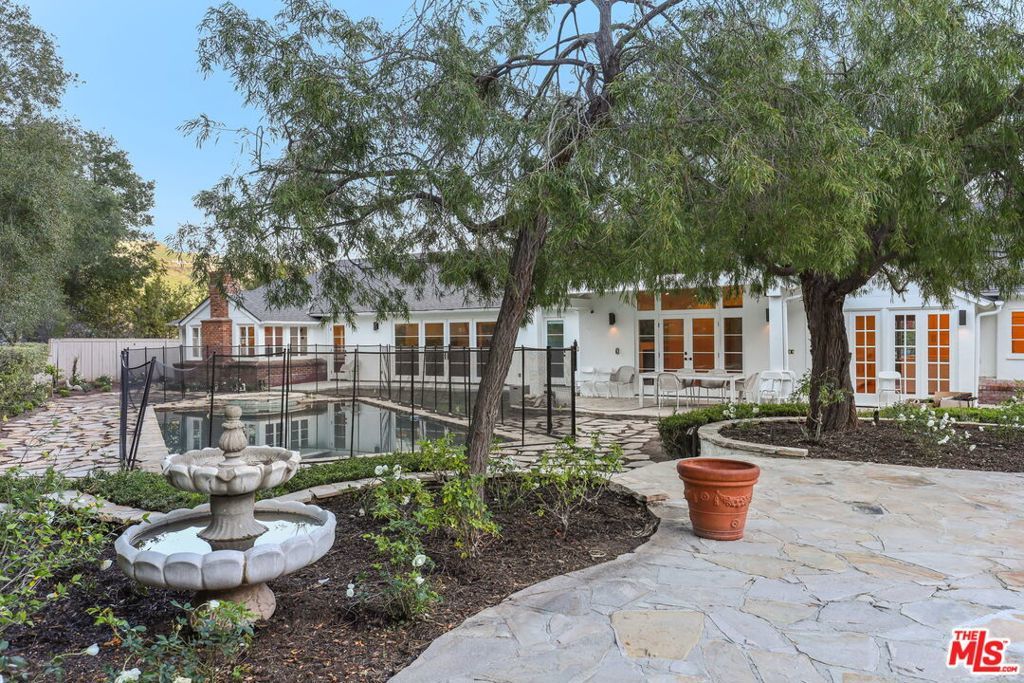 Set behind the gates of Palisades Country Estates, this impeccably remodeled residence offers rare privacy, warmth, and over 1/2 acre of serene indoor-outdoor living. This ranch style single level home designed with love, practicality, and exquisite attention to detail features an open chef's kitchen equipped with top of the line appliances, a sundrenched breakfast area, and easy flow to both the family room and large private dining room. The primary suite offers vaulted ceilings, a cozy fireplace, natural light and access to the large custom pool and spa, as well as a private outdoor space featuring a sauna and outdoor shower. Primary bathroom adorned with marble counters, a soaking tub, custom cabinetry, a large separate shower, and double sinks. Three additional bedrooms feature updated closets. A huge playroom/media room plus a private office complete the family wing of the home. Additionally there is a private bedroom suite with it's own full bath. Throughout the home you'll find premium luxury flooring and extensive built-ins, no expense spared. The expansive backyard features a built in barbecue, a massive stone patio, and outdoor fireplace surrounded by lush landscape and the Santa Monica mountains. Three car garage (one space used as a home gym), electric charging, an additional fridge, and more. This home has it all!