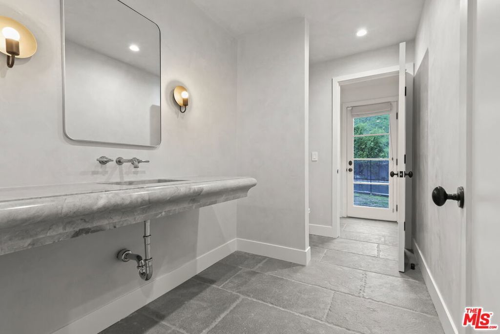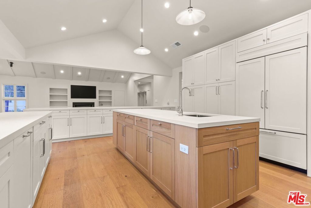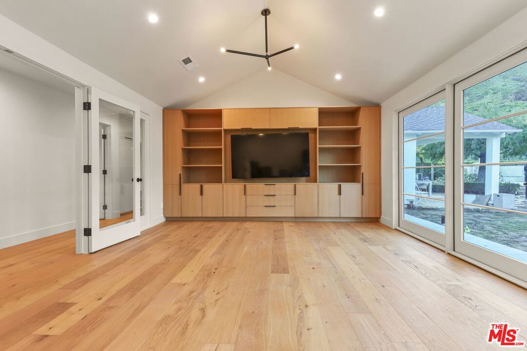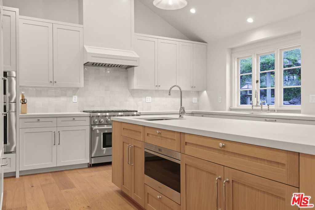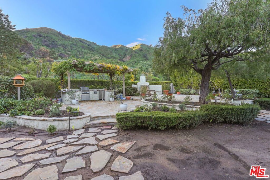Set behind the gates of Palisades Country Estates, this impeccably remodeled residence offers rare privacy, warmth, and over 1/2 acre of serene indoor-outdoor living. This ranch style single level home designed with love, practicality, and exquisite attention to detail features an open chef's kitchen equipped with top of the line appliances, a sundrenched breakfast area, and easy flow to both the family room and large private dining room. The primary suite offers vaulted ceilings, a cozy fireplace, natural light and access to the large custom pool and spa, as well as a private outdoor space featuring a sauna and outdoor shower. Primary bathroom adorned with marble counters, a soaking tub, custom cabinetry, a large separate shower, and double sinks. Three additional bedrooms feature updated closets. A huge playroom/media room plus a private office complete the family wing of the home. Additionally there is a private bedroom suite with it's own full bath. Throughout the home you'll find premium luxury flooring and extensive built-ins, no expense spared. The expansive backyard features a built in barbecue, a massive stone patio, and outdoor fireplace surrounded by lush landscape and the Santa Monica mountains. Three car garage (one space used as a home gym), electric charging, an additional fridge, and more. This home has it all!