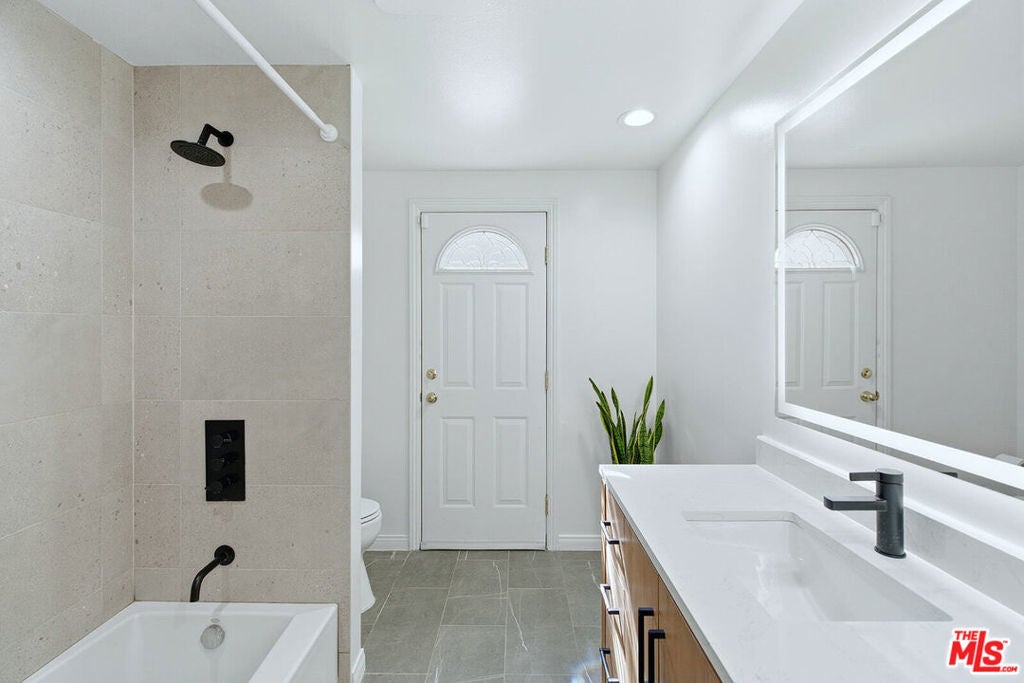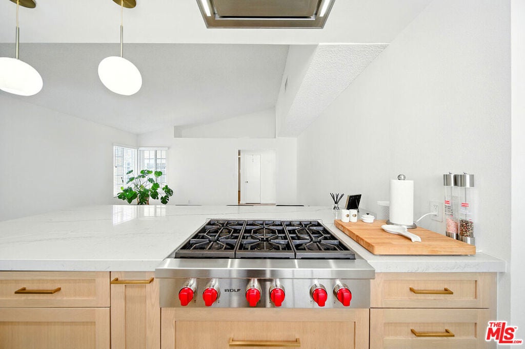Nestled in the prestigious Highlands of Granada Hills, this beautifully updated single-story home offers 5 bedrooms and a thoughtful floor plan designed for both comfort and style. A skylight and expansive sliding doors fill the living room with natural light, creating a bright, airy gathering space that seamlessly connects indoors and out. The remodeled kitchen serves as the heart of the home, showcasing a spacious walk-in pantry, stunning waterfall countertop, and premium stainless steel appliances including a double oven and Wolf gas range. The primary suite offers a peaceful retreat with a walk-in closet and a fully renovated ensuite bathroom featuring a smart mirror and modern finishes. The second bathroom has also been recently renovated with stylish upgrades. Four additional bedrooms provide flexibility for family, guests, or a home office. Step outside to a serene backyard with a covered patio and fruit trees yielding tangerines, grapefruit, and sweet lemons - perfect for relaxing or entertaining. Recent upgrades, including dual-pane windows, plumbing and sewer line improvements, and a newer roof and A/C system, highlight the home's exceptional care and quality. Located near Knollwood Country Club, O'Melveny Park, and top-rated schools such as Van Gogh Charter Elementary and Robert Frost Middle, this home beautifully combines lifestyle, location, and value into one outstanding offering.