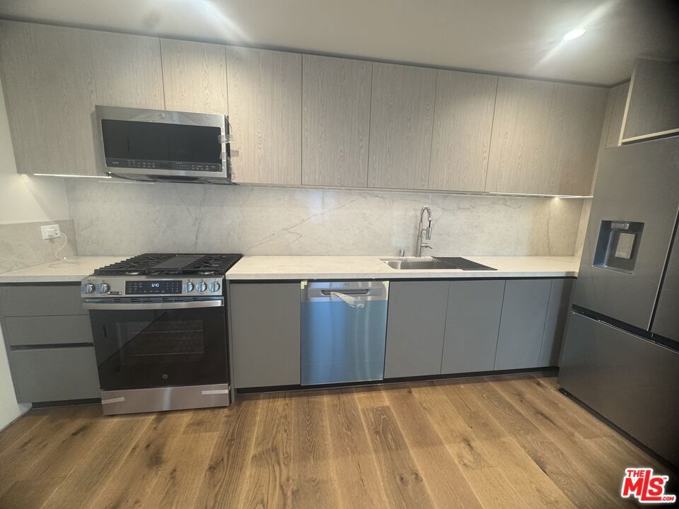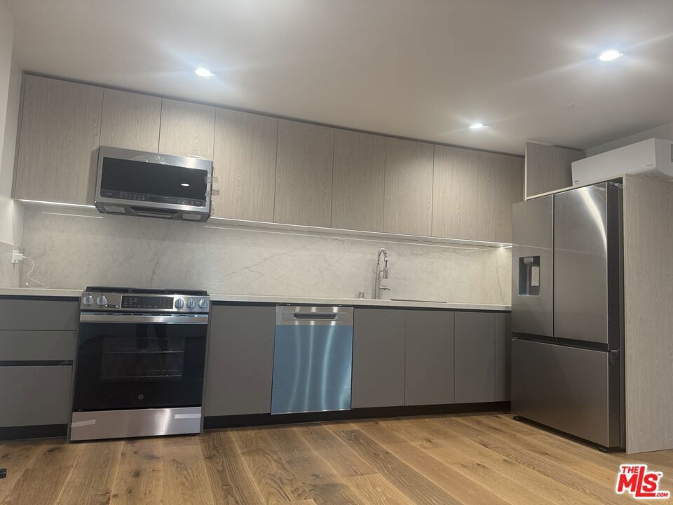 Experience refined Beverly Grove living in this brand new construction residence, ideally situated on 4th Street between Sweetzer and La Jolla. This newly constructed lower level 2 bedroom 2 bathroom ADU offers approximately 917 sq ft with a thoughtful open layout and luxury with only one unit above. Be the first to live in this residence featuring modern finishes, custom kitchen cabinetry and counter tops, stainless steel appliances, recessed lighting, custom silhouette window treatments and much more. Both bedrooms are generously sized and complemented by spa inspired bathrooms and sleek fixtures. Generous in unit storage room, and individual split A/C systems provide personalized climate control in each room. This unit is set in a rear building with a secured gated entry which enhances privacy and security. Ideally located in the heart of Beverly Grove, just steps from The Grove, Beverly Center, Trader Joe's, Whole Foods Market, Farmers Market, and many of Los Angeles' sought after dining places including Katsuya, Little Door and Joan's on Third. Close to Cedars-Sinai. Set on a quiet, permit-only street with ample street parking, this residence offers a blend of luxury and walkability in one of LA's most desirable neighborhoods.