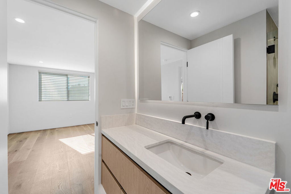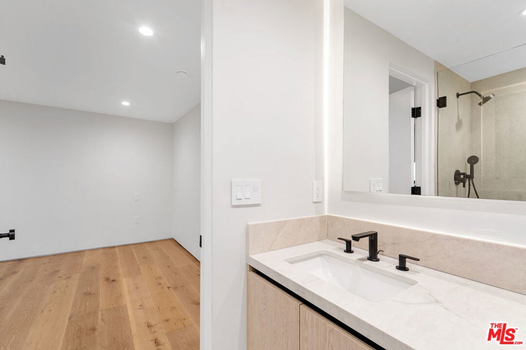 Experience refined Beverly Grove living in this brand new construction residence, ideally situated on 4th Street between Sweetzer and La Jolla. This newly constructed lower level 2 bedroom 2 bathroom ADU offers approximately 917 sq ft with a thoughtful open layout and luxury with only one unit above. Be the first to live in this residence featuring modern finishes, custom kitchen cabinetry and counter tops, stainless steel appliances, recessed lighting, custom silhouette window treatments and much more. Both bedrooms are generously sized and complemented by spa inspired bathrooms and sleek fixtures. Generous in unit storage room, and individual split A/C systems provide personalized climate control in each room. This unit is set in a rear building with a secured gated entry which enhances privacy and security. Ideally located in the heart of Beverly Grove, just steps from The Grove, Beverly Center, Trader Joe's, Whole Foods Market, Farmers Market, and many of Los Angeles' sought after dining places including Katsuya, Little Door and Joan's on Third. Close to Cedars-Sinai. Set on a quiet, permit-only street with ample street parking, this residence offers a blend of luxury and walkability in one of LA's most desirable neighborhoods.