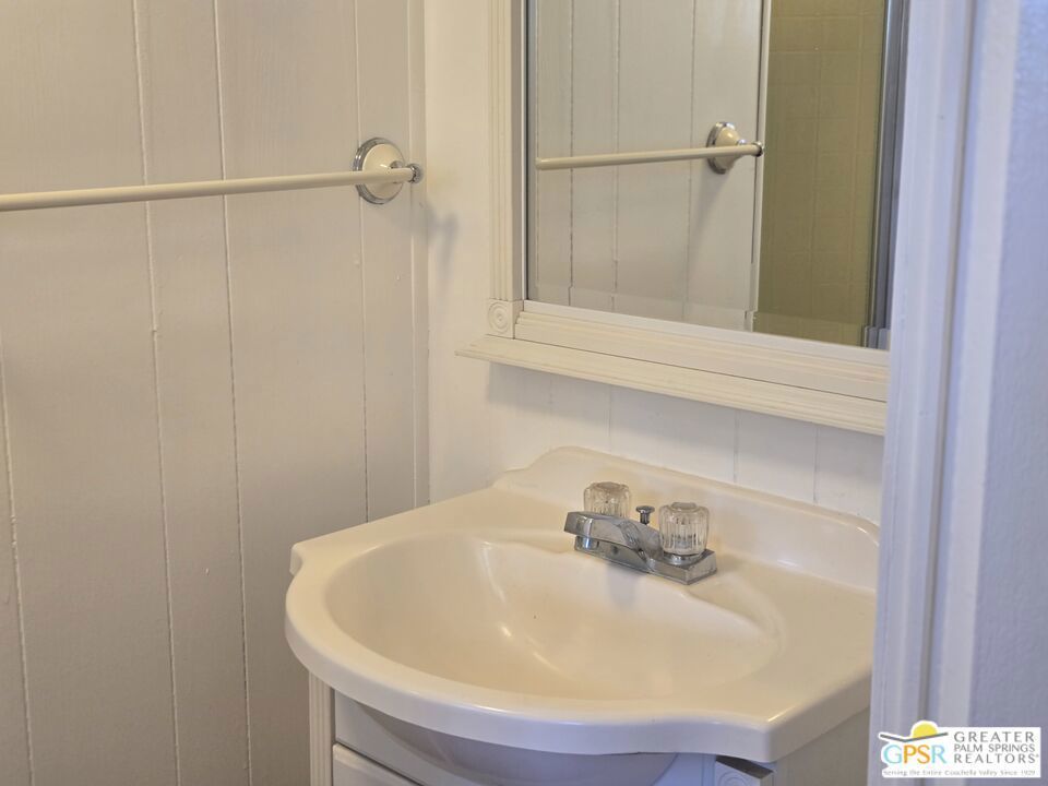Looking for the right sized space that is cozy and easy care? Find it with this 2 Bedroom, 2 Bath home in the 55+ Active community of Desert Crest Country Club, where you own the land. Here it is peaceful, yet a vibrant Community that offers many opportunities year-round. The location is ideal for those looking for a peaceful retreat. The quiet neighborhood is perfect for relaxation and unwinding. With easy access to nearby conveniences and attractions in the Coachella Valley, residents enjoy the accessibility of city living amenities while still being able to enjoy country tranquility. Whether you are looking for a permanent residence or a vacation home, this property offers the perfect combination of comfort, convenience, and charm. The home itself is set on the entry to a long cul-de-sac on the Northeast corner. An almost circular Driveway enters both a one vehicle Garage and a recently permitted, and professionally built Carport. Front Door Entry has a covered Porch area with views into the Valley. Enter into the open Living Room and Dining Area that has a lot windows for natural light. The recently painted surfaces both inside and out make the home gleam, while the newer flooring of laminate wood, and real tile in the Kitchen and Bath areas tie it together and gives "new home" vibes. The Dining Area has built-in cabinetry with glass doors and mirrors, while the chandelier Fan lighting completes the look. A recently installed A/C split unit aids in keeping the public areas cool, while a Swamp Cooler does the same in the Garage. Completing your comfort is the recently refurbished HV/AC system. The Kitchen is light and bright with newly installed tile backsplash above the lovely laminate countertops. Cabinetry is crisp, and a banquet-style Refrigerator lets you entertain with ease. Both Bedrooms are roomy, with mirrored closet doors in the 2nd Bedroom, and the Main with an ensuite Bath and direct outdoor Entry installed. The ensuite Bath enjoys a large Shower, with newer facilities. Just next to the second Bedroom, another full barn Door Entry Bath has a spacious Shower and Tub combo, Sink plenty of counter space, and updated facilities. The Garage is directly accessible, with a Washer, Dryer, and Utility Sink. Currently set up as a sitting space, there is still plenty of room for a vehicle. You still have plenty of storage space with the separate 10-foot by 12-foot Shed. The cedar fencing was recently placed around the property along with D&G gravelling, giving it a finished look. The final touch of this lovingly maintained Home is the repainted Roof. The Desert Crest Country Club community boasts a 9-hole golf course, inviting residents to enjoy leisurely rounds amid the picturesque setting of pond and mature trees that boast views of Mounts San Jacinto and San Gorgonio and the iconic windmills of the Banning Pass. This oasis extends beyond the golf course. Residents here enjoy a multi-faceted Clubhouse featuring a healthy mineral water Pool and Spas, providing a serene escape and a hub for plenty of social connections. Indoor Shuffleboard and other activities are a welcome diversion here at the Clubhouse, with many interior facilities to keep you moving. The onsite cafe caters to culinary cravings, the dog groomers attend to furry companions, and the real estate office ensures all needs are met with ease. These conveniences foster not just a residence but a sense of belonging within a home and community bound by shared experiences and vibrant camaraderie. This home represents a harmonious blend of comfort, style, and functionality, creating a delightfully private haven within the heart of Desert Crest Country Club. Whether indulging in a round of golf, luxuriating in the mineral water pool, or simply savoring the serenity of the surroundings from your very private rear deck, this property offers a unique and fulfilling 55+ living experience, where every moment resonates with the essence of a life well-lived.
