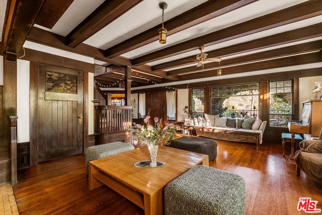 Historic Craftsman on a 17,000+ sq ft street-to-street lot in the coveted Garvanza HPOZ, complete with Mills Act property tax savings. Originally built for banker Frank R. Liddell, the first President of the Painter's Club, this early-1900s residence presents an extraordinary opportunity to restore, expand, and reimagine a historic property with exceptional potential. Perched above the street, the home retains classic Craftsman character, including hardwood floors, period details, three fireplaces, a dramatic living room, a wood-paneled parlor overlooking mature gardens, and a spacious dining room. The main level also includes a kitchen with oversized pantry, breakfast room, mudroom, and powder room. Upstairs features five bedrooms, two bathrooms, and a convenient laundry closet. Wood accents, warm lighting, and hillside views create an inviting retreat. The expansive street-to-street lot offers rare scale and flexibility. Lush, established gardens form a private oasis, with mature fig and citrus trees providing shade, fragrance, and abundant harvests. With its rich architectural legacy, valuable Mills Act tax savings, and generous lot size, this property offers a compelling opportunity to restore and enhance a historic Craftsman into a premier Highland Park estate. Ideally located just moments from neighborhood favorites including Highly Likely, Cookbook Market, and Highland Park Bowl, the property offers both historic significance and access to the vibrant lifestyle that has made Highland Park one of the city's most sought-after communities.