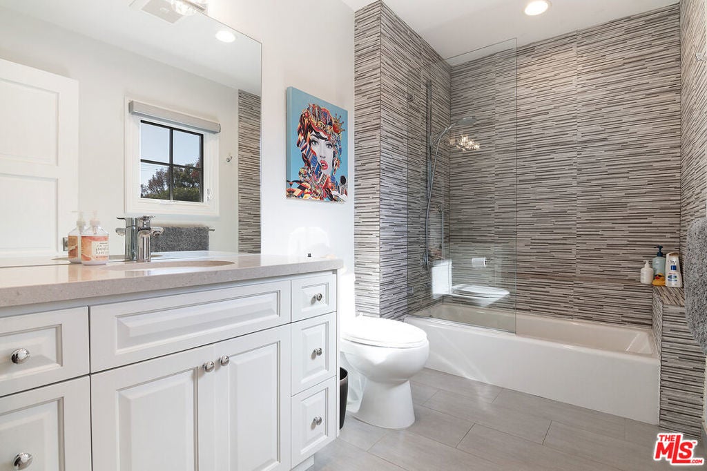 Nestled in the heart of the coveted Beverlywood HOA, a short walk from Circle Park, this exquisite 2014 transitional style residence offers 5 bedrooms, 5.5 bathrooms, and approximately 4,877 square feet of refined living space on a rare and expansive 10,000 square foot lot. Step into a gracious central vestibule, flanked by an elegant living room that sets a tone of timeless sophistication. To one side, discover an exceptionally spacious formal dining room, adorned with a built-in wet bar with ice machine perfect for festive gatherings, with seamless access to indoor-outdoor dining. The chef's kitchen is a masterpiece of function and luxury, featuring dual sinks, dual dishwashers, high-end Thermador double ovens, range, and warming drawer, a Sub-Zero refrigerator, a generous center island seating four, and a walk-in pantry. The adjacent elegant family den features wall-to-wall custom built-ins, a dedicated office workstation, and French doors opening directly to the lush backyard. Downstairs also includes a full guest bedroom suite for privacy and comfort, along with a chic powder room. The wide staircase bathed in natural light from a streaming skylight, leads to a spacious upstairs landing. Here you will find four additional private suites, each with its own en-suite bathroom. The large primary suite is a true retreat with an expansive balcony overlooking the verdant yard. One upstairs bedroom contains a built-in infrared sauna and integrated theater system for ultimate enjoyment. Outside, the nearly 10,000-square-foot lot unfolds into a resort-like paradise complete with a solar-heated pool, spa, and convenient outdoor bathroom. The rear patio, thoughtfully half-covered and half-pergola shaded for enjoyment in any weather, features a dedicated dining area with built-in BBQ station, a lounging zone complete with mounted TV and outdoor fireplace. This rare combination of size, sophistication, and location in prime Beverlywood presents an unparalleled leasing opportunity for those seeking elevated Westside living.