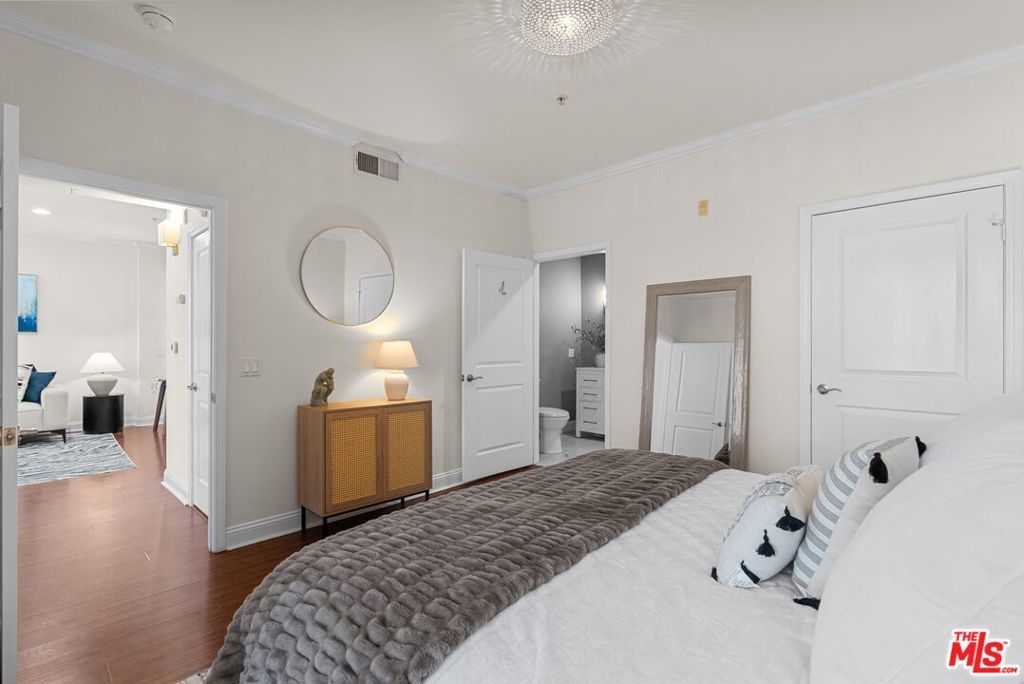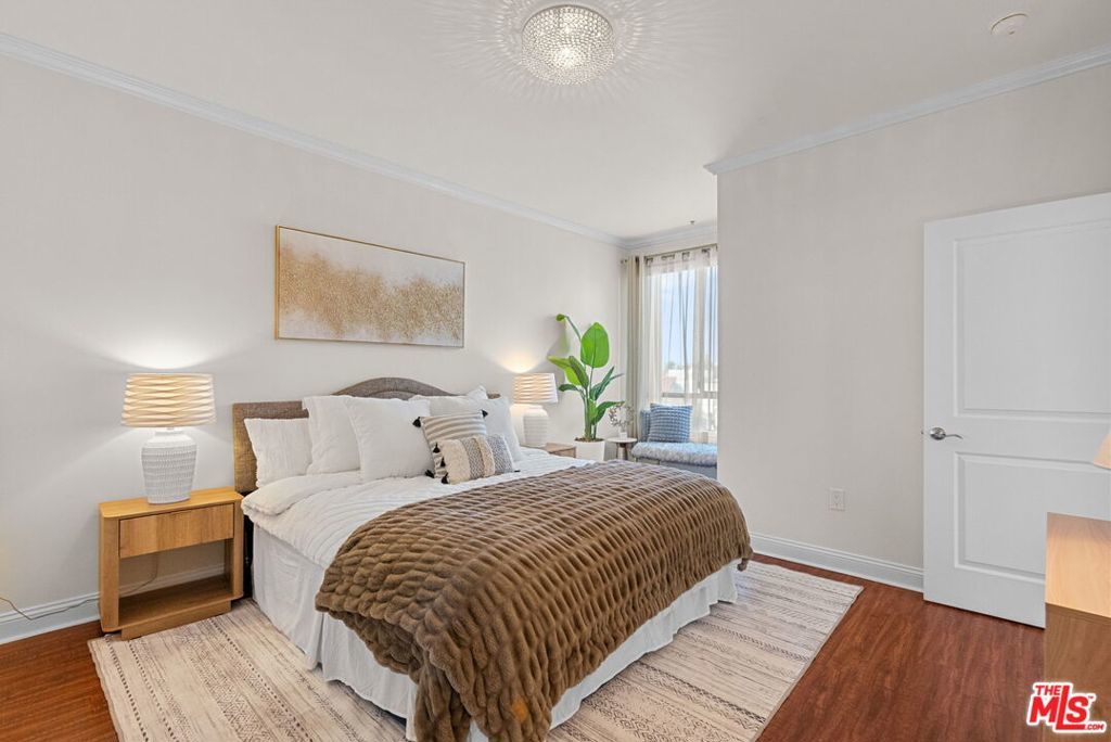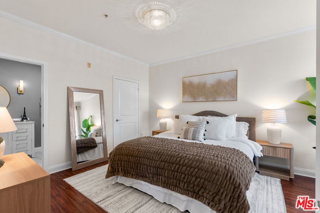 Highly desirable 2 bd/2 bath penthouse corner unit on the top floor of the beautiful Laurel Bliss building. The unit was freshly painted in 2025 and recently renovated, complete with newer bathrooms and designer type appliances, including a jet operated soak tub in the primary bathroom. With a spacious modern open floor plan, high ceilings, vinyl flooring, and ample natural lighting throughout, this home is the very definition of charm and luxury.The unit also features a washer and dryer inside of a large pantry closet with ample storage. The newly renovated kitchen has modern cabinets and stainless-steel appliances. The primary bedroom features a spacious closet and a nook with a large window providing incredible views, especially during sunsets!The building has a remote accessed garage (2 tandem parking spot availability plus guest parking). There are open-air corridors throughout the building that surround a serene courtyard, where you can enjoy BBQ by the recreation room or head up to the rooftop for amazing views of the Valley and front row seats to 4th of July fireworks! The lobby of the building also has a gym. The HOA dues covers trash including recylcing, hot water, master insurance policy, and sewage.Don't miss this opportunity to live in a warm and inviting home right in the center of North Hollywood, only minutes away from the NoHo West shopping and entertainment complex, amazing restaurants and grocery stores, coffee shops, theaters, and parks. The building is very conveniently located with access to the 101 and 170 freeways.
