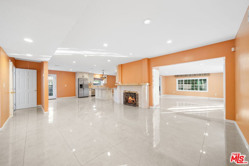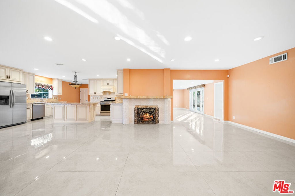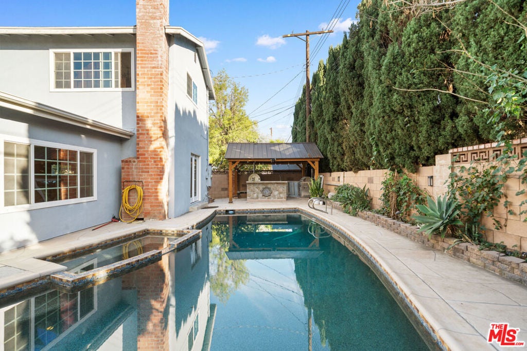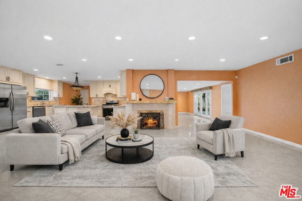 Experience the ultimate in indoor-outdoor living with this stunning fully remodeled entertainer's dream home, perfectly situated in a quiet neighborhood known for its good neighbors and convenient access to local restaurants, featuring a modern exterior with classic brick accents and a spacious, manicured front lawn. The expansive open-concept interior is anchored by high-gloss tile flooring and two distinct living areas, each featuring a unique fireplace, one with a traditional brick surround and another with elegant marble-style masonry. A true chef's kitchen serves as the heart of the home, boasting a massive granite center island, premium stainless steel appliances, and ample custom cabinetry. Retreat to the resort-style backyard, where you will find a sparkling geometric pool and integrated spa surrounded by professional-grade amenities. A massive permanent pavilion houses a full outdoor kitchen equipped with a built-in BBQ grill, a pizza oven, and a stone-clad island with bar seating, all nestled within a private yard secured by block walls and mature privacy hedging. With its generous lot size and seamless flow for hosting, this home offers a rare blend of comfort and luxury.