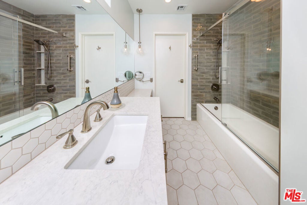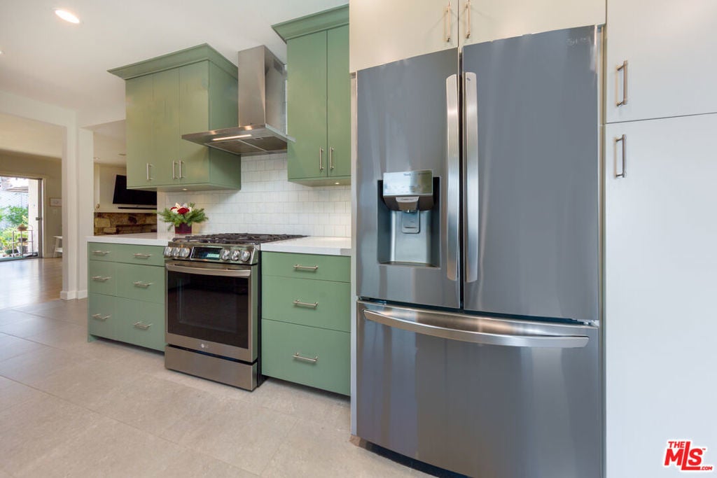 Charming curb appeal welcomes you home with a classic white picket fence, drought-tolerant landscaping, and colorful flowering plants in the heart of the vibrant Valley Village/Valley Glen community. A formal entry opens to an expansive living and dining room combination, anchored by a cozy fireplace perfect for both everyday living and entertaining. The newer kitchen features updated (2022) forest green cabinetry, all-new hi-end stainless steel appliances (incl. LG Probake 5-burner stove and Kalamera wine fridge), and an open layout with an attached laundry room for added convenience. The home offers 3 bedrooms and 2 baths, including a serene primary suite with a beautifully remodeled bathroom completed in 2022, designed as a true hotel-like oasis w/gray-green subway tiles in shower/tub. The converted garage has been thoughtfully transformed into a studio with built-in cabinetry, ideal for a home office, playroom, or creative space, and can easily be converted back to a functional garage if desired. Drop-down ladder in hallway provides access to attic for storage. The beautifully laid-out backyard is perfect for relaxing or hosting, featuring a pergola, patio, a beloved orange tree, and water-wise landscaping with succulent plantings, flower beds and vegetable gardens. Located near Studio City and both canyons, Valley Glen/Valley Village is a vibrant hip community known for many Houses of Worship, kosher shopping and religious institutions, as well as great eateries, cafe's and ease of reaching downtown or the Westside, offering the perfect blend of neighborhood charm and urban convenience. SEE AGENT REMARKS FOR OFFER DEADLINE INFORMATION