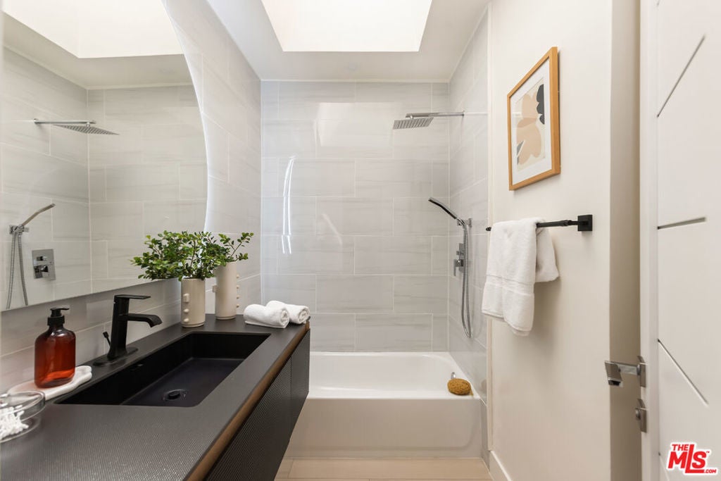 Come right in to this beautifully upgraded single-family home in North Hollywood! Spanning 1,650 square feet, this charming residence features 3 bedrooms and 2 bathrooms. All through the house, you'll be captivated by the exquisite details, including stylish light fixtures, designer wood accent walls, and stunning marble countertops. Floors through out is upgraded with high quality 12mm elegant engineered wood flooring and recessed lighting. Step into the cozy living room, Gas burning and beautifully upgraded fireplace . The first bathroom, conveniently located in the hallway, showcases a modern design with a floating vanity and a skylight that fills the room with natural light. The primary bedroom includes two spacious closets and an ensuite bathroom for added convenience. The gourmet kitchen is a chef's dream, equipped with a 36-inch professional-grade stove, luxurious marble countertops, a large double panned water falls design island, and custom cabinetry. This area flows effortlessly into the open living and dining spaces, making it perfect for entertaining guests. The third bedroom, situated near the dining room, offers more privacy and flexibility as a potential home office. A well designed laundry room with windows for full convenience. The thoughtfully designed landscaping and hardscaping, Smooth Stucco finishes all through out the exterior, enhance the property s appeal, all framed by a secure perimeter gate that ensures privacy and safety. Additionally, a 2 car garage, detached , at the back presents an exciting opportunity for a fully permitted ADU conversion (approximately 566 sq. ft.), with paid plans available for a 1-bedroom, 1-bathroom unit. You have up to 18 months to complete the ADU. This is an option for the new owner to create generous income. This gorgeous house is move-in ready and ideally located close to the vibrant NoHo Arts District, a variety of shopping and dining options, and major freeways, making it a perfect blend of luxury living and future income potential. Truly one of a kind GEM in entire North Hollywood.