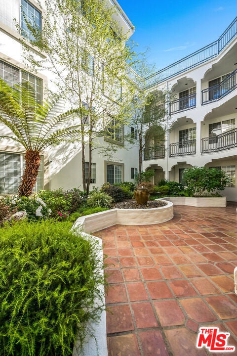 Contact LA1 for details. Enter the curb appeal-filled condominium building, surrounded by lush landscaping and a peaceful fountain. Through the formal entry, you'll be welcomed by high ceilings and an abundance of natural light. The home features hardwood floors, crown moldings, custom zebra shades, and blackout shades in the bedrooms. The living and dining areas are filled with light, and the kitchen includes granite countertops and in-unit laundry. There are two spacious bedrooms, each with upgraded bathrooms and plenty of storage. The primary bathroom has a double sink, bathtub, shower, and a walk-in closet. Central air and heat, as well as two parking spaces in the gated community garage, are included. The intimate, controlled-access building also has an elevator. Located just west of Century City and east of Westwood Village, this condo faces south, offering a fantastic location north of Santa Monica Blvd.