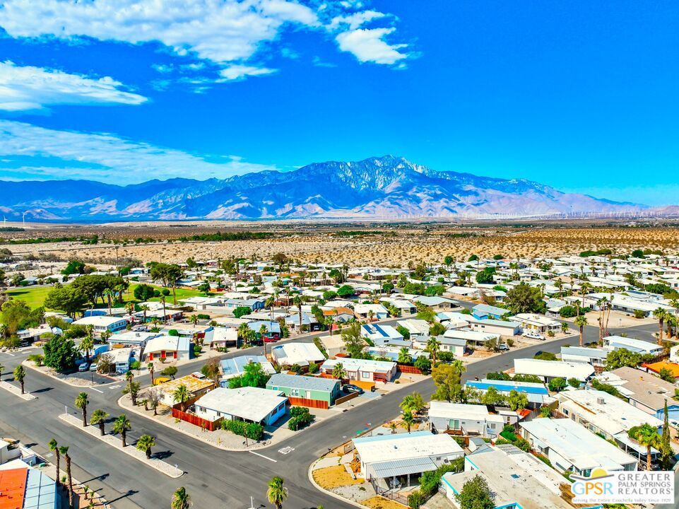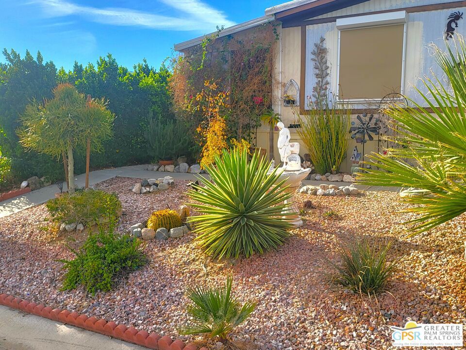 Settled within the very lively golf community of Desert Crest Country Club in a beautiful rural setting, this one of a kind Two Bedroom / Two Bath, REMODELED manufactured home that was built in 1979 offers a unique blend of comfort and convenience tailored for those seeking an active and vibrant 55+ lifestyle. Located in the North End of Desert Crest Country Club yet just around the corner from the huge Clubhouse, natural mineral spring water Pool & several Spas, and golf facilities that are free to the Owners, this home enjoys the perks of a lively existence, surrounded by the scenic beauty of the desert landscape in the Western Coachella Valley. The Desert Crest Country Club community boasts a 9-hole golf course, inviting residents to enjoy leisurely rounds amid the picturesque setting of pond and mature trees that boast views of Mounts San Jacinto and San Gorgonio and the iconic windmills of the Banning Pass. This oasis extends beyond the golf course, offering a multitude of amenities enhancing your daily life. Residents here enjoy a multi-faceted Clubhouse featuring a healthy mineral water Pool and Spas, providing a serene escape and a hub for plenty of social connections. Indoor Shuffleboard and other activities are a welcome diversion here at the Clubhouse, with many interior facilities to keep you moving. The onsite cafe caters to culinary cravings, the dog groomers attend to furry companions, and the real estate office ensures all needs are met with ease. These conveniences foster not just a residence but a sense of belonging within a home and community bound by shared experiences and vibrant camaraderie. This well-maintained home reveals some very private outdoor spaces, from the covered Southside Patio to the very private Rear Yard that is surrounded by 20 foot trees, giving you a true oasis. You come into an interior that includes new laminate flooring throughout. Two Bedrooms and two fully remodeled Baths offer both comfort and functionality, catering to the needs of daily living within the spacious interior. The Primary Bedroom stands as a serene haven, complete with a full-sized Closet. The ensuite Bath has been remodeled with a huge step-in Shower. Of special note are the NEW appliances in the open Kitchen, including a master sized modern Banquet Refrigerator. An extra Bonus enclosed Patio Room has easy access to the rest of the Home. You even have a large Shed tucked away to the rear of the property to handle your storage needs. Of special note are the many efficient heating and cooling additions to the Home, including two Split A/C's wall Units, and the Central HV/AC. The covered South patio makes an inviting space designed for relaxation and entertainment. The Rear Yard is an oasis of calm and serenity, and is a great place to enjoy all day. It's the ideal spot to revel in the beauty of the desert evenings, fostering moments of tranquility and social gatherings. The low-maintenance landscaping, fenced for privacy, ensures that upkeep remains effortless, allowing residents to focus on the joys of community living. The Carport is decidedly spacious enough for two vehicles and a Golf Cart. This home represents a harmonious blend of comfort, style, and functionality, creating a delightfully private haven within the heart of Desert Crest Country Club. Whether indulging in a round of golf, luxuriating in the mineral water pool, or simply savoring the serenity of the surroundings from your very private rear deck, this property offers a unique and fulfilling 55+ living experience, where every moment resonates with the essence of a life well-lived.