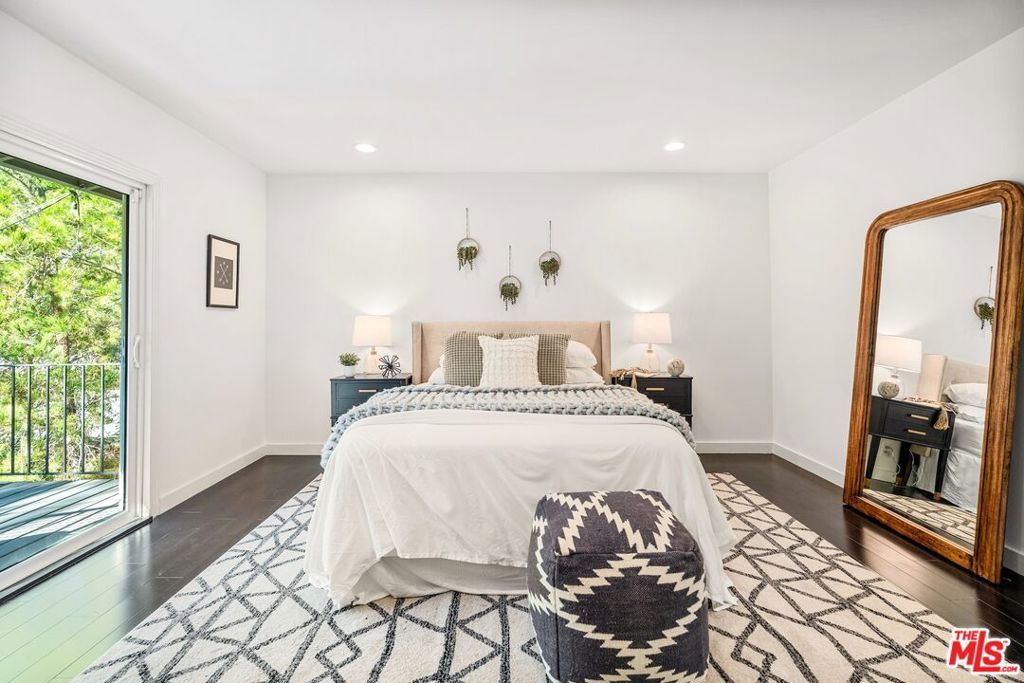 Your search for that perfect lower Nichols Canyon hideaway ends right here on Devista Drive where you will enjoy serene canyon views, great natural light and outdoor space for every time of day. Recently remodeled featuring 3 bedrooms (two with private balconies), 3 baths, a living and dining room that both open to the back patio, and a cook's kitchen designed for any level cook with ample counter space where you can easily entertain on any scale. Great storage and a direct entry garage. Designer details include high-end fixtures, custom cabinetry, French doors. Outdoor entertaining spaces include a large open patio surrounded by mature trees, a hot tub and custom gas fire-pit creating your own private oasis. Primary bedroom features a rolling barn door and picturesque balcony and a spa-like bathroom with dual sinks, soaking tub, and rainfall glass shower. This is quintessential Southern California living at its best you won't want to leave home. Close to Beverly Hills, Runyon Canyon, the Grove and World Famous Sunset Strip. A great opportunity for the most discerning Buyer looking for a mid-century home in one of L.A.'s most desirable enclaves.