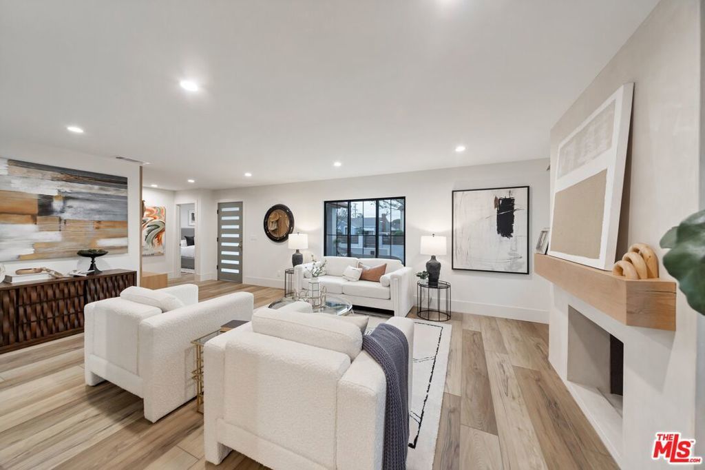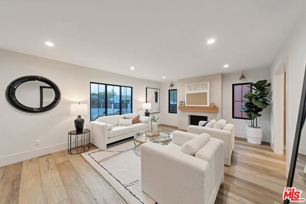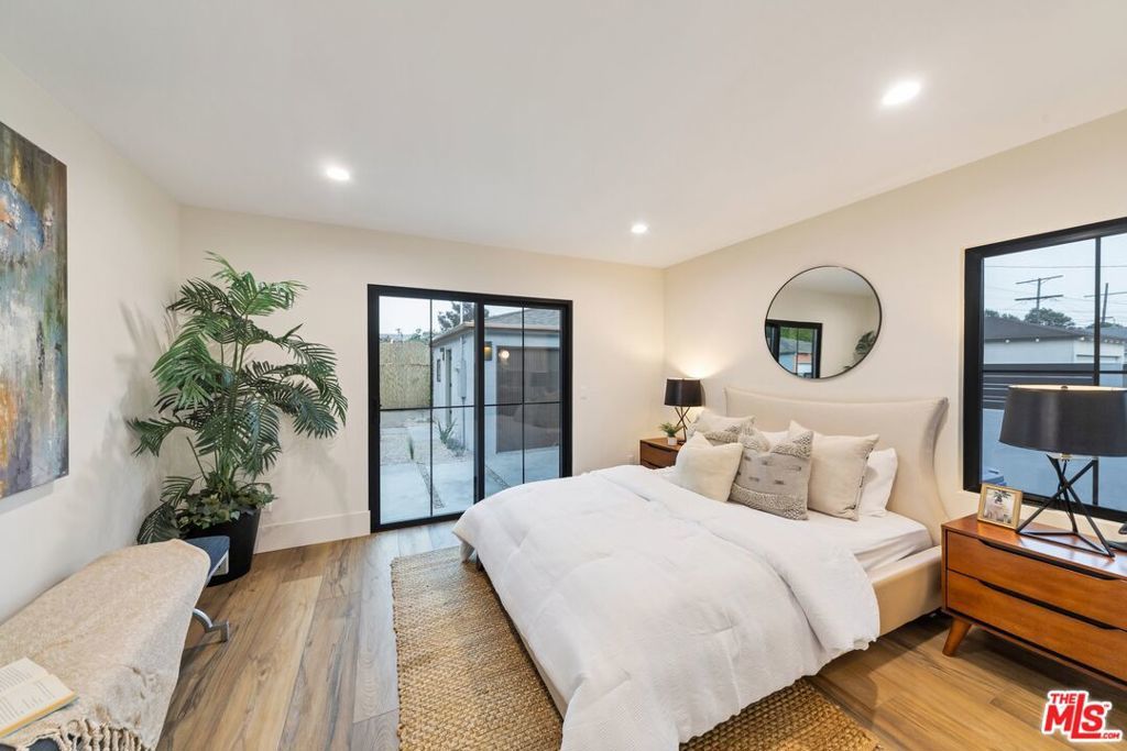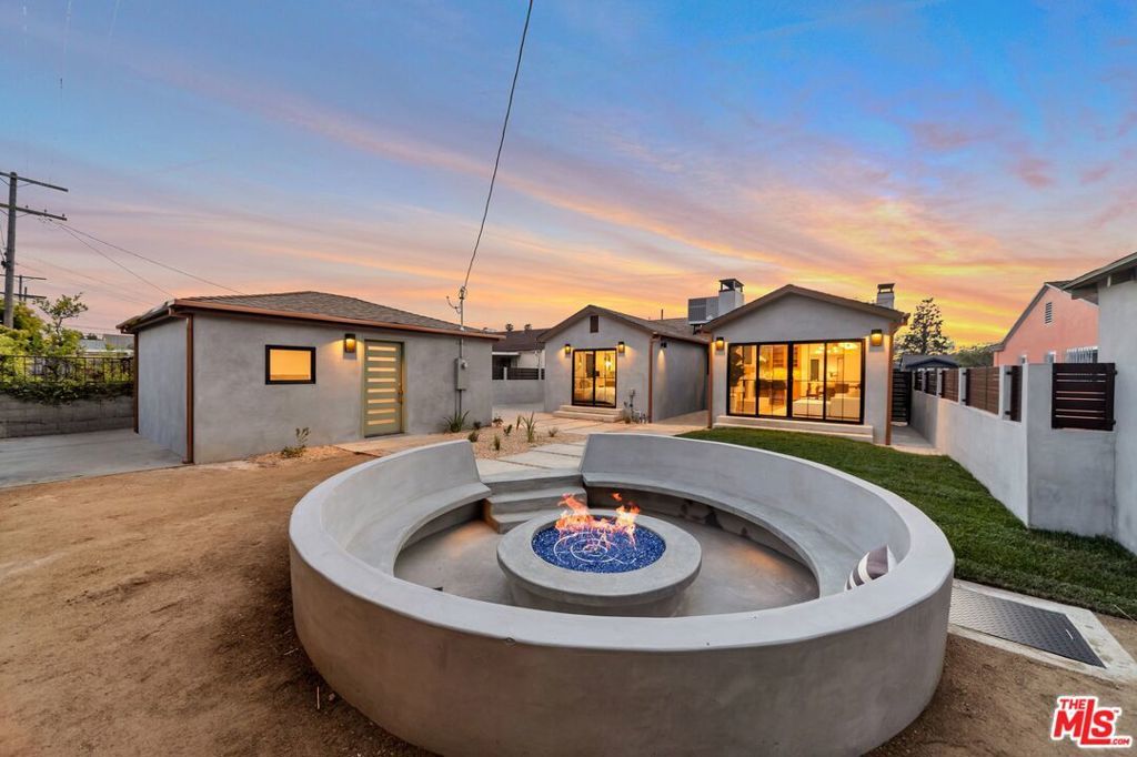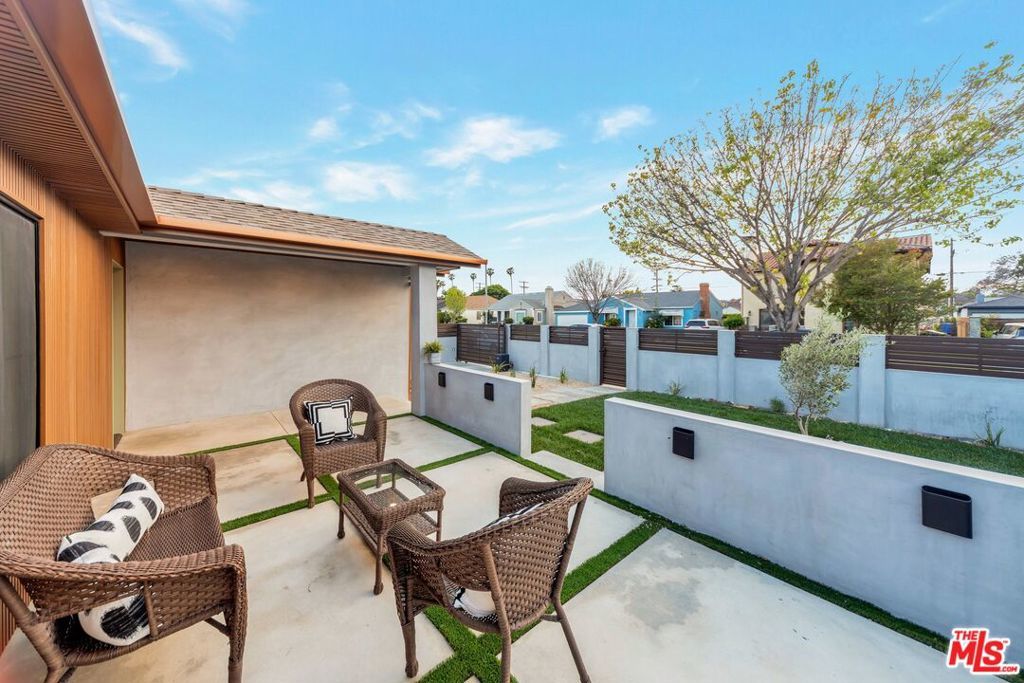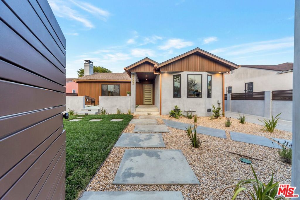 Welcome to this strikingly redesigned residence, where contemporary sophistication meets timeless mid-century charm. Thoughtful craftsmanship is evident from the moment you enter the custom entryway, which opens into a bright, airy living space defined by clean lines and abundant natural light. Newly vaulted ceilings create a dramatic sense of openness, seamlessly connecting the gourmet kitchen to the inviting great room, an entertainer's dream. The chef's kitchen showcases handcrafted white oak cabinetry with flush inset fronts, paired with natural quartzite countertops and a soft ceramic tile backsplash. Premium stainless-steel appliances with refined gold accents include a professional 6-burner range, pot filler, farmhouse sink, and a dedicated wine and beverage station. Subtle under-cabinet lighting and designer fixtures complete the space with warmth and polish. The dining area, anchored by a sleek Sputnik chandelier, flows effortlessly into the great room, where expansive sliding doors open to the outdoor living area for true indoor-outdoor enjoyment.The primary suite offers a serene retreat, featuring a spa-inspired bathroom with dual floating sinks and designer tile finishes, along with direct access from the bedroom to the private outdoor living space. The secondary bathroom is equally striking, designed as a modern wet room with dual sinks, a freestanding soaking tub, glass-enclosed shower, vertical designer tile, custom vanity, and warm brass fixtures creating a refined, spa-like atmosphere. All bedrooms feature custom cabinetry and refined finishes, with the front bedroom highlighted by a classic bay window overlooking the landscaped grounds. Every detail of the home from new plumbing, windows, and doors to the thoughtfully designed hardscape and lush plantings was selected for both beauty and longevity. Outdoors, a sunken fire pit framed by smooth stucco walls offers a stylish and private setting for relaxing or entertaining.Located in the heart of Leimert Park, this home offers the perfect balance of sanctuary and convenience, just minutes from Culver City's dining, shopping, and cultural destinations capturing the essence of modern Los Angeles living. 3 Bedrooms | 2 Bathrooms | Approx. 1,606 SF