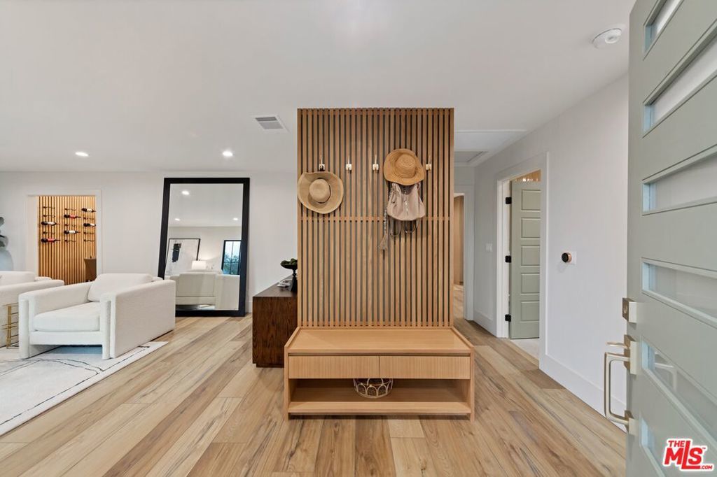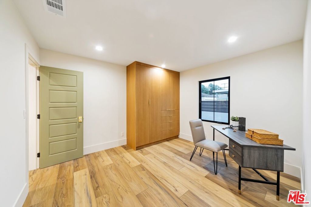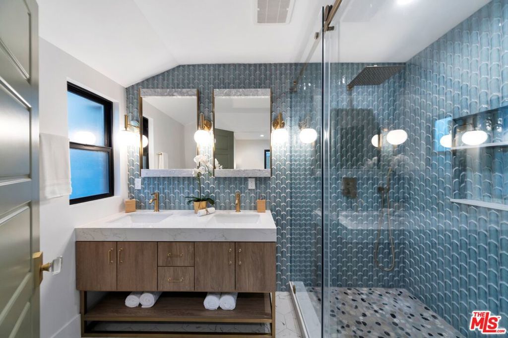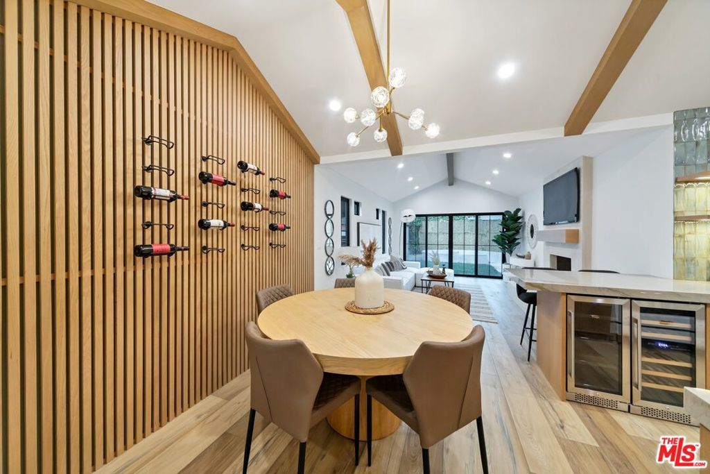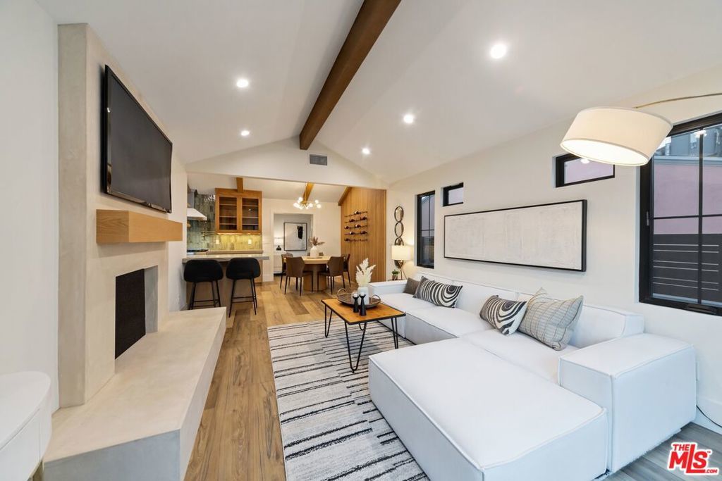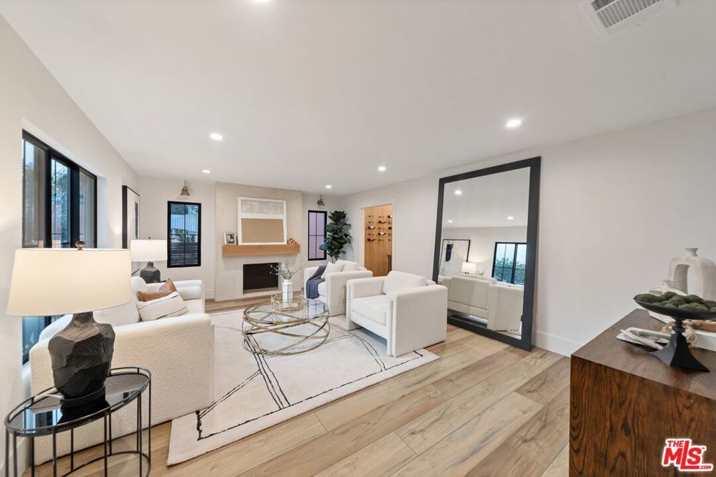Welcome to this strikingly redesigned residence, where contemporary sophistication meets timeless mid-century charm. Thoughtful craftsmanship is evident from the moment you enter the custom entryway, which opens into a bright, airy living space defined by clean lines and abundant natural light. Newly vaulted ceilings create a dramatic sense of openness, seamlessly connecting the gourmet kitchen to the inviting great room, an entertainer's dream. The chef's kitchen showcases handcrafted white oak cabinetry with flush inset fronts, paired with natural quartzite countertops and a soft ceramic tile backsplash. Premium stainless-steel appliances with refined gold accents include a professional 6-burner range, pot filler, farmhouse sink, and a dedicated wine and beverage station. Subtle under-cabinet lighting and designer fixtures complete the space with warmth and polish. The dining area, anchored by a sleek Sputnik chandelier, flows effortlessly into the great room, where expansive sliding doors open to the outdoor living area for true indoor-outdoor enjoyment.The primary suite offers a serene retreat, featuring a spa-inspired bathroom with dual floating sinks and designer tile finishes, along with direct access from the bedroom to the private outdoor living space. The secondary bathroom is equally striking, designed as a modern wet room with dual sinks, a freestanding soaking tub, glass-enclosed shower, vertical designer tile, custom vanity, and warm brass fixtures creating a refined, spa-like atmosphere. All bedrooms feature custom cabinetry and refined finishes, with the front bedroom highlighted by a classic bay window overlooking the landscaped grounds. Every detail of the home from new plumbing, windows, and doors to the thoughtfully designed hardscape and lush plantings was selected for both beauty and longevity. Outdoors, a sunken fire pit framed by smooth stucco walls offers a stylish and private setting for relaxing or entertaining.Located in the heart of Leimert Park, this home offers the perfect balance of sanctuary and convenience, just minutes from Culver City's dining, shopping, and cultural destinations capturing the essence of modern Los Angeles living. 3 Bedrooms | 2 Bathrooms | Approx. 1,606 SF