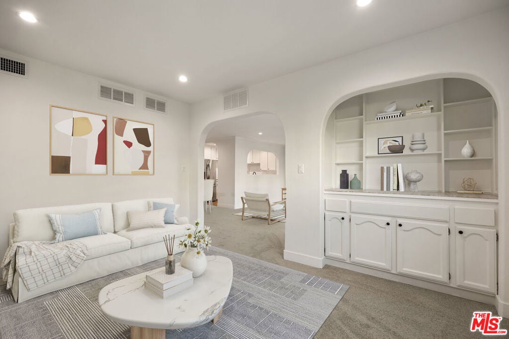 Welcome to this super plush, light-filled, and beautifully updated three-bedroom, two-bathroom home in the heart of Valley Village. With an open floorpan and thoughtfully designed living space, this unit strikes the perfect balance between comfort, style, and everyday practicality. From the moment you walk in, you'll notice the bright, airy feel and easy flow that makes this home feel instantly inviting. The spacious living area features a stunning wall of French doors that open to a private balcony overlooking the quieter side of the building along Huston Street, perfect for morning coffee, fresh air, or winding down at the end of the day. In addition to the living and dining areas, a versatile den with custom built-ins offers the ideal spot for a home office, reading nook, or media room. All three bedrooms are generously sized, and the updated bathrooms add a modern touch. The building offers a refreshing pool for warm Valley days, and shared laundry is conveniently located just steps from the unit. Two side-by-side parking spaces and ample storage are located in a secure garage. Set in a prime Valley Village location close to shops, dining, and studios, this home offers easy living with all the space you've been craving.