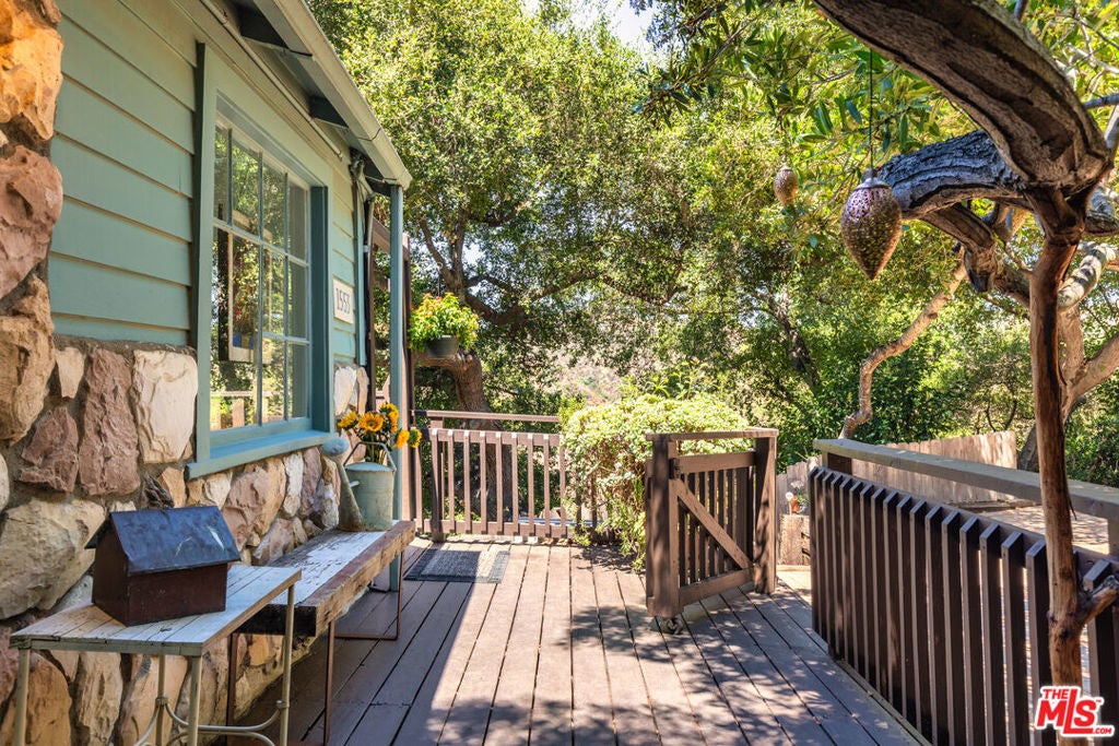 Welcome to your peaceful hideaway in the heart of Topanga. This 1925 storybook cottage, originally built as a hunter's cabin, has been lovingly transformed into a charming retreat nestled in the Santa Monica Mountains. This two-bedroom, one-bath home is move-in ready, featuring updated appliances and a warm, inviting ambiance. Step inside to an open kitchen with high-beam ceilings and a cozy living room anchored by a fireplace. The deck extends the living space outdoors, inviting you to immerse yourself in nature and take in the surrounding views. Birds, majestic oaks, and sun-kissed canyon hills are your closest neighbors. Downstairs, you'll find two cozy bedrooms and an updated bathroom with a soaking tub/shower. A storage shed on the property offers potential for an art studio, workshop, or private office. Additional highlights include fruit trees and an outdoor shower. Endless hiking trails and Topanga State Park are just moments away. Tucked into the private Sylvia Park neighborhood, yet only a short drive to the Valley or the PCH, this home offers the perfect balance of seclusion and convenience. Move right in or continue its success as a dream rental income opportunity. Two Assessor Parcel Numbers: 4442-016-037 & 047