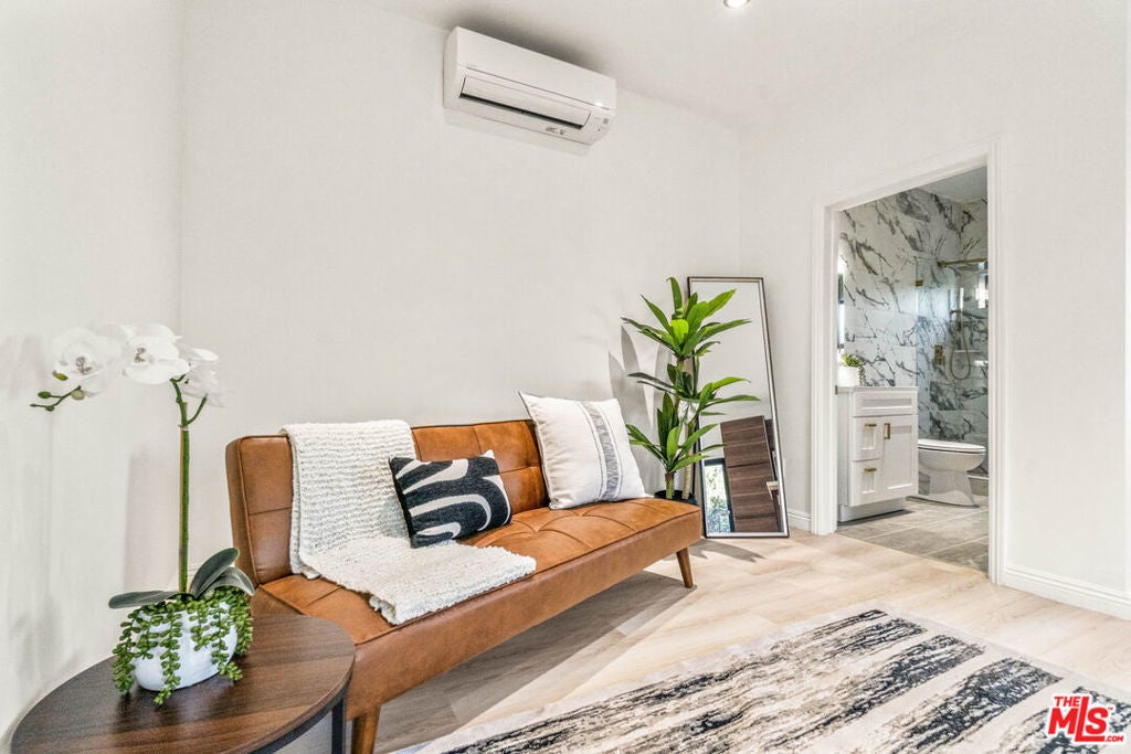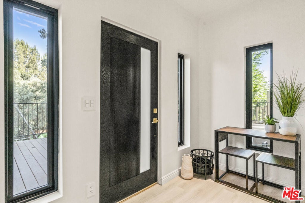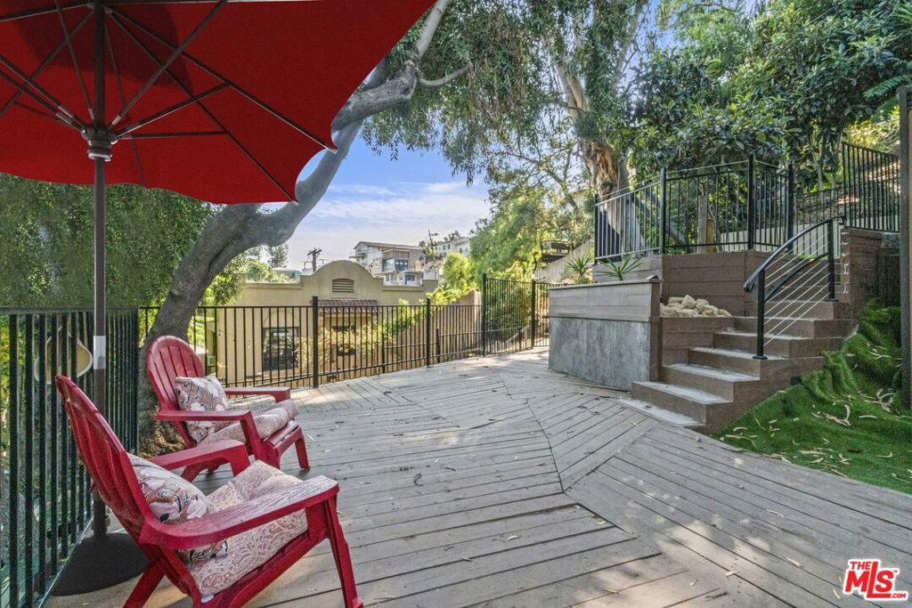 Discover 2315 and 2315 1/2 Loma Vista Place: An urban oasis nestled among treetops on a historic stair street in the vibrant, artistic enclave of Silver Lake. Built in 2024, this brand-new, two-bedroom, two-bath single-family residence radiates contemporary style in a natural setting. The first level welcomes you with an entryway leading to an open-concept living room that boasts a custom kitchen. This kitchen is equipped with modern appliances and features a stunning Calacatta Gold Quartz island that seats four. Completing the first floor is a full bathroom and sliding glass doors that open to a wraparound deck, perfect for embracing indoor-outdoor living. Upstairs, you'll find an additional den space, two bedrooms, and a luxurious bathroom with a porcelain tile shower adorned with sleek gold finishes, offering a perfect fusion of style and functionality. The location provides a rare tranquil setting among treetops, with views of the San Gabriel Mountains. The private wraparound deck is an ideal space for outdoor dining, gardening, and socializing, epitomizing the California lifestyle. An attached studio ADU, with a full bath and its own address, adds versatility. Whether used for rental income or as a dedicated home office, this space also includes its own garden area and a balcony that frames breathtaking panoramas of Silver Lake and downtown Los Angeles. Situated on a serene stair street, this residence is perfect for those who value privacy, nature, and an active lifestyle. It beautifully marries sophisticated design with practical living, right in the heart of Silver Lake, one of the most sought out neighborhoods in all of Los Angeles. Only street parking, the property is located on the historic stair street.