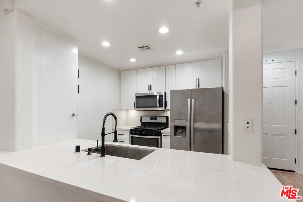 Renovated, bright, and airy two bedroom, two bath condo with no neighbors below, located in the heart of Playa Vista. This stunning, exterior-facing residence offers serene, tree-lined views and exceptional privacy. The spacious open concept living area features wide plank light flooring, a modern fireplace, and a large balcony with turf, seamlessly flowing into the dining area. The fully remodeled kitchen is equipped with stainless steel appliances, quartz countertops and ample cabinetry, ideal for cooking and entertaining. The spacious primary suite is a true retreat, complete with an en suite bathroom featuring dual sinks. Additional highlights include a guest bedroom, new in-unit washer and dryer, two designated parking spaces, custom closets and window treatments, recessed lighting, modern light fixtures, a Nest thermostat, a smart lock with keypad entry, and so much more. All of this is situated in a highly desirable Playa Vista location, offering easy access to The CenterPointe Club, The Resort, and the shopping and dining at Runway.