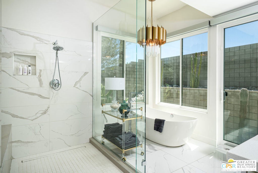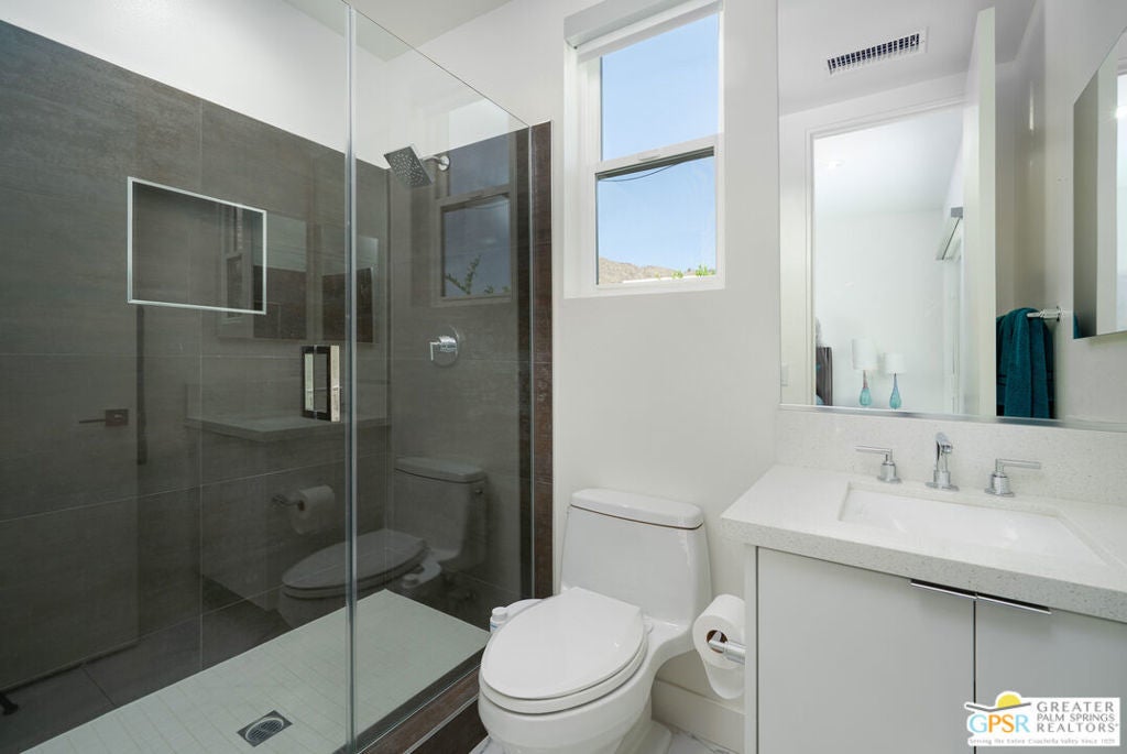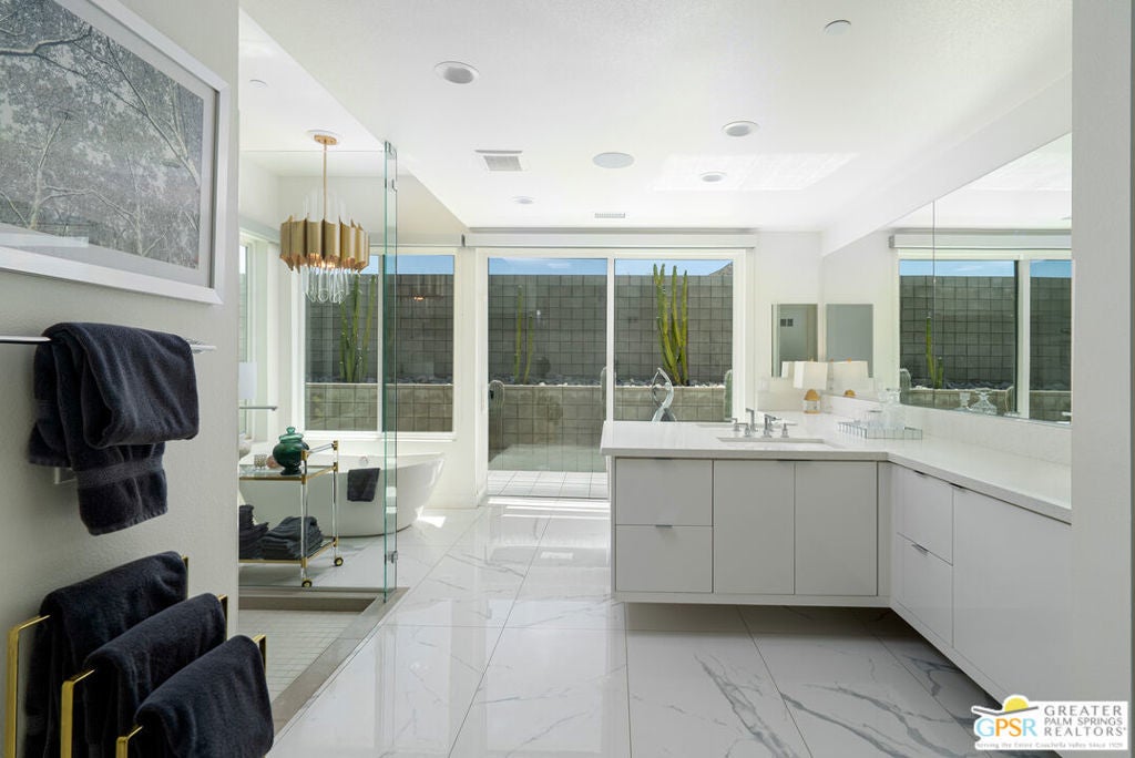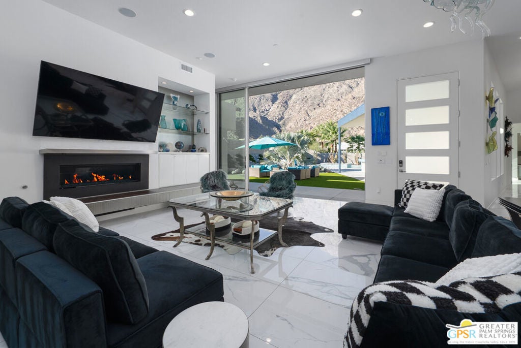 HOME + EV CAR Combo! Enjoy this Luxury Modern home in downtown Palm Springs located in the Skye community within the Historic Tennis Club neighborhood with a Model 3 TESLA Included. Built in 2018, this home sits on one of the LARGEST lots with over 16,000 square feet and with over 3400 square feet of living space. This 4 bed and 4.5 bath home provides many areas for relaxation, meditation, entertainment and ease of daily living. Arguably one of the best floor plans, stunning up-close mountain views can be seen from almost the entire home! Oriented strategically, the front western facing pool utilizes the best features of Palm Springs, the Mountain and the Sun! The master bedroom, Living room, Dining Room, kitchen and Media Room all face outdoors. The 12-foot ceilings and 12-foot stack sliders allow the boundaries between indoors and outdoors to merge. The master suite has direct pool and mountain views! Interior and exterior shades provide complete control over privacy and light. The ensuite bath is truly a spa-like experience. Dual water-closets, vanities and sinks allow for complete personalization of one's "getting ready space". The large glass-surround shower and extra-deep stand-alone tub offer choice. Don't forget the outdoor shower just off the side patio. The master closet is enormous! The gourmet kitchen includes perhaps the largest quartz kitchen island seen, double-ovens, generous preparation space, gas cooktop & hood and large walk-in pantry. The adjacent dining room allows for more formal eating occasions while the bar-counter and outdoor counter provide more intimate and fun settings. The fourth ensuite bedroom can be used as an office, lounge, media room or home gym. Private enjoyment of the outdoors is paramount in Palm Springs. Desert palms, cacti and agaves provide an envious, luxurious curb appeal while offering an intimate, private oasis inside the walls. Beautiful landscaping surrounds the home on all sides. Take an outdoor shower year round. Walk ways connect multiple seating areas around the entire home. Swim, splash, soak or drift in the pool and spa with complete privacy. The front yard is THE place to be! Facing west, the mountains appear close enough to touch. During the day, lounge half-in and half-out of the water one of the two pool tanning shelves. For evening, the outdoor Barbeque area includes a gas grill, griddle, two preparation sinks, beverage center and large countertop with bar-top seating. Turn on the gas fire pit and enjoy company or solitude while enjoying the night sky or gazing at the mountain. The elevated spa waters trickle down peacefully into the pool adding to the relaxing ambience. Inside the pool, take a break from swimming or just cool off while having a beverage on the six built-in underwater seats. This luxury home also includes a 3-CAR garage, garage AC, hanging garage storage racks, tankless water heater, home automation, electrified blinds, outdoor BBQ area with counter seating, multiple outdoor destination areas and is close to downtown Palm Springs and a few streets away from the north Lykken hiking trail.