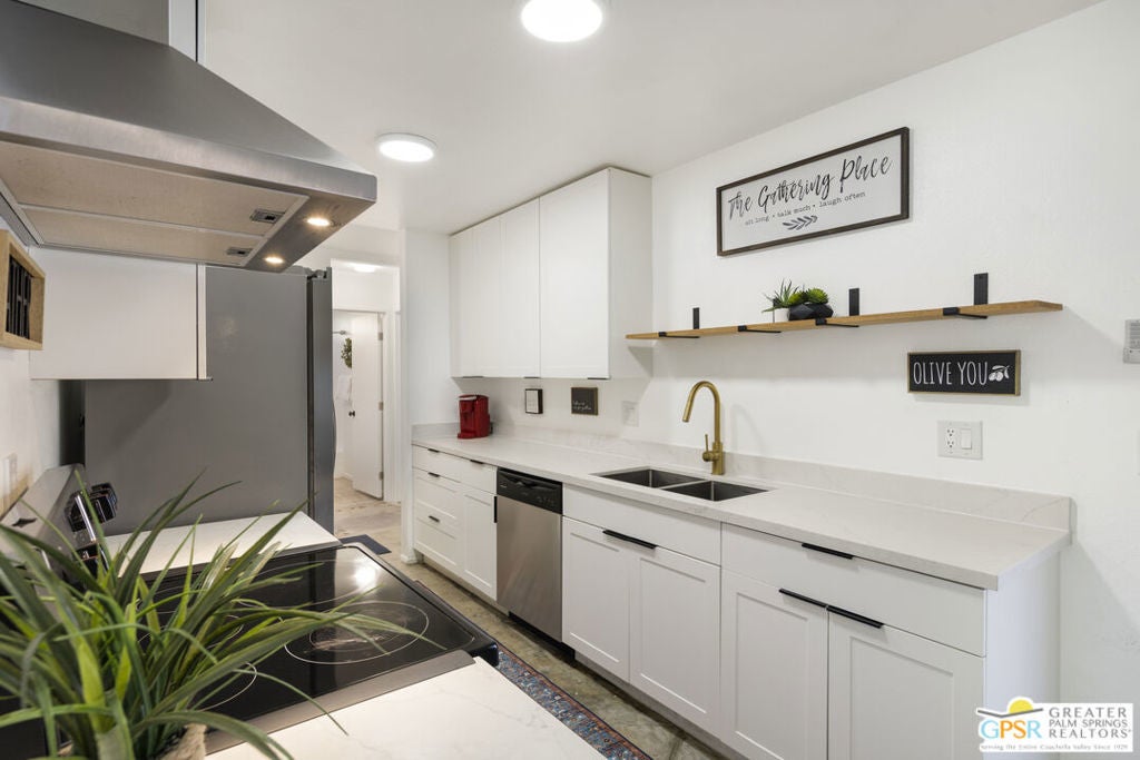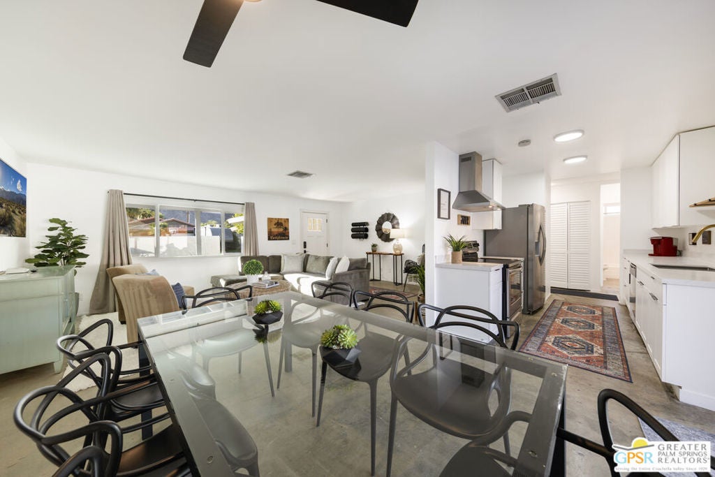 Enjoy relaxed desert living in this beautifully updated 3-bedroom, 2-bath pool and spa home located on a quiet street in the highly sought-after La Quinta Cove, surrounded by breathtaking Santa Rosa Mountain views. With thoughtful upgrades, inviting outdoor spaces, and a layout designed for indoor-outdoor living, this home offers the perfect desert retreat.Inside, the open and functional floor plan is filled with natural light and enhanced by new windows throughout, allowing the mountain views and sunshine to shine in. Fresh interior paint and additional updates add a clean, move-in-ready feel. The living area flows seamlessly into the dining space and renovated kitchen, while the dining area opens directly to the backyard, making entertaining and everyday living effortless. The primary suite offers a comfortable private retreat with an updated ensuite bath including a new vanity and tile, while two additional bright guest bedrooms provide flexibility for guests, family, or a home office. One guest bedroom features direct access to the backyard, creating a wonderful connection to the outdoor space. Step outside to your private backyard oasis featuring a sparkling pool and spa at the same level, ideal for relaxing or hosting gatherings year-round. A covered patio offers shaded outdoor living and dining, perfect for enjoying desert mornings and evenings. Mature landscaping and mountain views create a serene and private setting. At the front of the home, a walled-in front patio provides an additional outdoor retreat with mountain views, ideal for morning coffee or sunset relaxation. Additional highlights include a two-car garage, new windows, ample storage, additional thoughtful updates and a prime location just minutes from Old Town La Quinta, scenic hiking and biking trails, shopping, dining, and world-class golf and tennis. Ideal as a full-time residence, vacation getaway, or investment opportunity, don't miss this wonderful home.