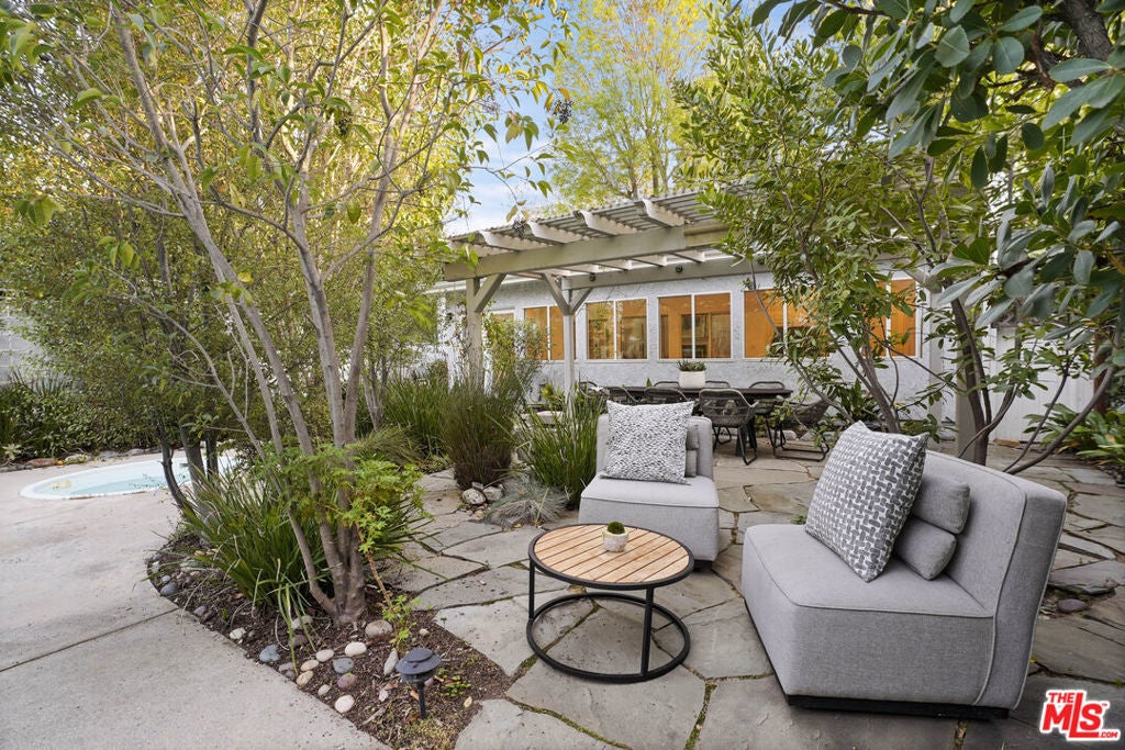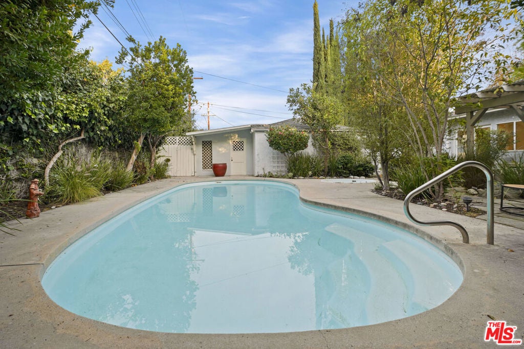 Style, form and function come together beautifully in this 1930s California Traditional sited in the most sought after neighborhood in Valley Village: An idyllic, vibrant tree lined community and wonderful place to call home! With an expansive circular drive and a lush fusion of floral and greenery, the home's exterior offers wonderful curb appeal and bids a warm welcome. Inside, the light-filled flexible floorplan provides gracious transition from room to room with a unique symmetry of classic period details with the design and amenities ideally suited for today's contemporary lifestyle. Beautiful detailed moldings, warm refinished wood floors, dual fireplaces, brick, beadboard and wainscoting all contribute to a serene sense of home. The crisp bright kitchen features a convenient breakfast nook. The dining room lends itself ideally to formal and informal friend and family gatherings. Baths feature fine lighting, fixtures and finishes. From the vaulted, skylit family room and bonus room, glass atrium doors bring the outdoors in and give way to an idyllic, relaxing backyard oasis replete with stone terrace, fountain, pergola and expansive pool and spa. The ideal venue for the coveted California lifestyle of relaxed al fresco leisure. Four bedrooms with three baths round out the comfortable accommodations. Highlights include dual HVAC, recessed lights, speaker system, and detached, 2-car garage with bonus room! Located on a picturesque, tree lined street in the award winning Colfax Charter School District (ranked 9th best charter school in California!) and just moments from beloved Valley Village Park, NBC, CBS, Disney, Warner Bros. and Universal Studios, and the famed NoHo Arts District. Welcome!