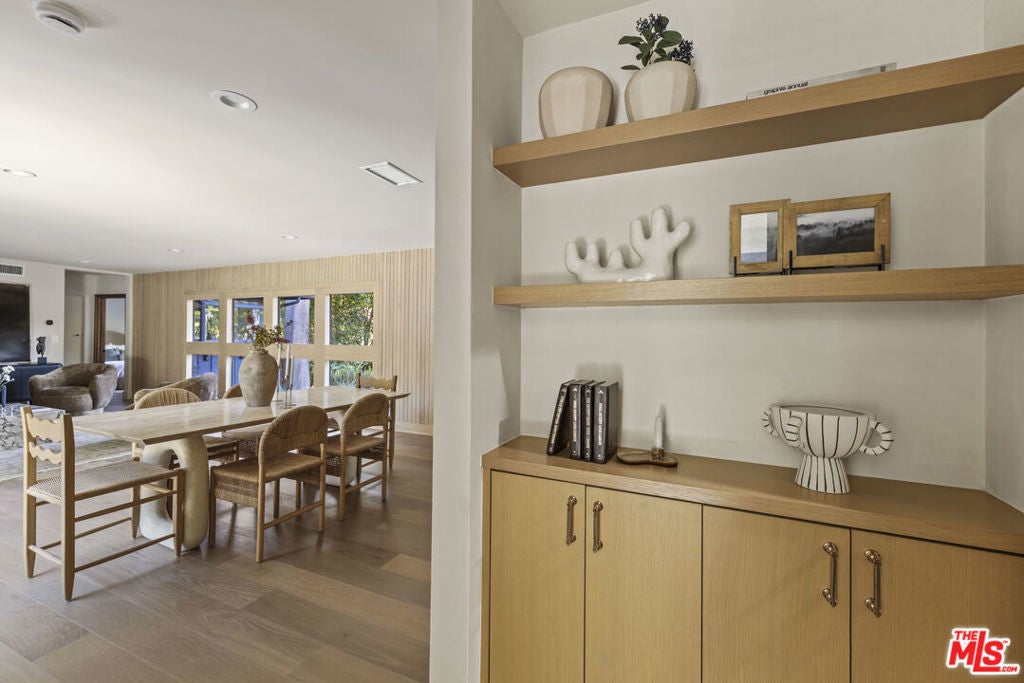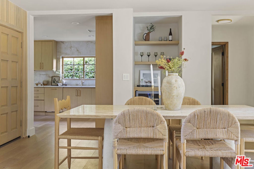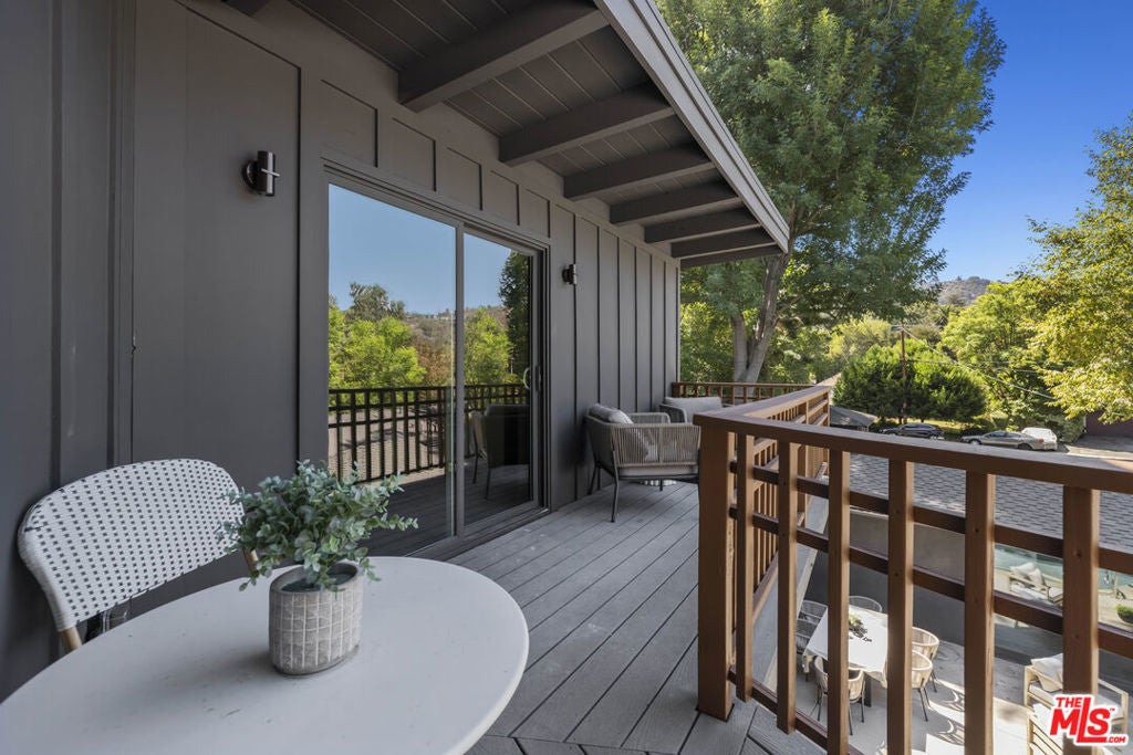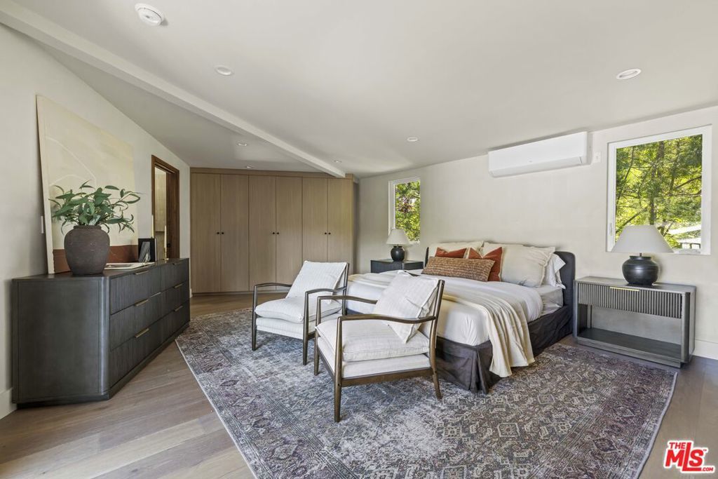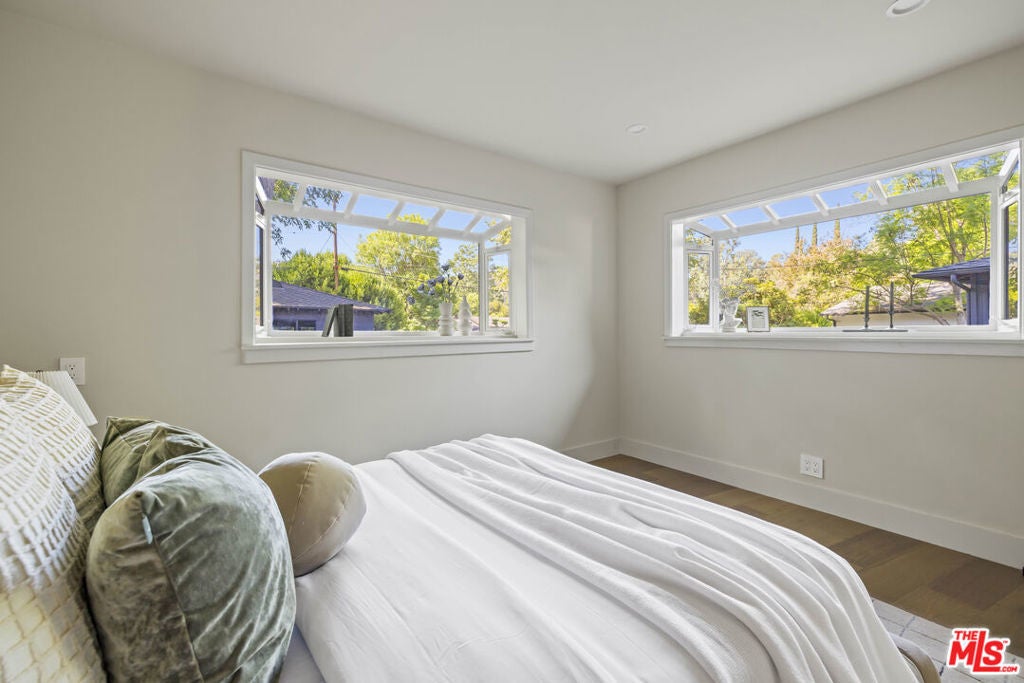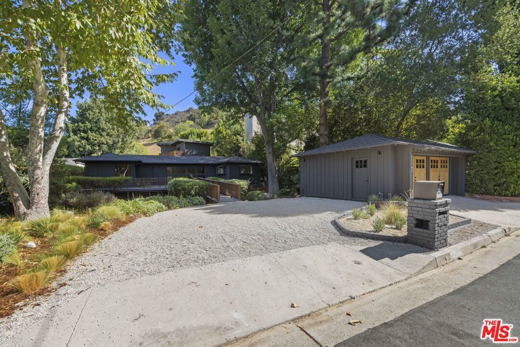 Step into your own private sanctuary in the highly sought-after Carpenter School District! This beautifully remodeled 4-bedroom, 3-bathroom home features an additional 1-bedroom, 1-bathroom guest house and a finished garage flex space, perfect as a gym, office, or creative studio. From the moment you arrive, the property sets a magical tone, surrounded by serene gardens and towering trees. You'll cross a charming little bridge to reach the front doors, where the home's character begins to unfold. Inside, every detail has been thoughtfully designed. Lime-washed walls create a timeless, organic feel, complemented by engineered hardwood floors throughout. The living room features stunning floor-to-ceiling windows that flood the space with natural light, creating an airy, uplifting atmosphere. The chef's kitchen boasts custom cabinetry and marble counters, with a charming breakfast nook tucked in the corner. Each bedroom has been meticulously designed, with none sharing walls, offering ultimate privacy for everyone in the family. The luxurious primary suite includes a private patio overlooking the gardens, a beautiful custom vanity, a soaker tub, and an oversized walk-in shower. The guest house offers a spacious living room with a cozy fireplace, plus a separate bedroom complete with a walk-in closet and full bath - ideal for visitors, extended family, or a private home office. Outdoors, the thoughtfully landscaped grounds provide a completely private retreat, ideal for relaxation or entertaining. Located just minutes from Sportsmen's Lodge and all the best shops and restaurants along Ventura Boulevard, this home perfectly blends an idyllic private sanctuary with unmatched convenience.