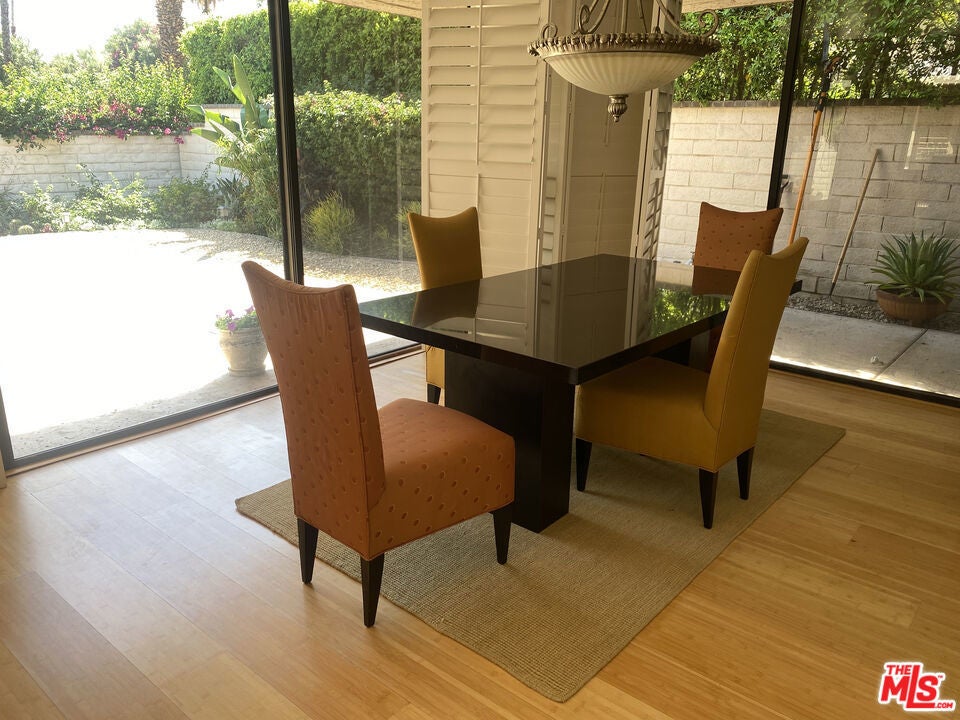 Fully furnished, ready to move in. Spacious four bedroom- four bath Pebble Beach plan in one of the premier Rancho Mirage golf resorts. The home is unique in that it has two large private yards that include five fan palms with views of others nearby. There is an orange tree and substantial hedges in the rear yard including a spa-spool. A gardeners dream with lush landscaping. Directly across is a palm grove with views of the golf course and lakes. The homes southern exposure provides warm sun from dawn to dusk during the cooler months and less direct sun in the summer. It is one of the most private homes in the resort. The interior has been upgraded with black granite tile, custom cabinets and bamboo flooring and has a very contemporary design. The former fourth bedroom has been transformed into a den and office. The Springs Country Club boast world-class amenities including golf, tennis, pickleball, bocci ball, bicycling, community pools and a high end fitness center. The Springs has a stunning clubhouse and because of its size (817 homes) a vibrant social community. It provides a true high-end desert resort lifestyle. The facilities, including the golf course were recently upgraded. The Springs is in a prime location located within minutes are restaurants and entertainment venues, El Paseo shopping, the Annenburg estate, Eisenhower Regional Medical Facility and the new Disney Contino Resort now under construction.