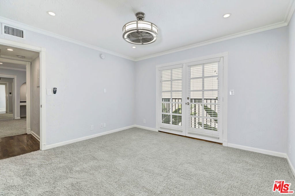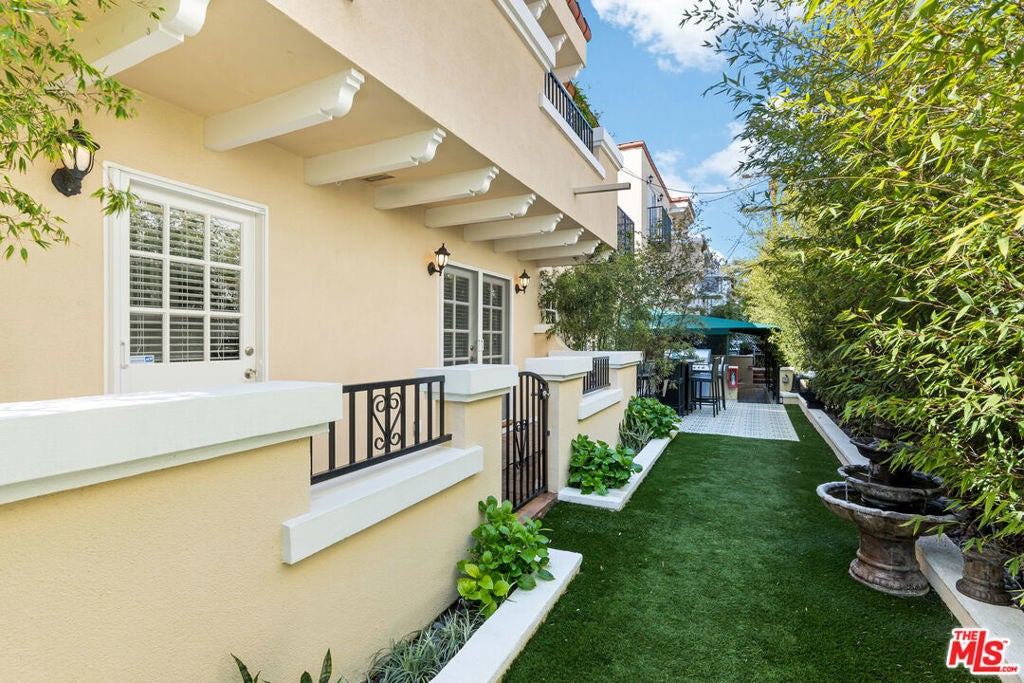 This 3-bedroom, 2-bathroom light & bright lower unit truly feels like a home + it's steps from the trendy Melrose Place/Melrose Avenue for great shopping, eating & the Sunday farmer's market! Gated entry, lush courtyard, Spanish charm with a modern flare leads you to what feels like a home with an open flow to the living room, dining area & kitchen. Private patio area from the kitchen & primary suite. Hardwood floors in the entertaining areas, LED recess lights, central AC, alarm system, window treatments, custom closets & more (currently light grey carpet in bedrooms NOT the color in pictures)! Gourmet kitchen with stainless steel appliances, stackable in-unit washer/dryer + 2 tandem parking spots (1 inside garage & 1 outside of garage.) French doors in the living room & primary with retractable screens. Community barbecue, fire-pit & outdoor dining area in the back of the building. 3-building complex surrounded by tranquil fountains, trees & manicured grass + easy to reach property manager. Truly one-of-a-kind building! Come Check It Out!