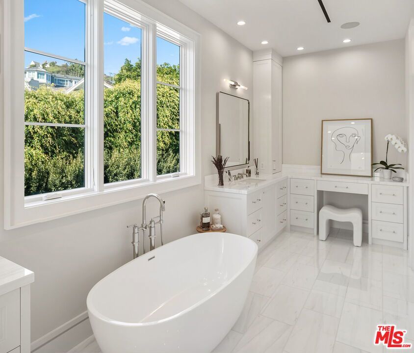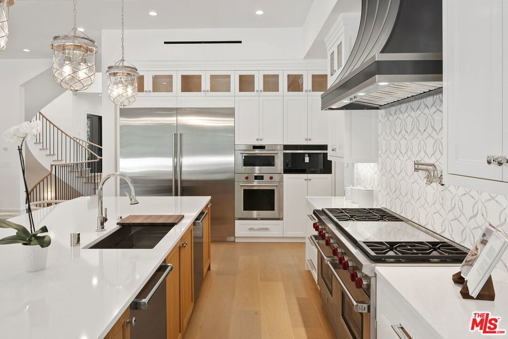 Brand new Hamptons-style Traditional home located in the prestigious Upper Riviera, one of the Westside's most coveted addresses. Spanning approximately 7,850+/- sq. ft. , this residence offers 6 bedrooms inclusive of a main floor guest suite with sitting room and kitchenette. The home is designed with the finest finishes, combining timeless elegance with modern conveniences. The entry leads to a floating staircase, and opens to a grand living room and formal dining room area. There is also an office/study with floor-to-ceiling walnut cabinetry. The gourmet kitchen features a full Subzero/Wolf suite of appliances, oversized island, butler's pantry, and a large walk-in pantry. The kitchen opens to a breakfast area and spacious family room with oak built-in cabinetry, and expansive La Cantina glass doors leading to the backyard. The home is finished with white oak floors throughout, a multiple-zone HVAC system, and full smart wiring adaptable to any owner's needs. There is a Lutron lighting system, security system with multiple cameras, and Waterworks fixtures throughout. The upper level has a primary bedroom with fireplace, balcony, and spa-like marble bathroom featuring dual vanities, makeup area, oversized dual shower with multiple sprayers, two separate water closets both with Toto Washlet toilets, and a spacious walk-in closet. Three additional en-suite bedrooms with walk-in closets complete this level. The lower level is designed for entertaining with a state-of-the-art theater, large great room with bar, wine room, gym, guest/maid's suite, and abundant storage. An elevator services all three floors. Mature landscaping ensures privacy while the salt-water pool, spa, and outdoor BBQ create a relaxing retreat. Additional amenities include a full three-car garage with two EV chargers. A rare offering in the Riviera, this special home blends traditional craftsmanship with contemporary luxury in one of Los Angeles' most exclusive and quiet neighborhoods, providing a distinctive haven of tranquility.