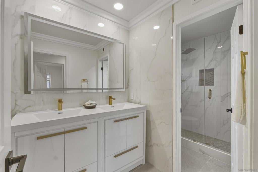 Nestled along the picturesque Twin Oaks Valley Golf Course, this fully renovated home offers unobstructed fairway and mountain views from nearly every main living space. Thoughtfully redesigned with modern luxury in mind, the residence showcases golf course and mountain view from the primary suite, spa-inspired primary bath, gourmet kitchen, family room, living room, and dining area—creating a seamless indoor-outdoor living experience. The fifth bedroom which shows in public record is currently used as a second-floor loft. The refreshed kitchen features white cabinetry, natural stone countertops, designer fixtures, and GE Profile appliances, flowing effortlessly into expansive living and entertaining spaces. The primary suite serves as a private retreat with stunning views and a beautifully upgraded ensuite bath. Additional highlights include new engineered wood and decorative tile flooring, fully remodeled bathrooms, contemporary lighting, fresh interior finishes, and refined details throughout. 3D tour: https://my.matterport.com/show/?m=KAnzSy8qwJv&mls=1 Located in one of San Marcos’ most desirable golf course communities, this move-in-ready home offers scenic tranquility while remaining close to schools, shopping, dining, and major freeways—an exceptional opportunity to enjoy luxury living with breathtaking views.