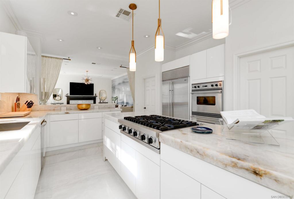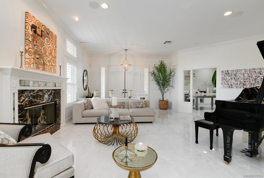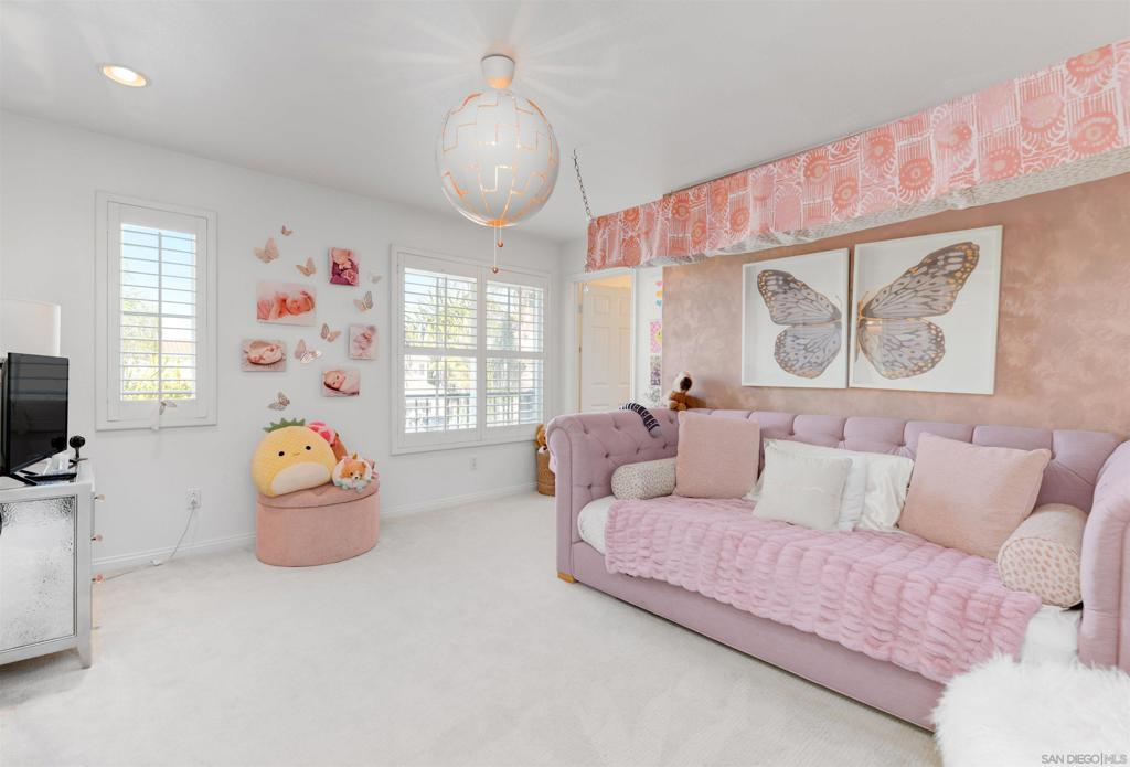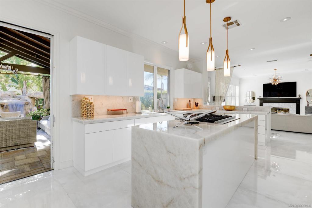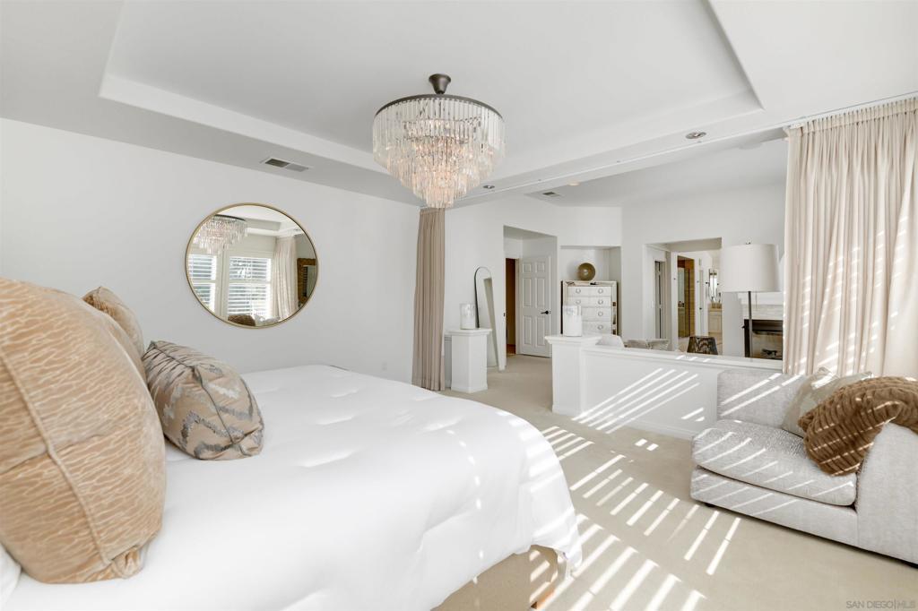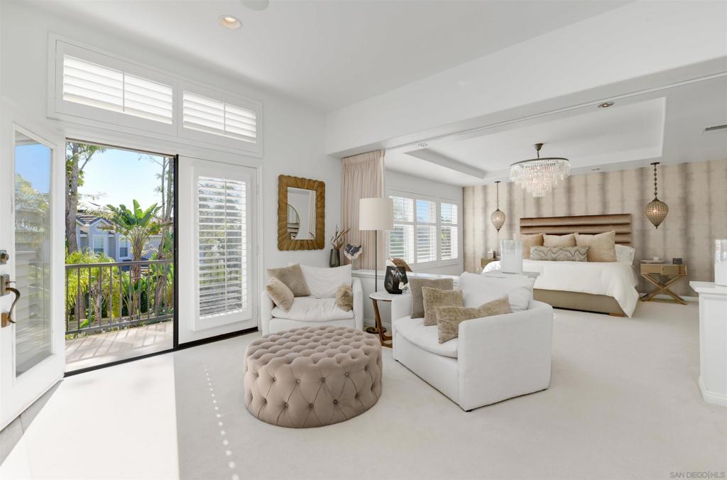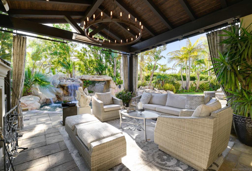 Stunning Lexington Plan 3, largest plan in this Carmel Valley neighborhood w/ SOLAR / 2 EV Chargers. Quiet cul-de-sac 2 blocks from top-rated Sage Canyon Elementary. 7BR/6BA w/ canyon views, resort-style pool/spa/waterslide/waterfalls/Baja shelf, w/ seamless indoor-outdoor living, Cantina doors to covered patio, heaters, BBQ, TV & fridge. Remodeled kitchen w/ Cristallo stone, Viking/Subzero appliances. Restoration Hardware lighting. Smart Savant system with built-in speakers, and soundproof music room/office. Tucked away on a quiet cul-de-sac in the heart of Carmel Valley, this exceptional Lexington Plan 3 residence offers the largest floor plan in the neighborhood and an unbeatable location just two blocks from top-rated Sage Canyon Elementary. With seven bedrooms and six baths, the home blends scale, comfort, and thoughtful design, all framed by tranquil canyon views and a setting ideal for families seeking award-winning schools and a true sense of community. Designed for both everyday living and entertaining, the home opens to a private resort-style backyard featuring a stunning pool and spa with waterslide, cascading rock waterfalls, and a Baja shelf. Cantina doors from the remodeled kitchen create seamless indoor-outdoor living, leading to a covered patio complete with heaters, built-in BBQ, and refrigerator. The chef’s kitchen showcases Cristallo stone, a Viking range with double ovens, Sub-Zero refrigerator, Restoration Hardware lighting, and premium finishes. Modern conveniences include a Savant smart home system with built-in speakers, EV chargers, Solar, water purification and softening systems, central A/C, and a soundproof music room or private office—making this a rare Carmel Valley offering where luxury, technology, and lifestyle come together effortlessly.
