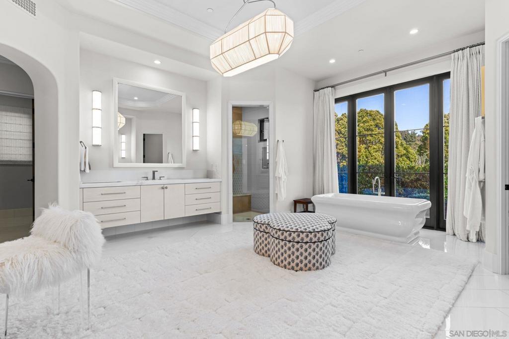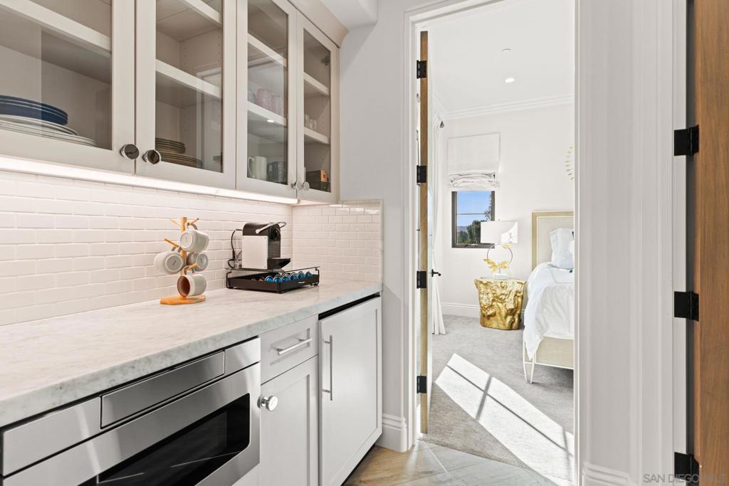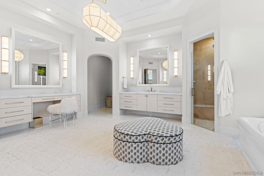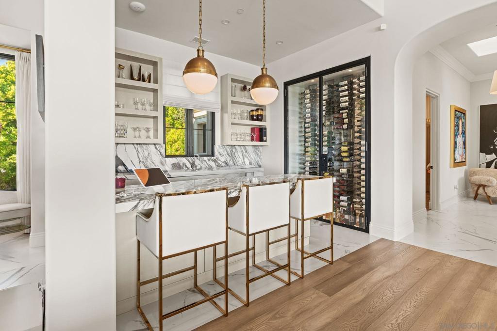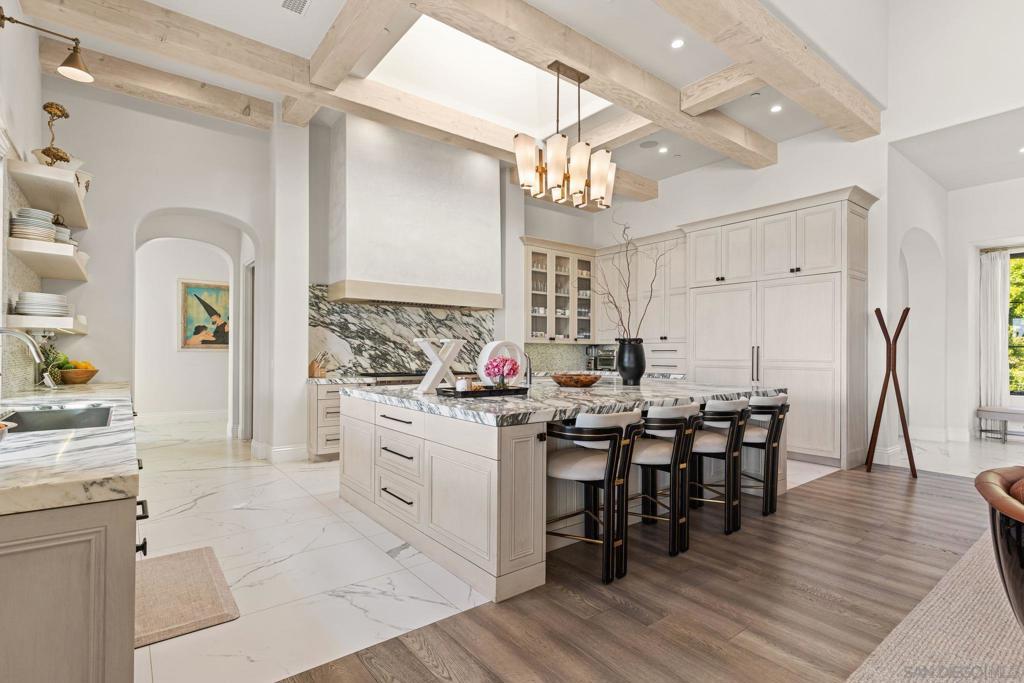 Step out of your home and onto your own private golf course at Querencia at El Camino, set on 4.62 acres in the highly sought-after West Side Covenant of Rancho Santa Fe. This approx. 8,000 sq. ft. estate offers privacy, space, and stunning southwest views. The backyard has been transformed into a golfer’s dream with multiple tee locations and two full-sized greens, ideal for practicing shots up to 110 yards while enjoying unobstructed Covenant scenery. Designed for single-level living, the main home features six en-suite bedrooms, plus a detached 1-bedroom, 1-bath casita with kitchenette and separate service quarters with a full kitchen. A gated, winding driveway leads to the home, creating a private and welcoming arrival. Inside, the expansive great room includes a 40-foot retractable glass wall for seamless indoor-outdoor living. Additional highlights include gallery-style hallways, a steel front door, private office or library, wet bar with wine storage, and a spacious primary suite with dual walk-in closets and a private patio with jacuzzi. The gourmet kitchen features an oversized waterfall marble island, high-end appliances, coffee bar, and cantina windows opening to the outdoor kitchen. Outdoor spaces include a sunken fire pit, outdoor fireplace, and BBQ bar—perfect for entertaining. Nearly 5 acres offer room for additional amenities, with permitted plans for an extra garage. Minutes from Del Mar beaches, shopping, dining, and equestrian trails.