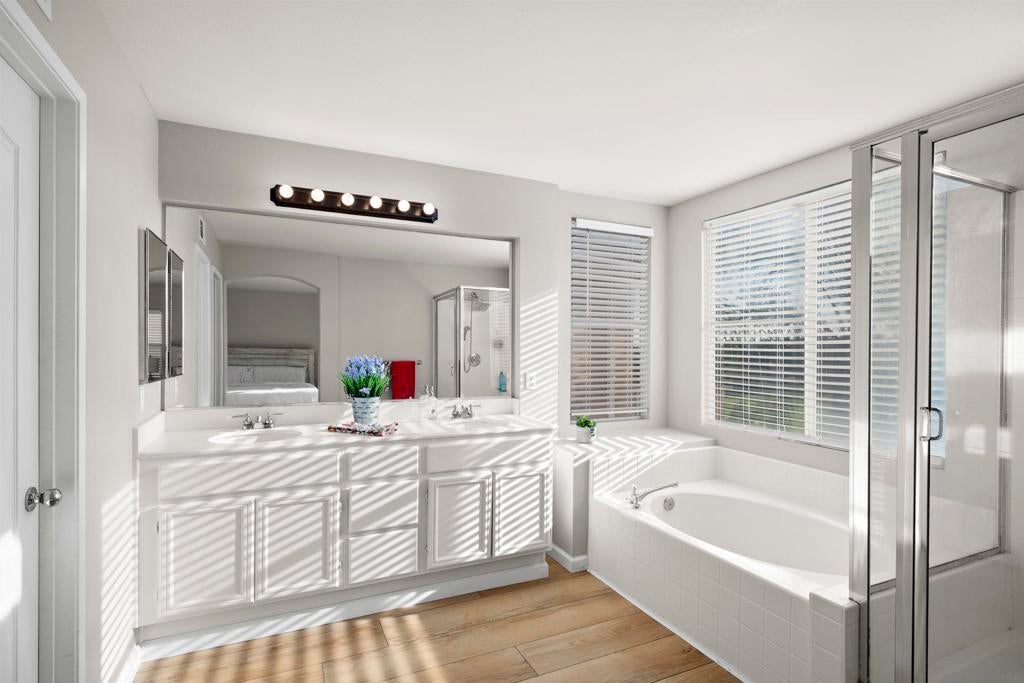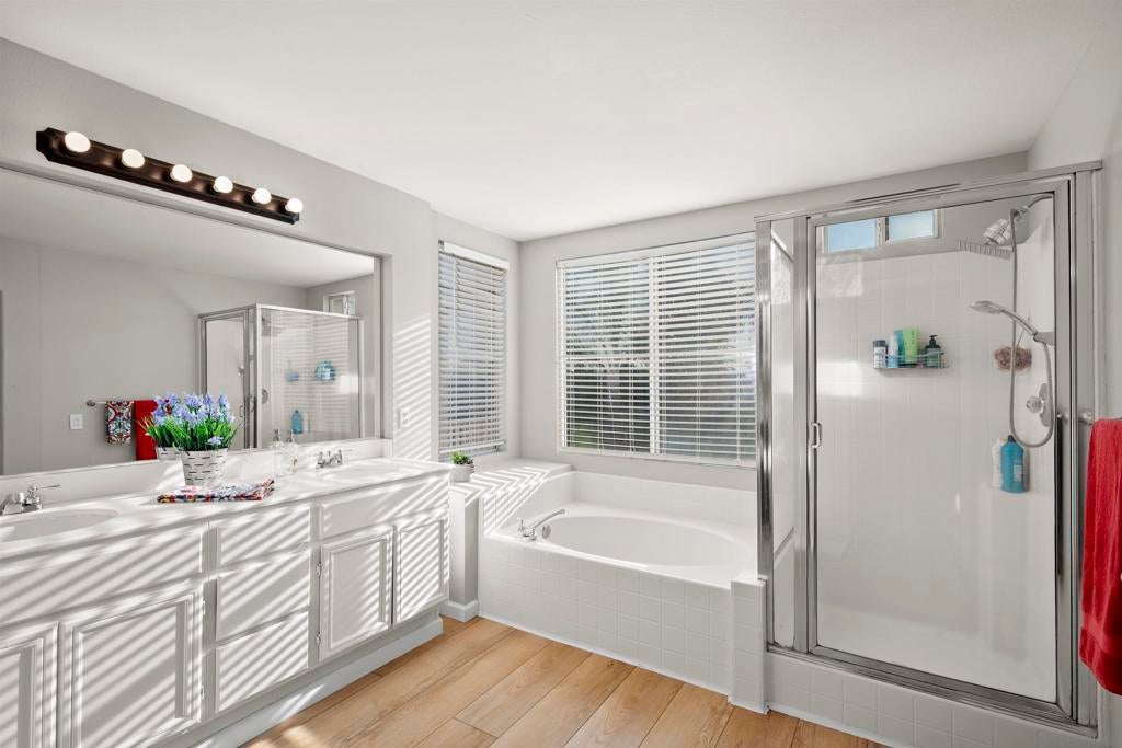 Live on the Golf Course with Views forever. Beautiful 4 bedroom detached La Vida home located in the gated Eastlake Greens. Private setting with no neighbors behind! immaculate, Light, bright, and airy throughout, Open floor plan. Spacious primary suite includes a large view balcony—perfect for enjoying sunrise and sunset views over the golf course. Recently painted with new carpet throughout. Low HOA and no Mello-Roos! Community amenities include 3 pools, tennis courts, and parks. Truly a gem!! Upgrades in supplement. Upgrades 1220 La Vida: New kitchen countertops, backsplash, appliances, and cabinet hardware, new vinyl flooring upstairs and downstairs, new blinds in all rooms, shutters downstairs, and a new sliding door. Additional improvements include artificial turf and white stones in the backyard, a new downstairs ceiling fan, all new toilets, and new light switches and ceiling lights in all bedrooms (excluding the primary suite).