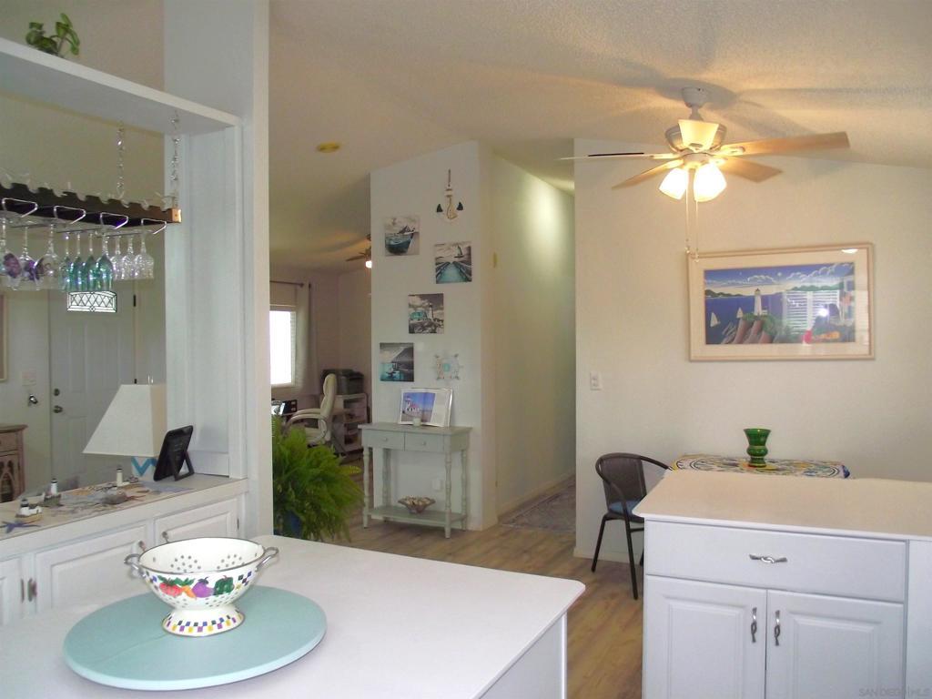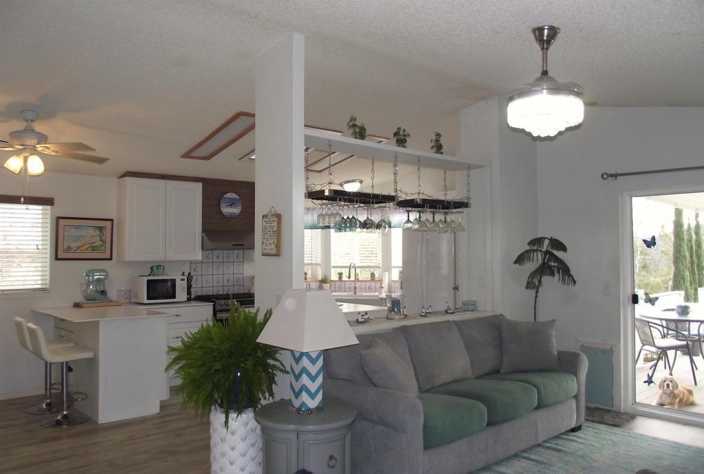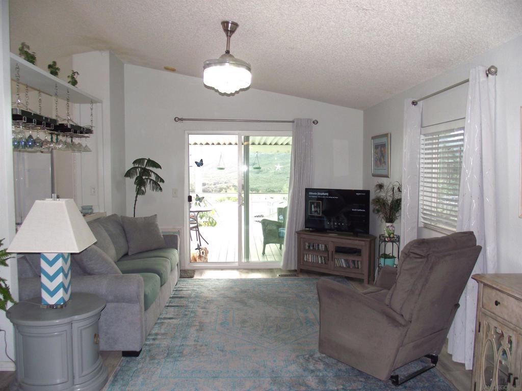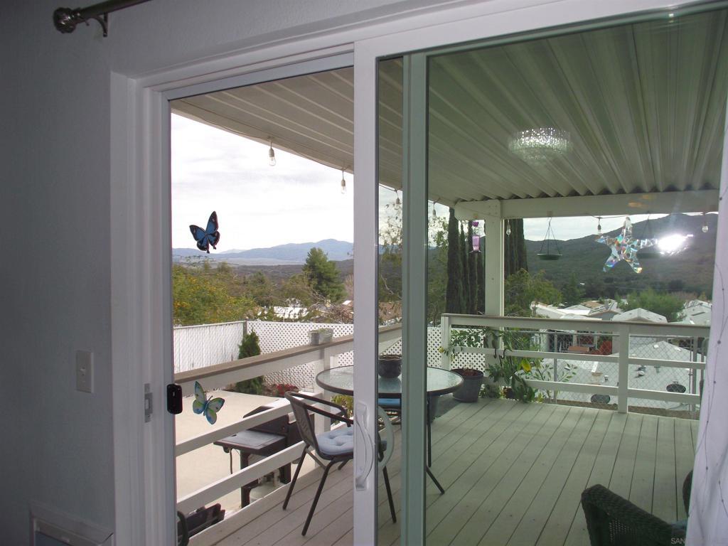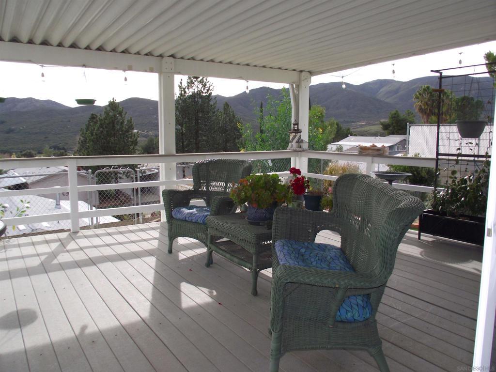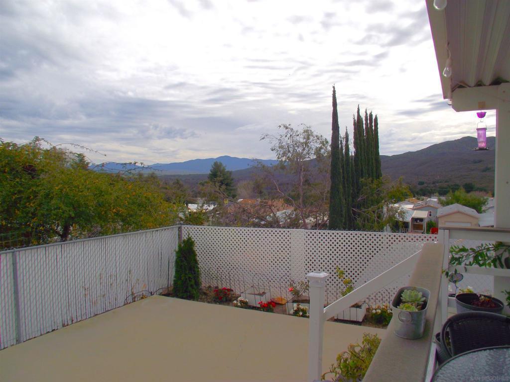 HIGHLY DESIRABLE WITH BEAUTIFUL VIEWS SUNRISE TO SUNSET FROM A SPACIOUS COVERED DECK. DISCOVER THIS COZY PROPERTY IN A 55+, LAND OWNED, RETIREMENT COMMUNITY. STONE RIDGE is nestled in the high desert area of NE San Diego County near several boutique wineries and a popular Glider Airport. This move-in-ready home offers comfy living, with unique details in the fully remodeled Kitchen, featuring ample storage with new white cabinets, a generous pantry, large island, farmhouse sink, a hanging rack for crystal stemware, and a soft-close "hidden trash drawer". New appliances include a 5-burner gas range, 3-door counter-depth refrigerator, and wine cooler, as well as a washer & dryer in the separate laundry room. Additionally, find new laminate flooring, with plush carpeting in the bedrooms. Also there are new window coverings and ceiling fans/lights. The water heater was replaced in 2022, and a new roof and A/C were installed in 2023. Enjoy a fully fenced yard with nice garden areas, and a sprinkler system covering front and rear yards. Find plenty of space for growing herbs, veggies, and fruit trees. Tomatoes & strawberries seem to especially love it here. There is a nice garden shed/workshop/storage room separate from the oversized, 1-car garage. Also, a concrete patio is perfect for a hot-tub & enjoying the clear star filled nights...away from city lights. This community is pet friendly, with hiking & walking trails nearby, where you will pass friendly neighbors walking their dogs.