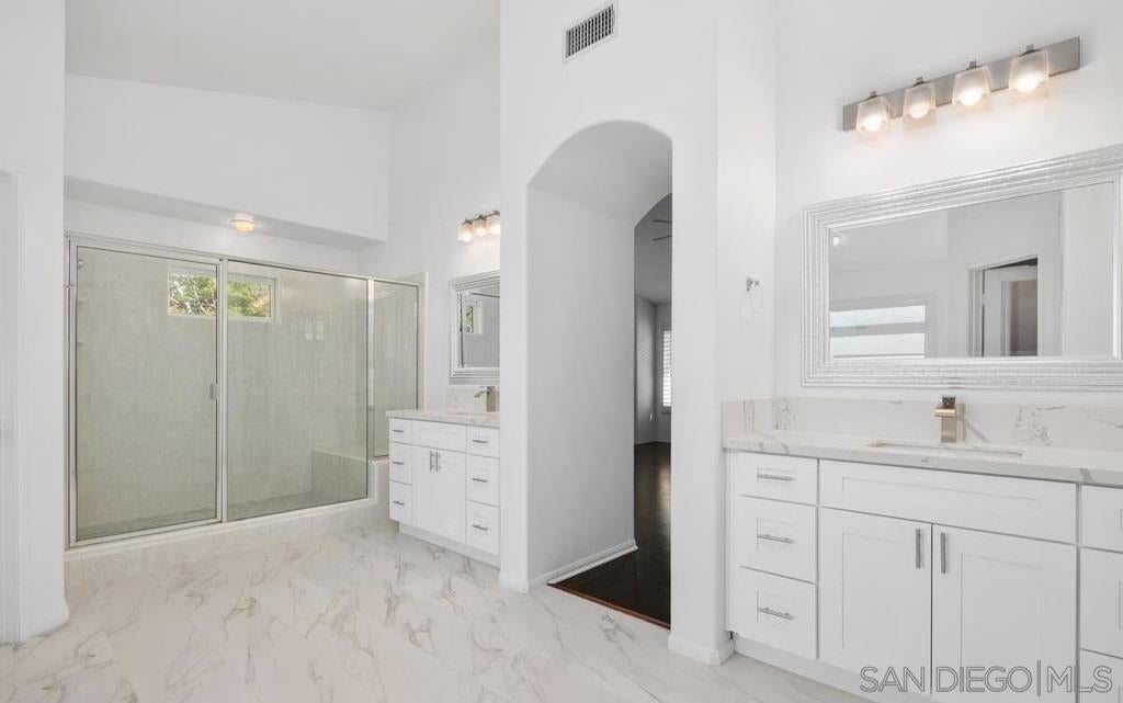 This Gorgeous Encinitas Ranch home features an Exceptional floor plan. Living room with fireplace, large kitchen island, spacious family room, full size laundry room & 1/2 bath down stairs. Upstairs is a Grand Primary Suite. One of the 4 bedrooms is a beautiful custom built office/study area and bedrooms 2&3 share a large common bath. Outdoors you will enjoy a Tranquil Zen Style back yard with spectacular water fall, fountain & beautiful stairway to a relaxing garden sitting area perched above the water fall. See below supplement for more info. The home is pre-wired for 5 surveillance cameras. Whole home music in home and back yard. The 2 car direct access garage is equipped with EV Charger. Truly an exceptional home at a great value!