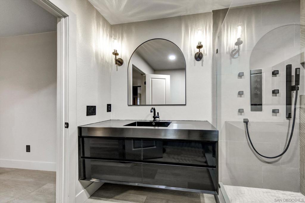 Welcome to this stunning, fully renovated 3-bedroom, 2-bath jewel, perfectly perched along the crest of Mt. Helix in one of La Mesa’s most sought-after neighborhoods. From the moment you arrive, you'll feel the warmth and sophistication of a home designed to impress and built for modern living. Step inside to an open-concept layout that flows seamlessly through every space, combining elegance and comfort in perfect harmony. Every inch of the interior has been meticulously updated — from the pristine new flooring and designer fixtures to custom mirrored accents that elevate the ambiance. The chef’s kitchen is a true showstopper, featuring premium appliances, sleek custom cabinetry, and luxurious quartz countertops — the perfect space for both entertaining and everyday living. Retreat to your private master suite, a serene spa-inspired escape complete with state-of-the-art bidet toilets, stunning stone finishes, and frameless glass panels that exude modern sophistication. Outside, enjoy the expansive driveway with room for multiple vehicles or RV parking, and a custom modern fence that marries contemporary style with privacy — beautifully accented by solar lighting and thoughtful landscaping. The spacious backyard is a blank canvas ready for your personalized outdoor oasis. This home truly has it all — refined design, premium upgrades, and a location that embodies the best of Mt. Helix living. Come see it for yourself — because photos simply can’t capture the full experience. Your forever home awaits!
