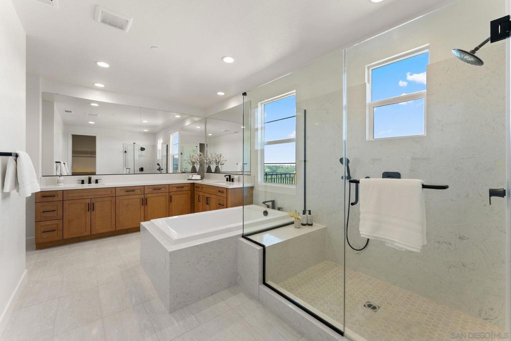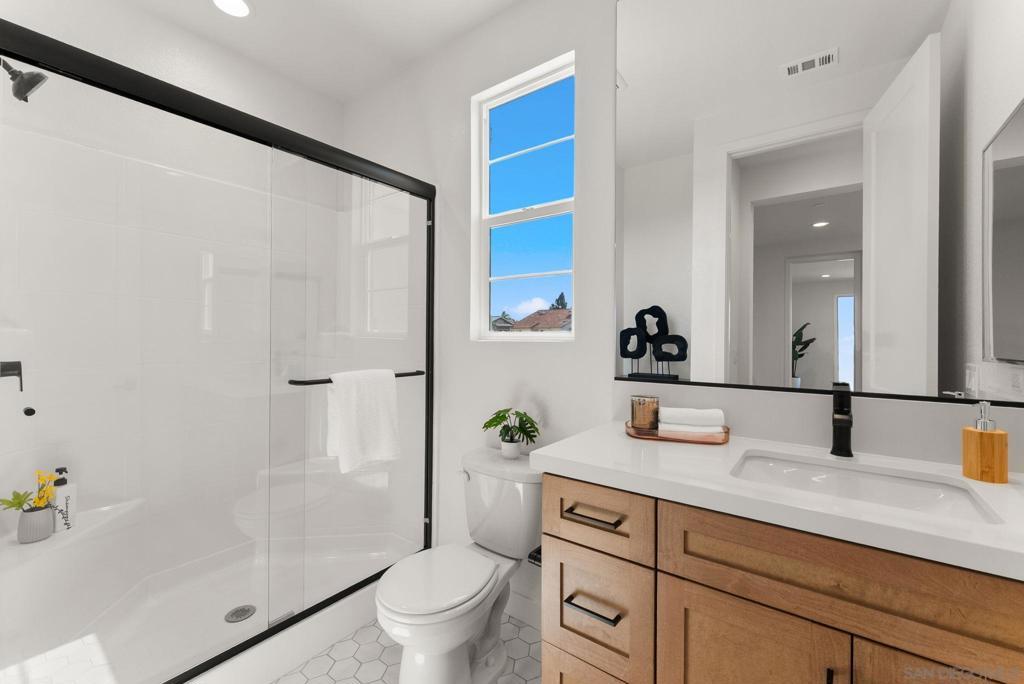 Lot 3 – New Construction Home in Sorrento Mesa. Welcome to Tierra Alta, an intimate 8-home cul-de-sac community offering spectacular views of Los Peñasquitos Canyon Preserve. This 3,183 sq. ft. detached home (Plan 3) blends modern design with functional living spaces. 5 bedrooms, 4.5 baths, loft, a tech room, and a 3-car attached bay garage; a move-in ready home designed for comfort and convenience. The primary suite includes a private deck, while the large fenced backyard is perfect for gatherings and outdoor relaxation. The stylish kitchen showcases "sand" finish maple shaker-style cabinets, extra cabinetry, and electrical upgrades. Plus, owned solar (not leased) adds energy efficiency and savings. Ask about our limited-time builder incentives! Lot 3 – New Construction Home in Sorrento Mesa. Welcome to Tierra Alta, an intimate 8-home cul-de-sac community offering spectacular views of Los Peñasquitos Canyon Preserve. This 3,183 sq. ft. detached home (Plan 3) blends modern design with functional living spaces. 5 bedrooms, 4.5 baths, a tech room, loft and a 3-car attached bay garage; a move-in ready home designed for comfort and convenience. The primary suite includes a private deck, while the large fenced backyard is perfect for gatherings and outdoor relaxation. The stylish kitchen showcases "sand" finish maple shaker-style cabinets, extra cabinetry, and electrical upgrades. Plus, owned solar (not leased) adds energy efficiency and savings. Ask about our limited-time builder incentives!