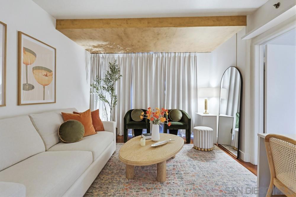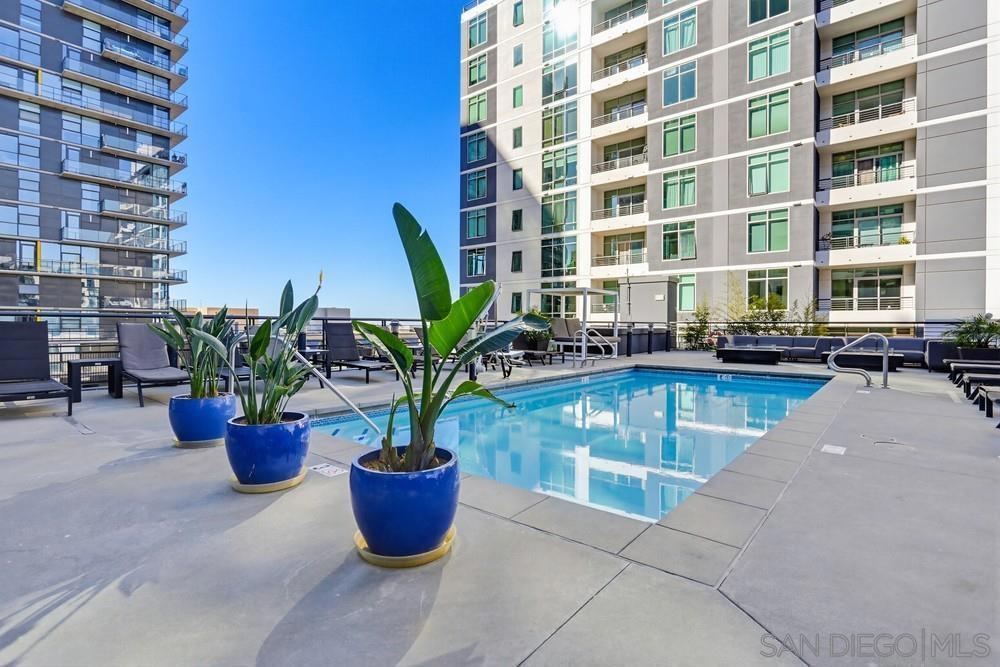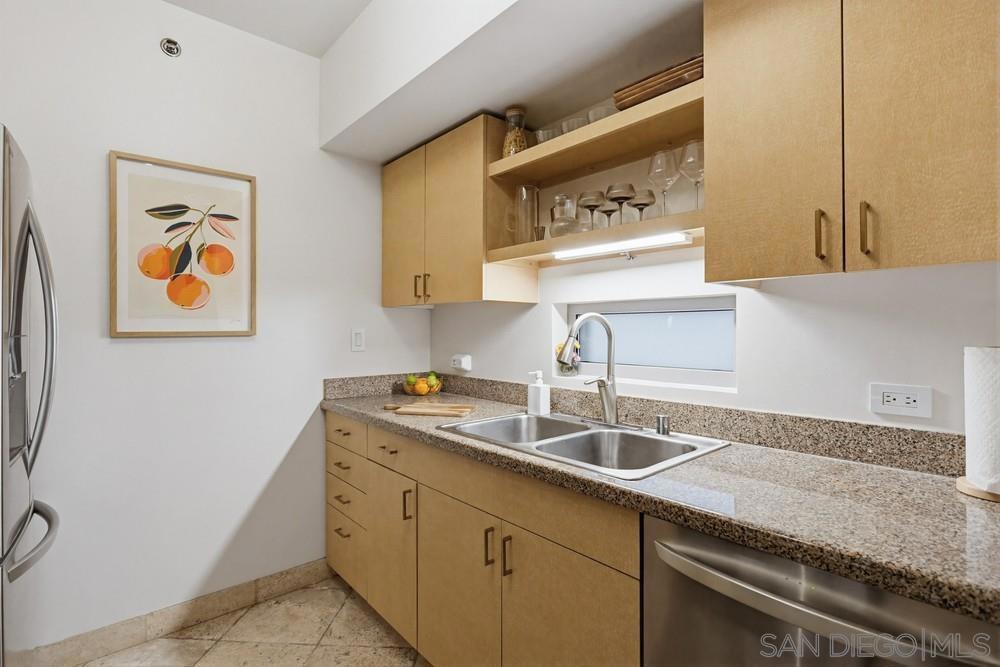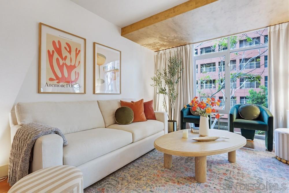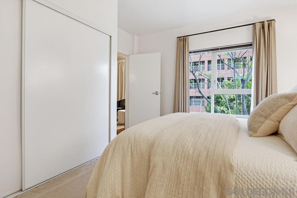 Sophisticated and serene, this private and quiet 4th-floor residence has been thoughtfully upgraded and features all-new LG appliances (Sept. 2024), including an induction range, refrigerator with ice maker and filtered water, microwave, quiet dishwasher, and in-unit washer and dryer—all included. Additional updates include a new garbage disposal (2026), hardwood flooring in the main living areas, travertine bedroom flooring, fresh paint, custom ceiling details, built-in shelving, light dimmers, blackout drapes, air conditioning, and a custom Elfa closet system with lighting. The upgraded kitchen showcases modern cabinet hardware, trash pull-out, and contemporary lighting, while the bathroom offers new fixtures, a large modern mirror, shelving, luxury filtered shower head, and dimmer lighting. Acqua Vista delivers resort-style amenities including valet parking, rooftop pool and spa, fitness center, BBQs, fire tables, EV charging, Amazon lockers, bike storage, full-time security, 24-hour concierge, and an on-site HOA manager, with additional parking available. Steps from the Little Italy Farmers Market, top-rated dining, and the waterfront, this home is ideal as a primary residence, second home, or investment opportunity.