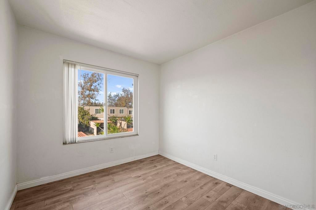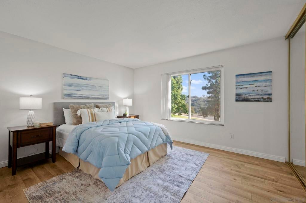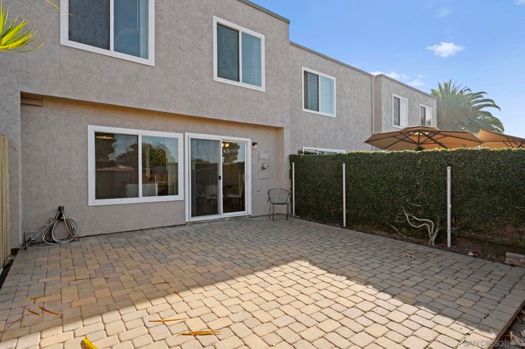 Come see why these townhomes rarely come on the market. Gorgeous location overlooking Tecolote Canyon! This peaceful, secluded, beautifully landscaped, pet friendly complex, is tucked away in a park like setting w/lots of trees, grass, a playground & community pool. Trail access just outside your door! South facing, light and bright with laminate flooring, in unit laundry! Newer cabinet doors, granite counters. Dual pane windows and slider! Lots of storage & closet space, Extra large enclosed patio with beautiful pavers! Assigned parking w/carport & plenty of guest parking. Centrally located w/easy access to freeways, just minutes to the beach, bay, & downtown and just across the canyon from USD!