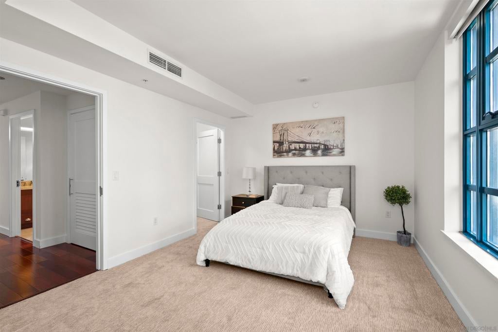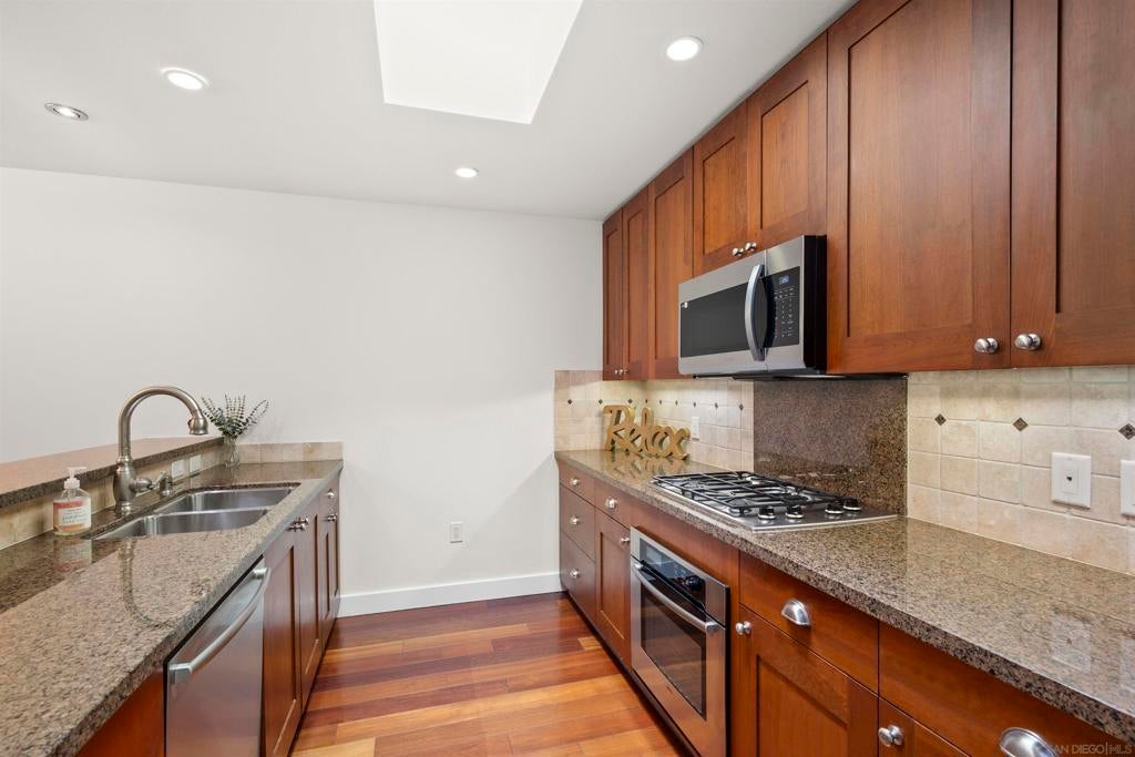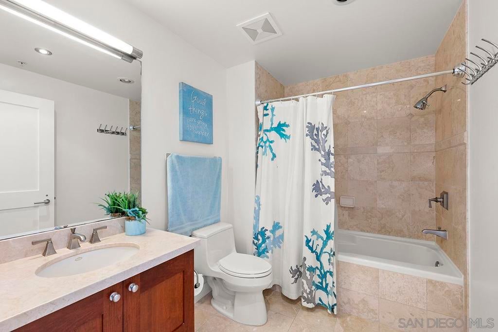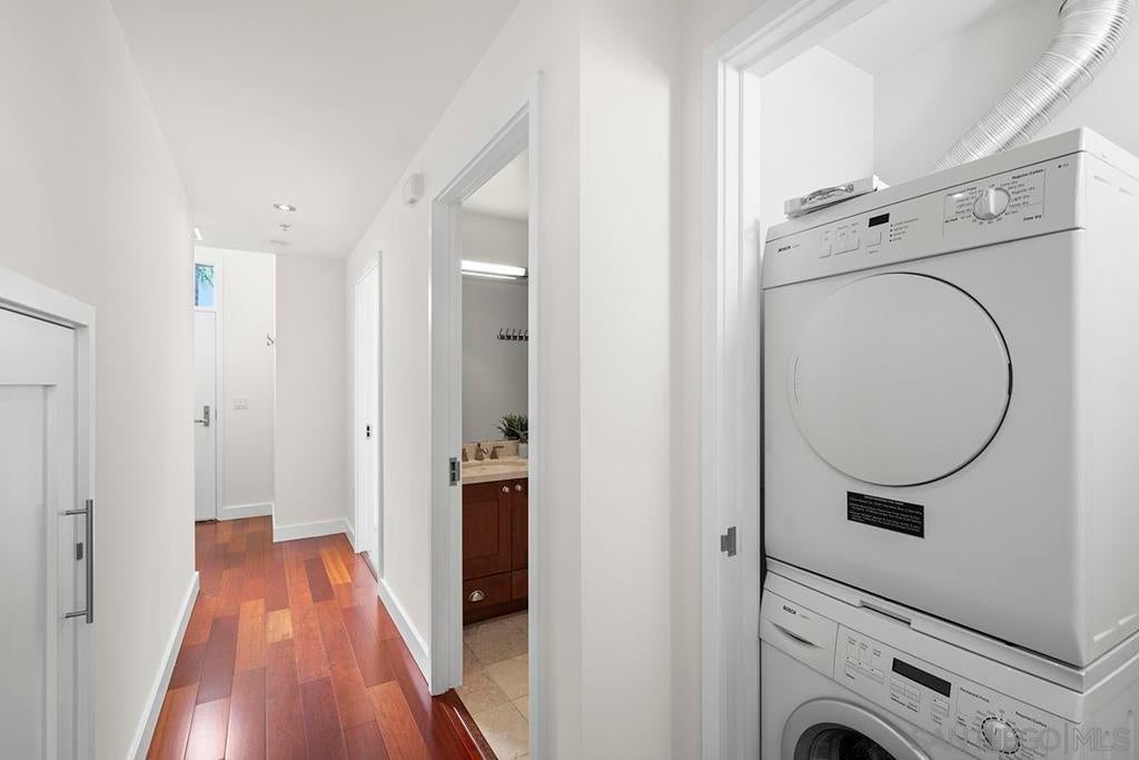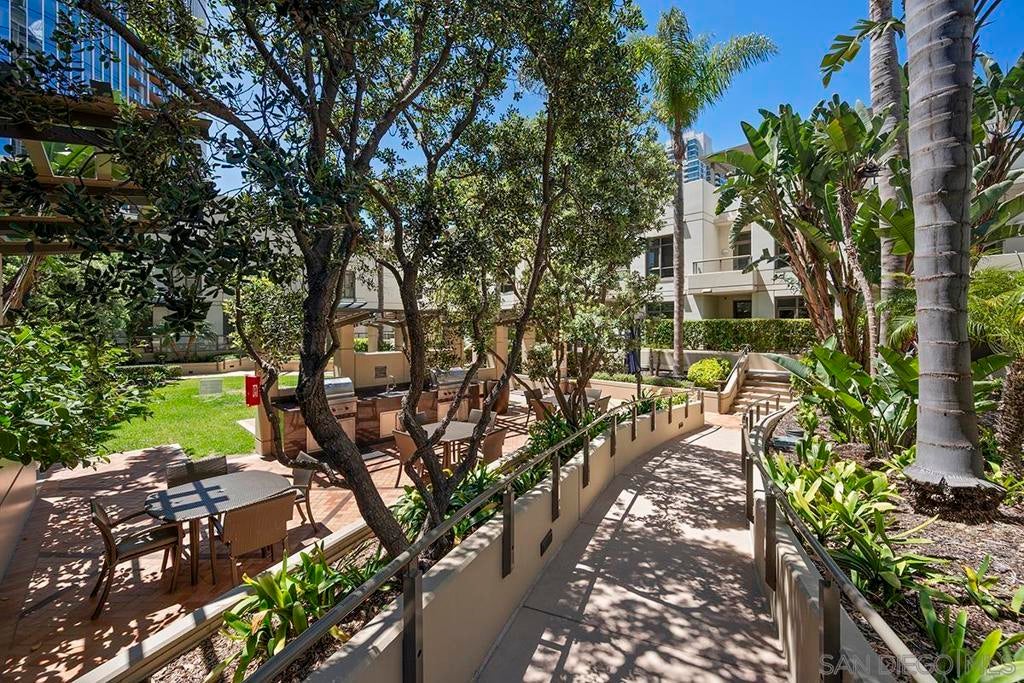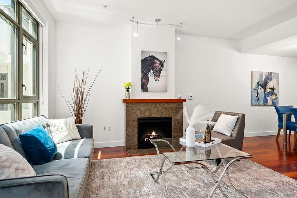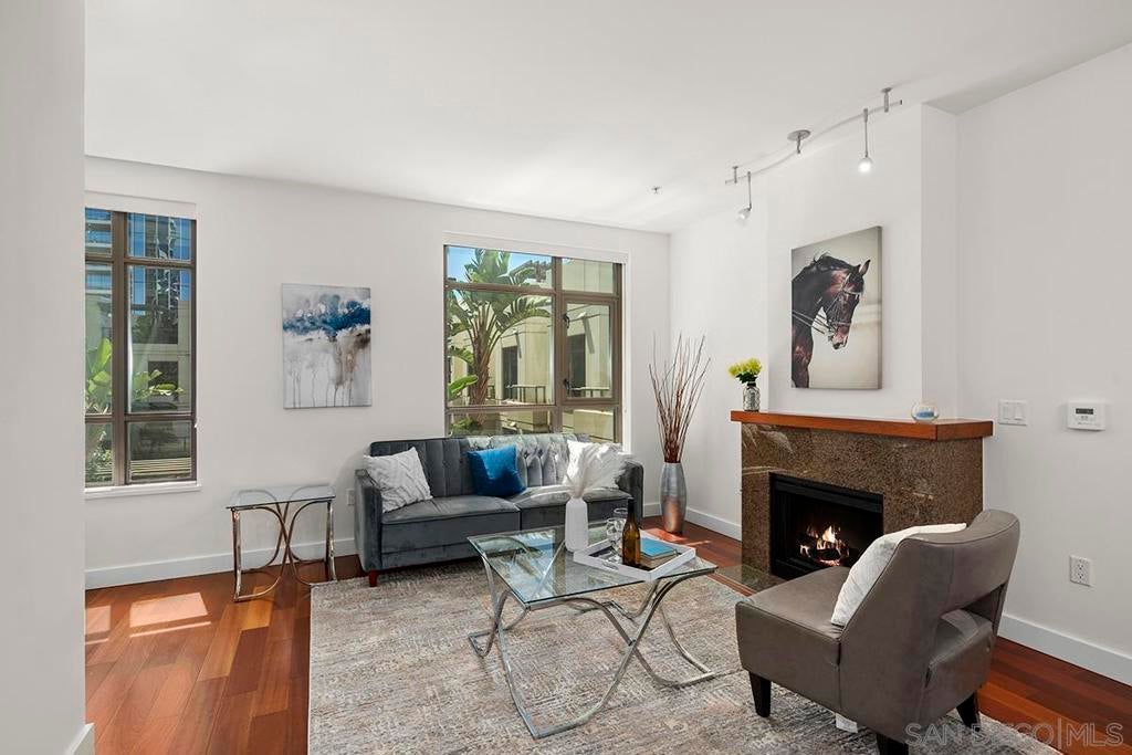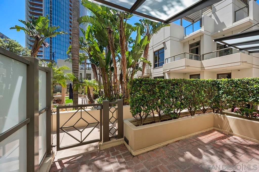 Experience exceptional value at Electra in this incredibly rare 5th-floor townhouse in one of Downtown San Diego’s most iconic residential towers. Enjoy approximately 600 sq.ft. of private outdoor space, including a 500 sq.ft. rooftop terrace and a charming 100 sq.ft. front patio. The open living area showcases city views, ambient fireplace, and overlooks “Electra Park”. The kitchen is filled with natural light from a skylight and is outfitted with Thermador, Bosch, and Samsung stainless appliances. Luxurious resident amenities include a pool, spa, sauna, steam room, fitness center, the stunning Conservatory, 24-hour front desk, and more. Just steps to Little Italy, the Gaslamp, Union Station for easy trolley, Coaster, and train access, bayfront parks, and world-class dining: upscale urban living at a remarkable price! Offering a fabulous location in the coveted Columbia District, you will love being only a short walk to Waterfront Park, Seaport Village, The Headquarters, and the brand-new Rady’s Shell at Jacobs Park, a unique live music venue and home of the San Diego Symphony! Also enjoy proximity to the future life science and biotechnology research development The Research and Development District (The RaDD) at the Embarcadero and the sustainable tech-focused Horton Plaza Redevelopment in the center of the city. Electra has the unique distinction of being built around the historical 1928 SDG&E Station B. Residents can take advantage of an array of services including a concierge, top notch security, and guest parking spaces available by reservation through a simple mobile app. Luxuriate in a steam room, resort-style pool and spa, fitness center, and Electra Park on the 5th floor where you may seek respite from the hustle and bustle surrounded by lush landscaping and a romantic outdoor fireplace and top-of-the-line barbecues.Old MLS listings quoted builder brochure 1295 sq.ft., tax assessor’s record shows 1097 sq.ft.