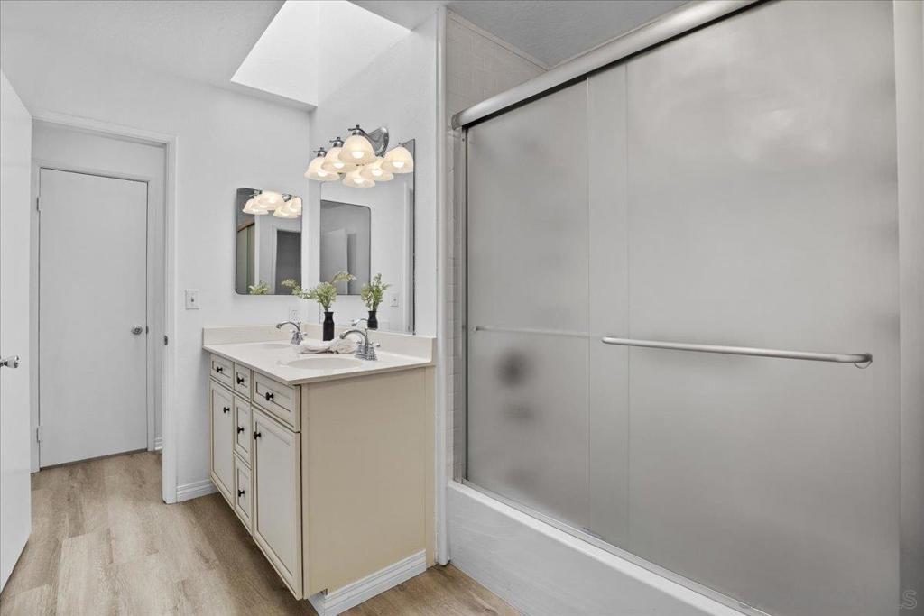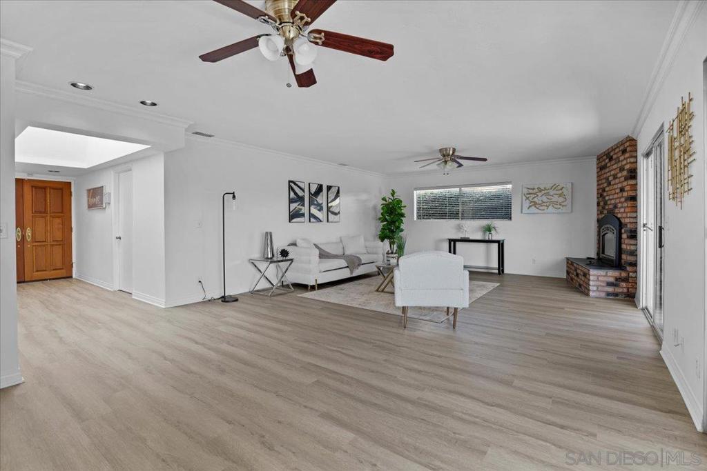 Set on a sought after Fletcher Hills hillside, this welcoming single-story home offers beautiful views, privacy, and room to truly enjoy the outdoors. Tucked at the end of a quiet cul-de-sac on nearly half an acre, the property is framed by a mature shade tree, lush lawn, and charming brick front porch. Inside, new luxury vinyl plank flooring and fresh paint create a bright, cohesive feel throughout. The formal living room features large sliding glass doors that open to the backyard, capturing sweeping views and creating an easy connection between indoor and outdoor living. The lot goes well past the vinyl fence closer to the bottom of the hill! The kitchen flows into a comfortable breakfast nook and family room centered around a classic brick fireplace—perfect for everyday living and hosting guests. Step outside to the covered patio and expansive backyard, offering endless possibilities for entertaining, gardening, play, or simply relaxing while enjoying the open views. The spacious primary suite includes two closets and a remodeled ensuite bath, while wood shutters, new carpeting, and a newer HVAC system with central A/C add comfort and peace of mind. With nearby schools, dining, shopping, hiking trails, and convenient freeway access, this home delivers space, views, and lifestyle—an ideal place to settle in, gather, and make lasting memories.