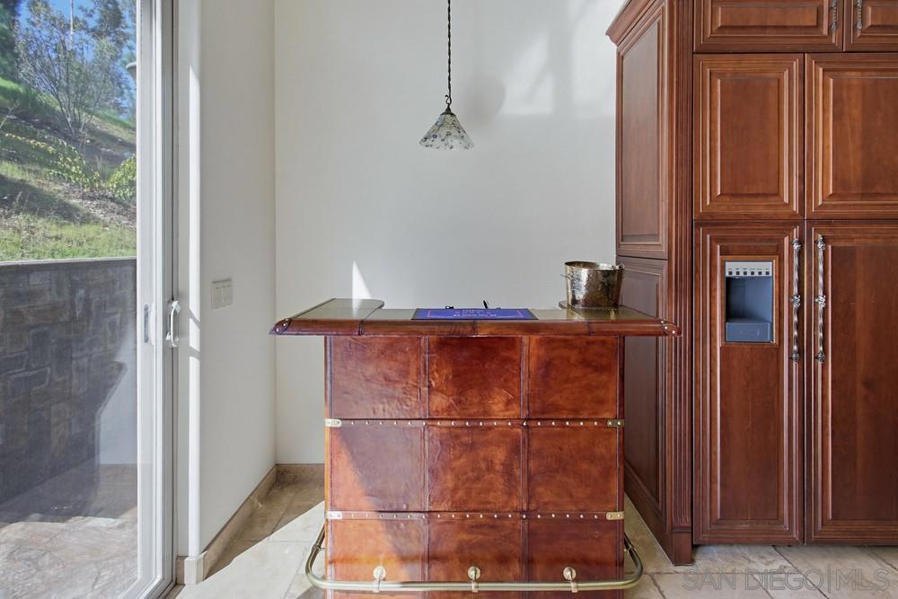 A Rare Timeless Mediterranean Estate. An Italian-inspired masterpiece in Poway. Welcome to a rare and custom Mediterranean estate, custom-built from the ground up with artisan materials and finishes sourced directly from Italy. Set on over an acre of pristine land with no HOA and no Mello-Roos, this five-bedroom, four-and-a-half-bath residence is located within the prestigious Poway Unified School District and offers an unparalleled balance of elegance, privacy, and modern comfort. From the moment you arrive, the home reveals a level of craftsmanship seldom found, featuring exquisite Italian marble inlay flooring, grand architectural columns, graceful arches, and curated designer lighting that create an atmosphere of refined luxury and timeless sophistication. At the heart of the home, the magnificent great room showcases soaring vaulted ceilings, exposed beams, skylights, and a dramatic double-sided stone fireplace that seamlessly connects the living and dining spaces. Floor-to-ceiling windows and a private balcony frame sweeping canyon views, filling the home with natural light and serenity. The chef’s kitchen is both stunning and functional, appointed with granite countertops, premium Thermador appliances, an expansive island, wine storage, glass-front display cabinetry, and abundant custom storage. Oversized sliding doors open to elegant outdoor dining and entertaining areas, creating a seamless indoor-outdoor lifestyle. Designed for today’s discerning homeowner, the residence includes a private office and library with custom built-ins, along with multiple flexible workspaces ideal for remote work and virtual meetings. A state-of-the-art three-stage air purification system, whole-home distributed audio, and integrated home theater speakers ensure comfort, wellness, and entertainment throughout. The luxurious primary suite serves as a private sanctuary with a secluded balcony, direct access to the sparkling in-ground pool and spa, and a picture window capturing breathtaking canyon vistas. Each additional bedroom is generously appointed, offering comfort and privacy for family and guests alike. Outdoors, the resort-style grounds provide a tranquil escape ideal for relaxation and entertaining, enhanced by lush landscaping, serene views, and thoughtfully designed gathering spaces. The experience is elevated by a custom imported Italian pizza oven and a fully built-in outdoor kitchen featuring a 42-inch Lynx grill and refrigeration, perfect for alfresco gatherings. Low-maintenance stone-paved gardens surround the home, while the fully irrigated hillside offers a unique opportunity for a private vineyard. This high-performance estate is as efficient as it is elegant, featuring 9KW SunPower solar panels and an oversized 3.5-car garage with a workbench and 220V power for electric vehicles. Its premier location offers the perfect balance of seclusion and convenience, situated within walking distance of Creek Road Ranch horse boarding and close to local dining and neighborhood essentials. This extraordinary estate presents a rare opportunity to own a bespoke Italian-inspired residence in one of Poway’s most desirable settings, where timeless architecture meets contemporary luxury living.