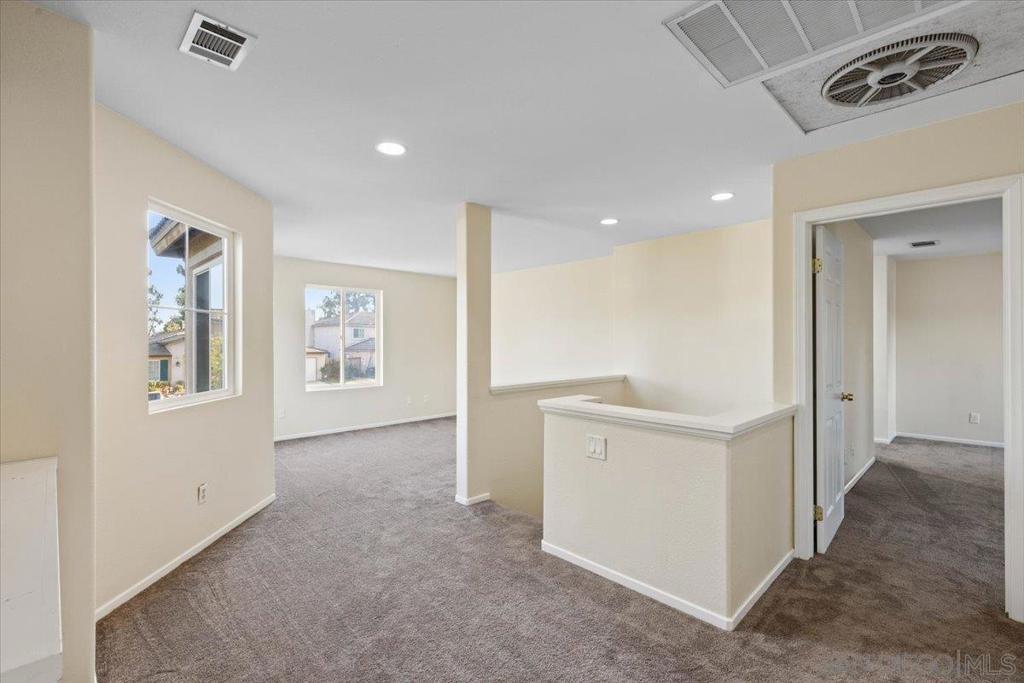 Welcome to this beautifully refreshed corner-lot home in the highly desirable Hallmark Creekside community of Escondido. Situated on an expansive 0.26-acre lot framed by mature palm trees, this 3-bedroom, 2.5-bath residence with a 2-car garage offers space, privacy, and versatility rarely found at this price point. Step inside to a bright, open floor plan featuring new interior paint, brand-new carpet, resurfaced kitchen cabinetry, and upgraded flooring throughout, creating a clean, move-in-ready feel. The home offers both a formal living room and separate family room, along with a dedicated dining area and a cozy kitchen nook—ideal for everyday living and entertaining. The kitchen is functional and inviting with ample cabinetry, a peninsula layout, and great flow into the main living spaces. A whole-house fan adds energy-efficient comfort year-round. Upstairs, a spacious loft provides excellent flexibility and can easily be converted into a fourth bedroom, home office, or bonus room. The private, fully fenced backyard features a covered patio and large deck—perfect for outdoor dining and gatherings—with only one neighboring home, offering added privacy. Centrally located near shopping, schools, parks, and convenient freeway access, this home presents a fantastic opportunity to enjoy comfort now with room to personalize and add value over time. A true must-see in one of Escondido’s most established neighborhoods.