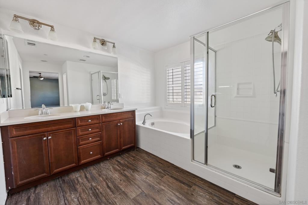Welcome to this spacious and thoughtfully designed 5-bedroom, 4-Bathroom, 3,130 sq ft home in the heart of Menifee—built for comfort, functionality, and room to grow. The open layout creates an airy feel throughout, making it easy for everyone to enjoy their own space while still staying connected. The large kitchen serves as the heart of the home, offering generous counter space and storage, perfect for family meals and gatherings. Downstairs features a full guest bedroom and full bathroom, ideal for visitors, extended family, or a private home office. Upstairs, retreat to the expansive primary suite complete with a walk-in closet and plenty of room to unwind. Three additional upstairs bedrooms provide flexibility for family, guests, or work-from-home needs. One of those has its own private full bathroom. The upstairs laundry room with washer and dryer adds everyday convenience right where you need it. The loft provides additional space to retreat or a media room. Enjoy the benefits of a 3-car garage plus a driveway that fits three additional vehicles, offering ample parking and storage. Solar helps keep energy costs down so you can comfortably enjoy the AC during warm summer months. Located directly across from a neighborhood park, perfect for family outings, playtime, or a nice walk in the park. Best of all—no HOA. This home delivers space, comfort, and flexibility without compromise.