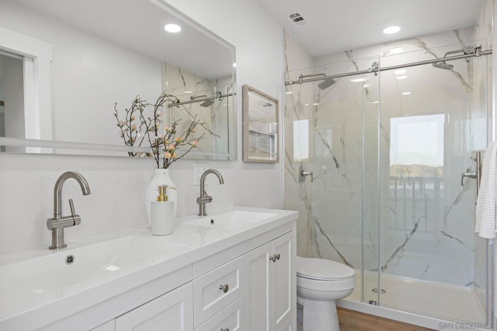 Welcome to this elegantly renovated 3-bedroom, 2.5-bath residence in the heart of Santee, offering picturesque mountain views. This thoughtfully redesigned home features an open, light-filled layout with modern finishes and all new appliances, beautiful quartz kitchen countertops, new luxury vinyl flooring throughout, new contemporary bathrooms, creating a seamless blend of style and functionality. The spacious yard provides exceptional potential for outdoor entertaining, with space for a jacuzzi or custom BBQ area great for entertaining family and friends. Additional highlights include central heating and air conditioning, detached garage, and side-yard access suitable for RV parking. Ideally located near schools, shopping, dining, and with convenient freeway access. A truly turnkey opportunity.