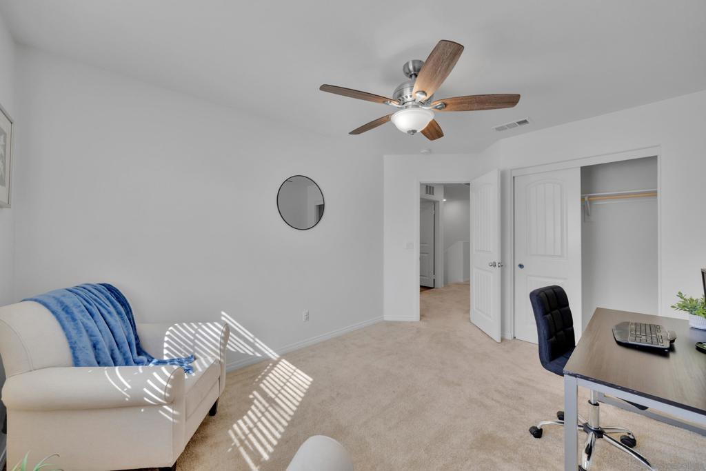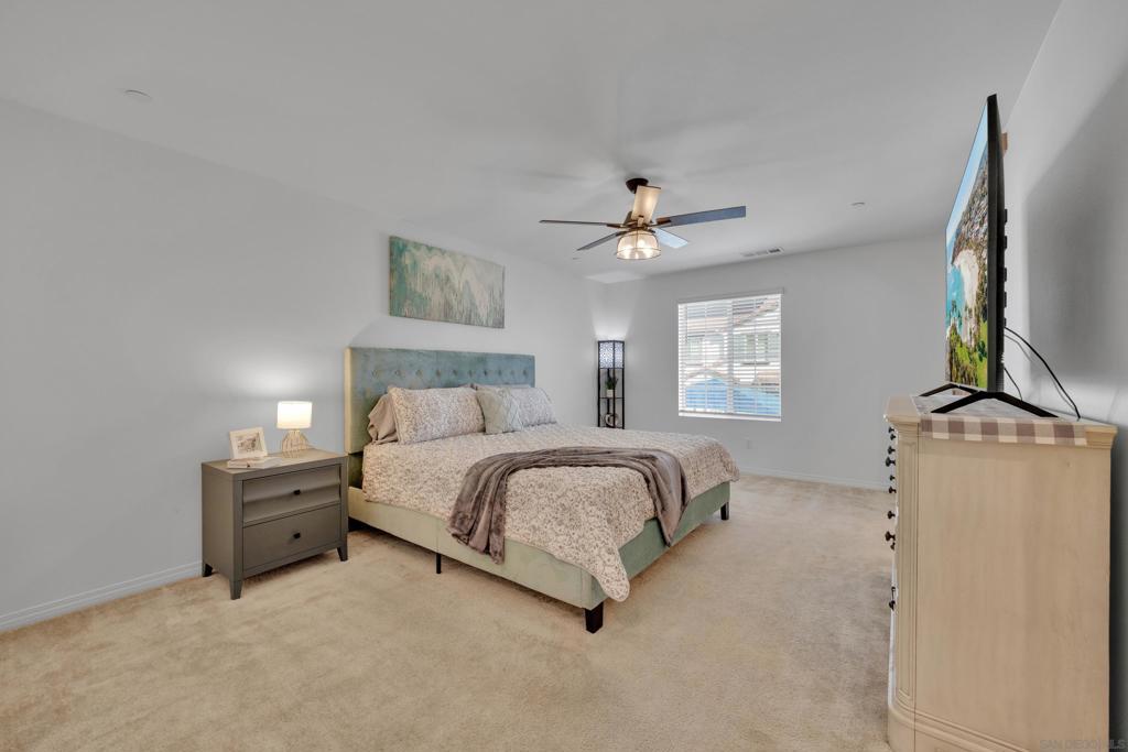 Recent price reduction of $10,000 makes this home one of the best values under $500,000 in Murrieta! This almost new 2022 built Lennar Smart townhome offers nearly 1500 sq. ft of modern living just minutes from convenient shopping and restaurants in 3 directions including quaint downtown Murrieta. With freshly painted interiors, enter from the 2-car connected garage into the open-concept main level which showcases a modern kitchen with rich espresso colored cabinetry, stainless steel appliances, granite countertops, and an extended breakfast bar perfect for bar-stool seating. The kitchen flows seamlessly into the adjacent dining area and living room, all accented by beautiful wood-look laminate flooring. A convenient half bath for guests completes the downstairs. Upstairs, the oversized primary suite features an ensuite bath with dual-sink vanity and an extra-large walk-in closet. Two additional bedrooms, a full bathroom, and a dedicated laundry room complete the upper level. Keep cool with ease utilizing the whole house fan or run your central AC with assistance from solar panels that keep energy bills low. Out front, the private fenced patio opens directly to a charming children’s play area with a gazebo and picnic tables. The beautiful Solara community also offers a refreshing pool, spa, and community BBQ area. The covered picnic table area complete with a rentable kitchen is excellent for hosting pool parties for friends and family year round in beautiful SoCal weather. Perfect for first time home buyers ready to stop renting in San Diego or Orange County and want to build their own equity. Situated in the highly rated Murrieta Valley School District and directly across from Murrieta Valley High School, this home offers small-town charm with unbeatable convenience. With easy access to 15 and 215 freeways, enjoy a walkable lifestyle visiting nearby popular restaurants, cozy coffee shops, a twice-monthly Farmers Market, and the famous annual Murrieta Rod Run.